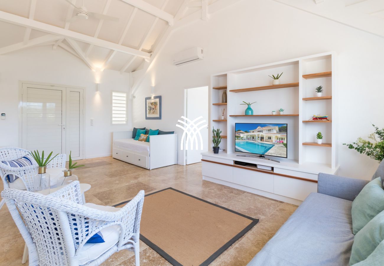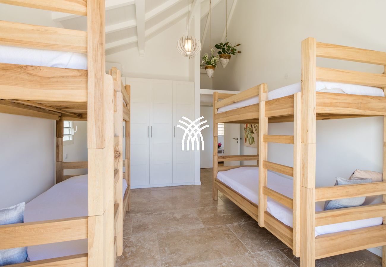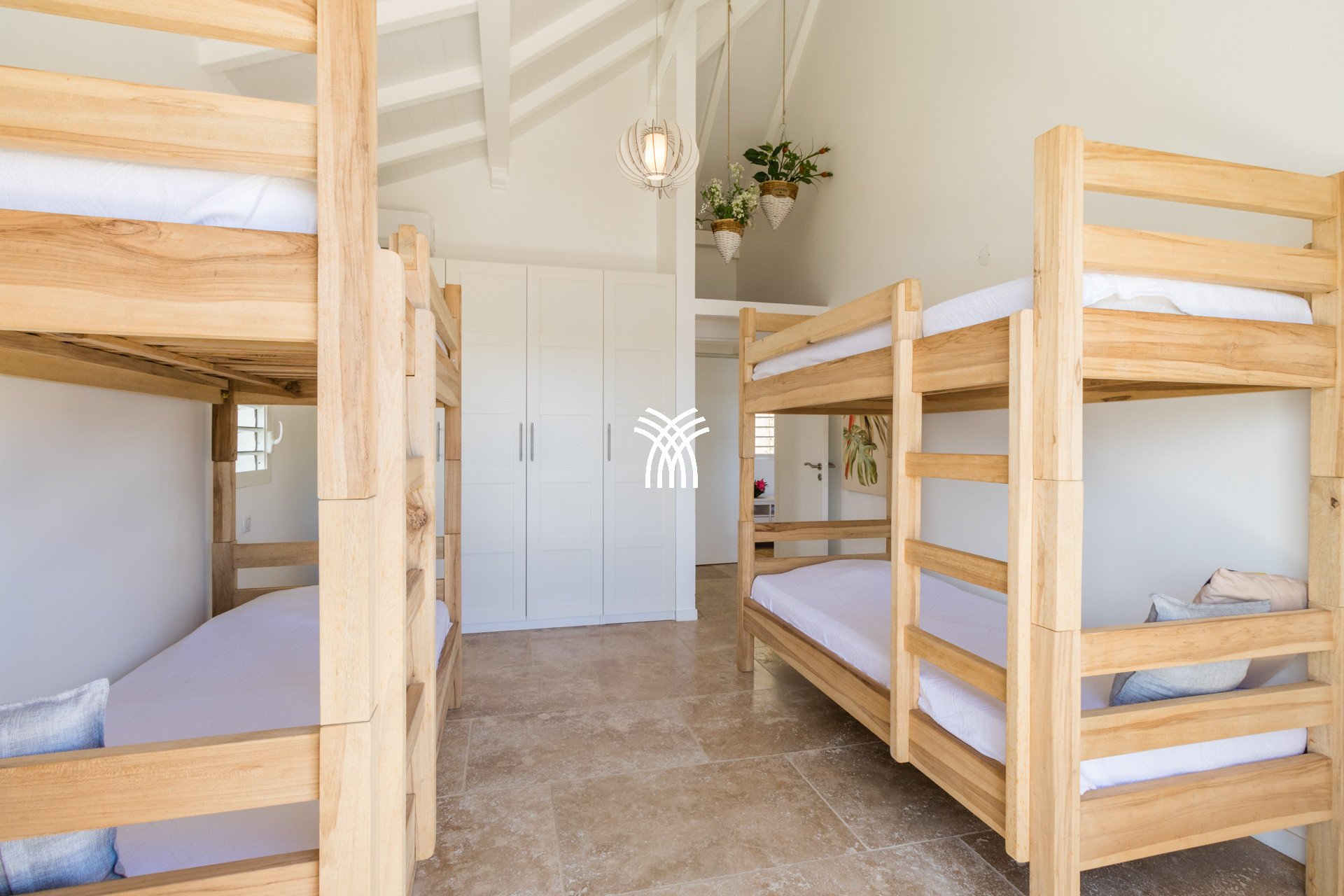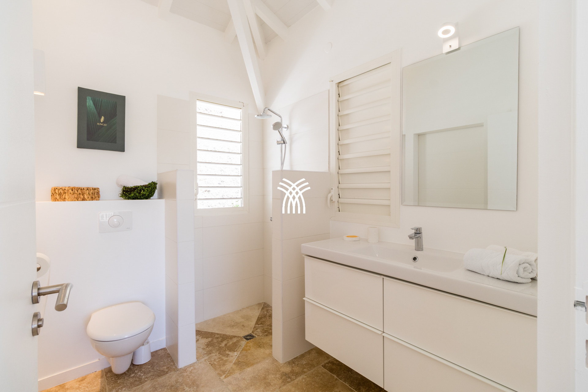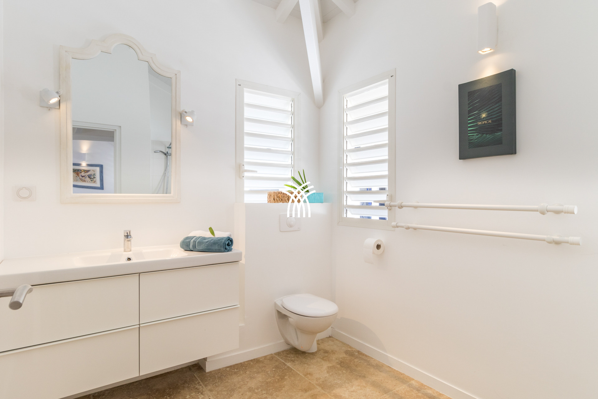 The complete equipment of Villa Alice Bay will satisfy your needs: its design and clean lines, quality materials, a real architect's villa! Built of 2 units, the villa offers a main house (10 guests) with 4 air-conditioned bedrooms, 4 ensuite bathrooms, a cinema room, an air-conditioned office also serving as a bedroom for children / teens (with wifi printer), a storeroom and a large patio. A recently renovated cottage (4 guests) next to the main villa, has 2 bedrooms with their ensuite bathroom, a kitchen, a small living room, a shaded terrace and an outdoor shower.