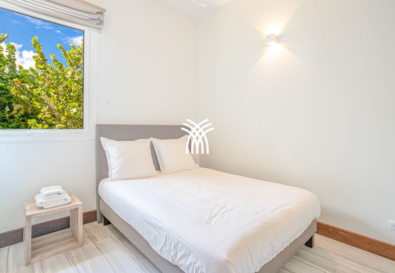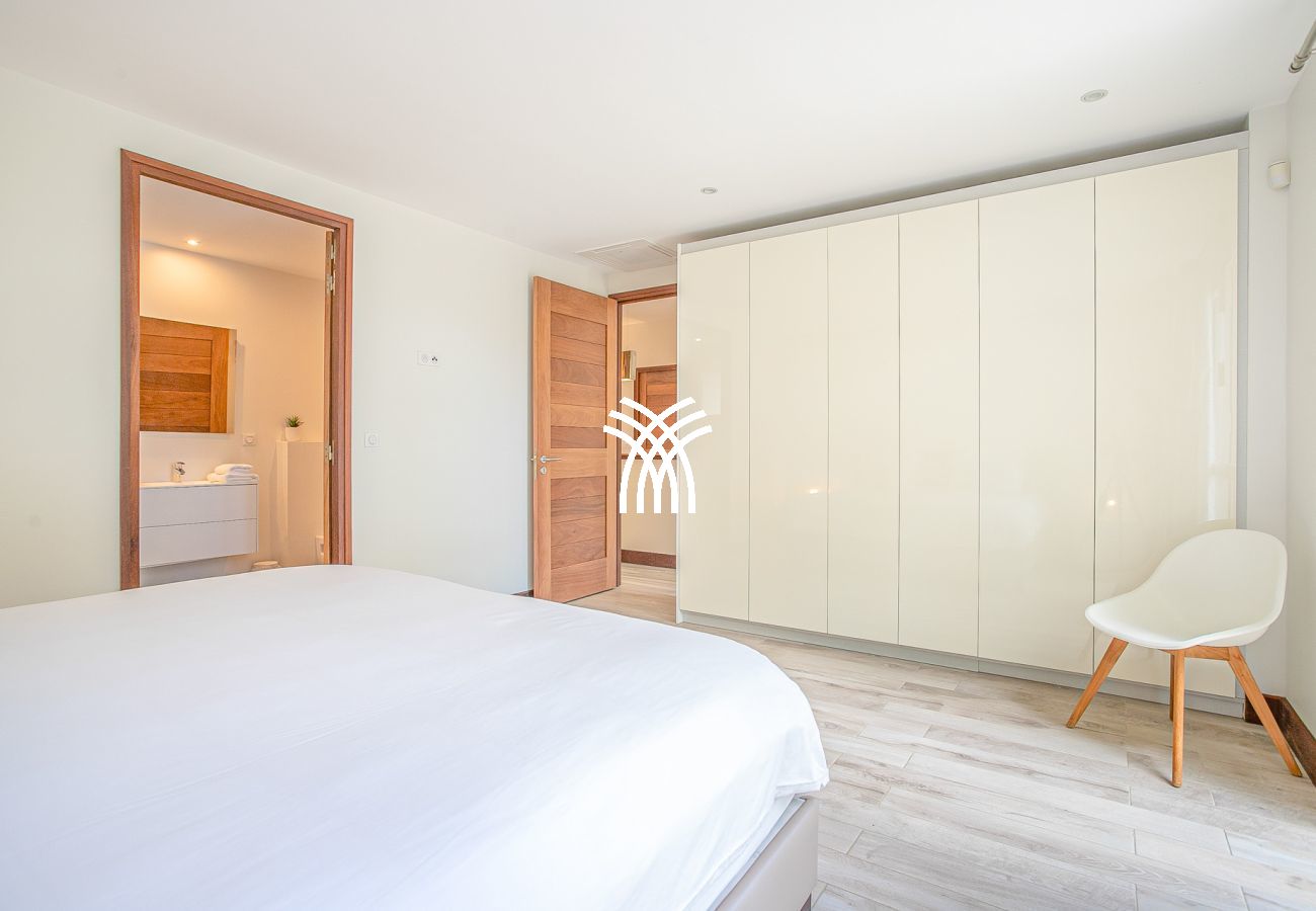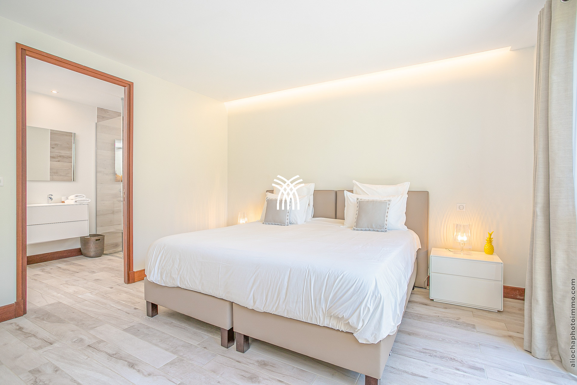 The complete equipment of Villa Alice Bay will satisfy your needs: its design and clean lines, quality materials, a real architect's villa! Built of 2 units, the villa offers a main house (10 guests) with 4 air-conditioned bedrooms, 4 ensuite bathrooms, a cinema room, an air-conditioned office also serving as a bedroom for children / teens (with wifi printer), a storeroom and a large patio. A recently renovated cottage (4 guests) next to the main villa, has 2 bedrooms with their ensuite bathroom, a kitchen, a small living room, a shaded terrace and an outdoor shower.