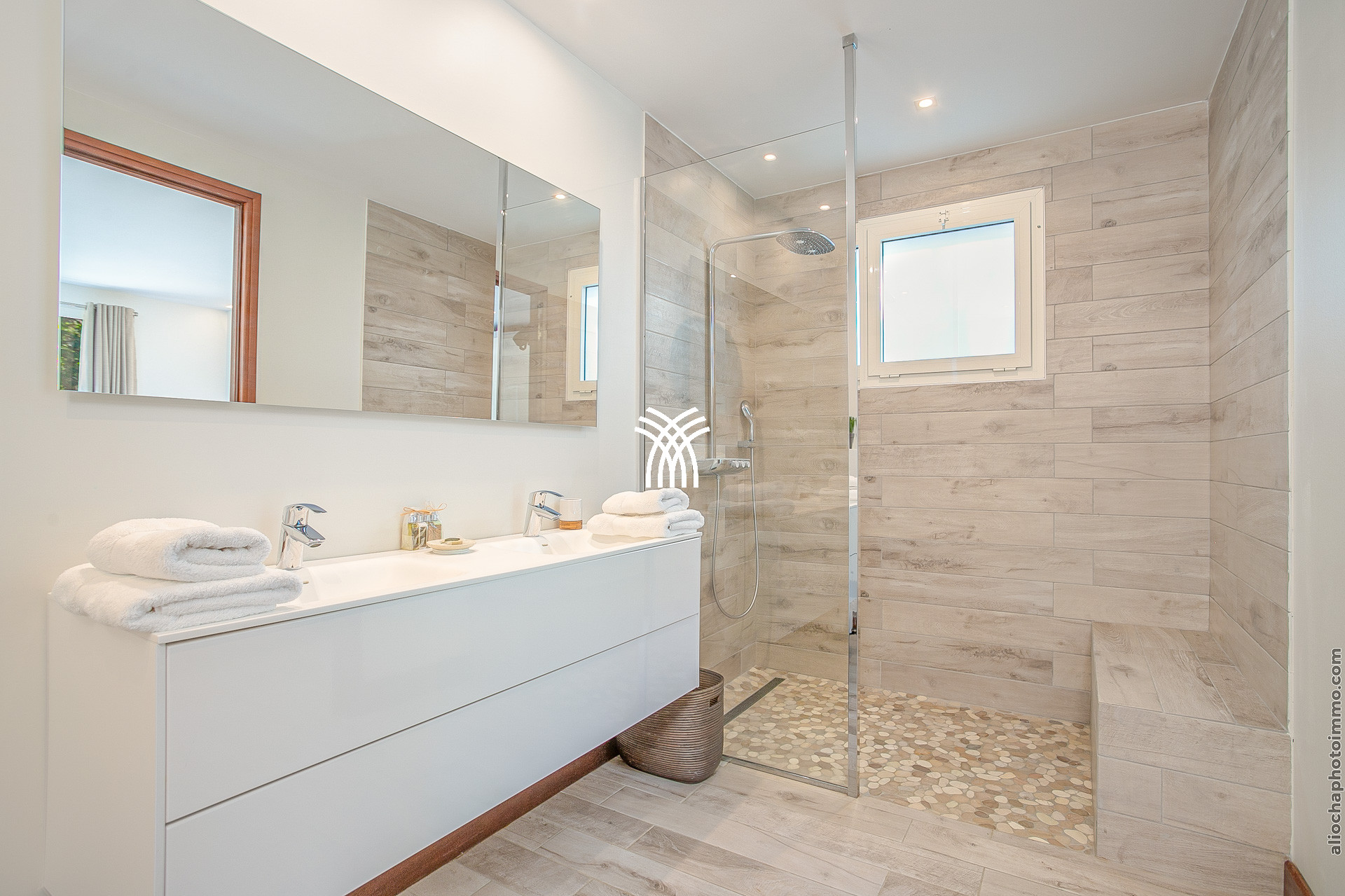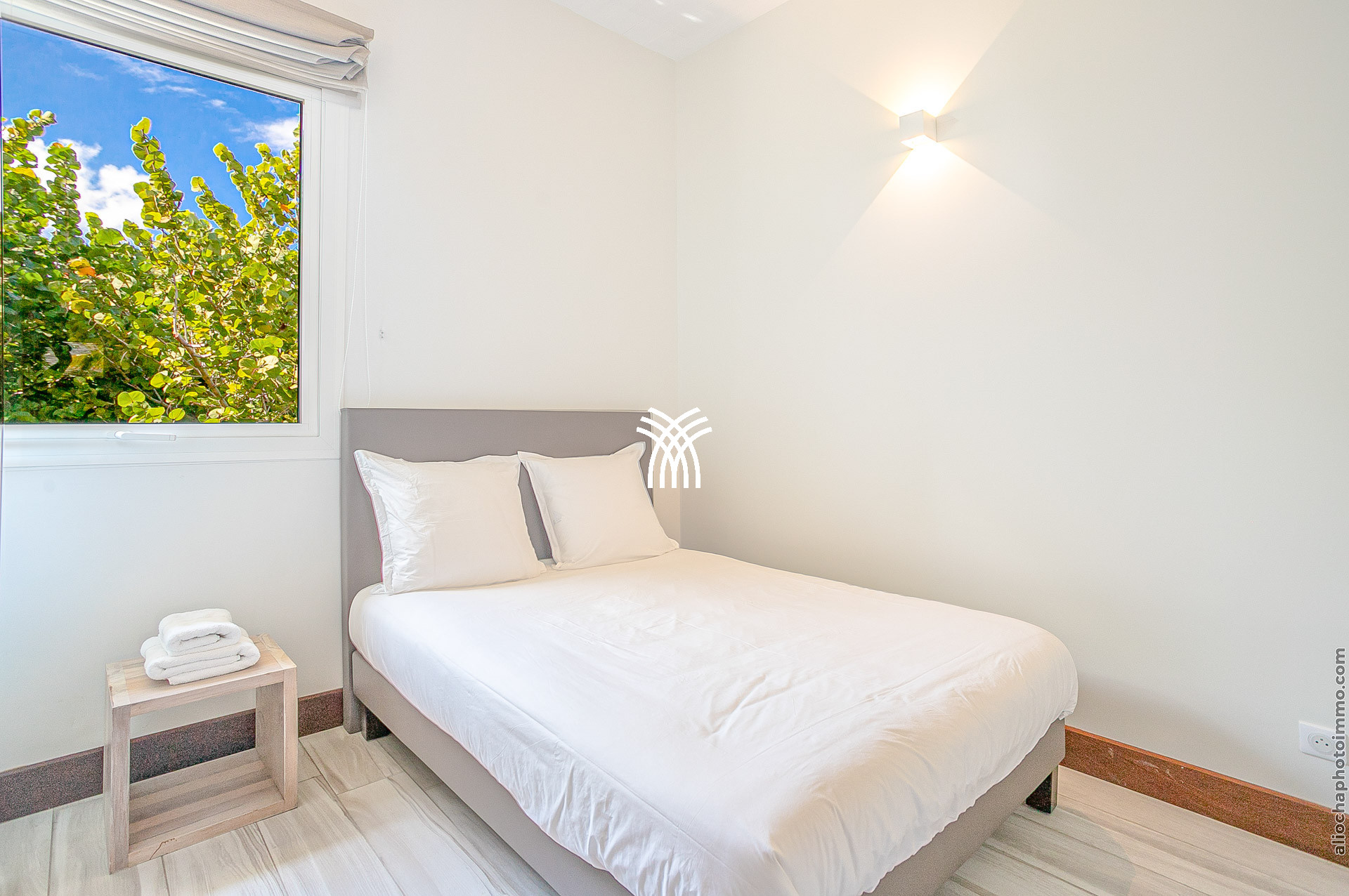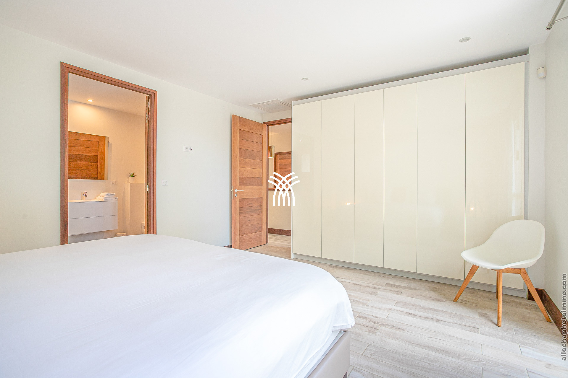 The complete equipment of Villa Alice Bay will satisfy your needs: its design and clean lines, quality materials, a real architect's villa! Built of 2 units, the villa offers a main house (10 guests) with 4 air-conditioned bedrooms, 4 ensuite bathrooms, a cinema room, an air-conditioned office also serving as a bedroom for children / teens (with wifi printer), a storeroom and a large patio. A recently renovated cottage (4 guests) next to the main villa, has 2 bedrooms with their ensuite bathroom, a kitchen, a small living room, a shaded terrace and an outdoor shower.
