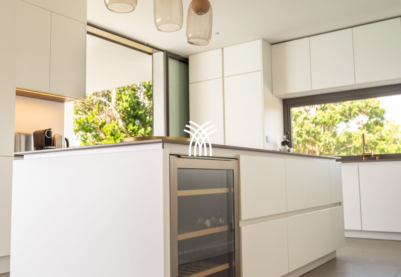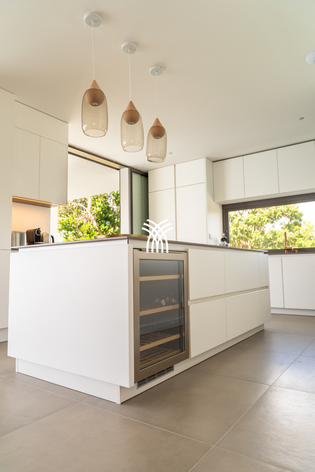 Spacious, the holiday home rental has 4 bedrooms and 3 bathrooms that can comfortably accommodate 8 adults and 2 children. There is a convertible sofa bed in the office. The kitchen is fully equipped and also enjoys a sea view.