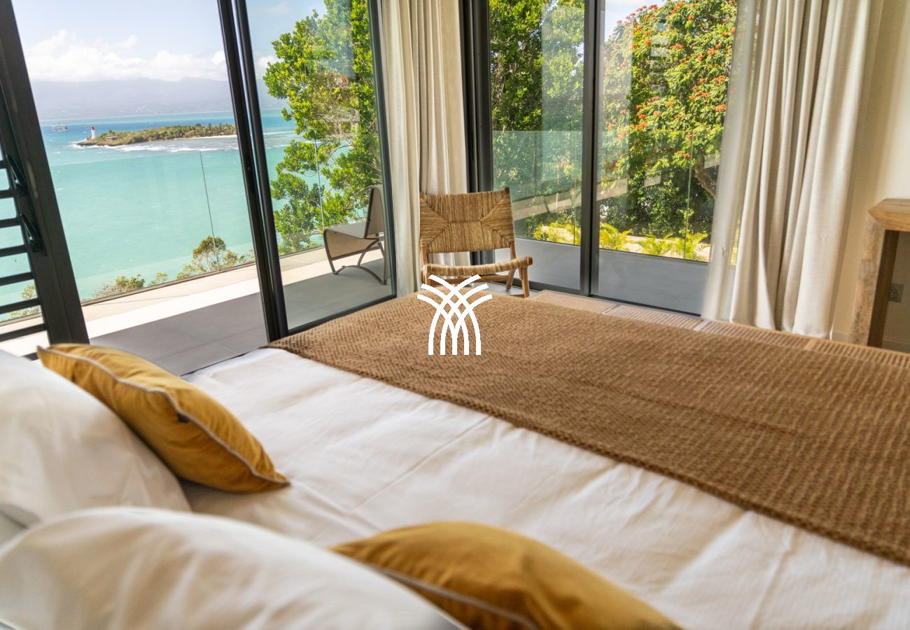 Perched majestically on a cliff, Villa GwaKana is a true architectural gem, offering breathtaking views of the sparkling ocean, the Gosier islet, lush Basse-Terre, and the picturesque islands of Les Saintes. This new and elegant residence, spread over two levels, accommodates up to 10 guests in absolute comfort, with its five air-conditioned double bedrooms, each arranged with exquisite care.