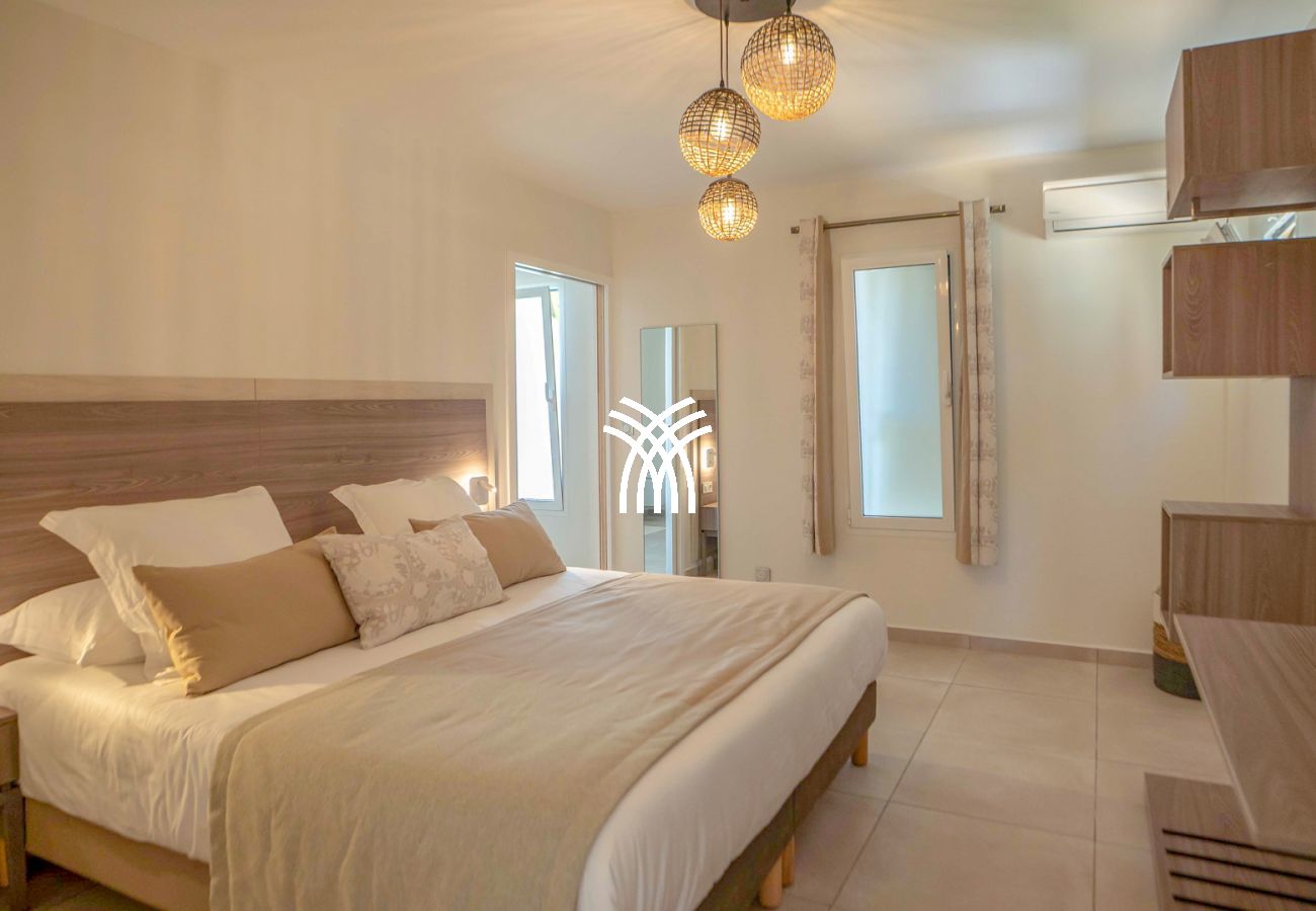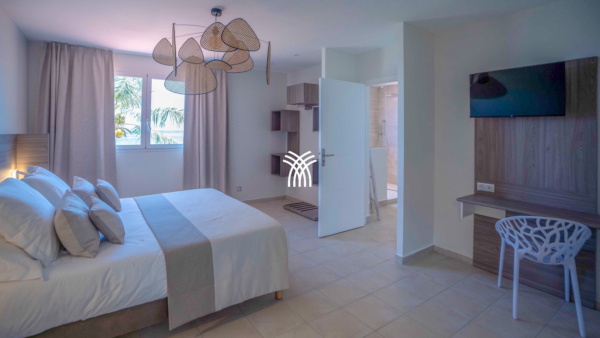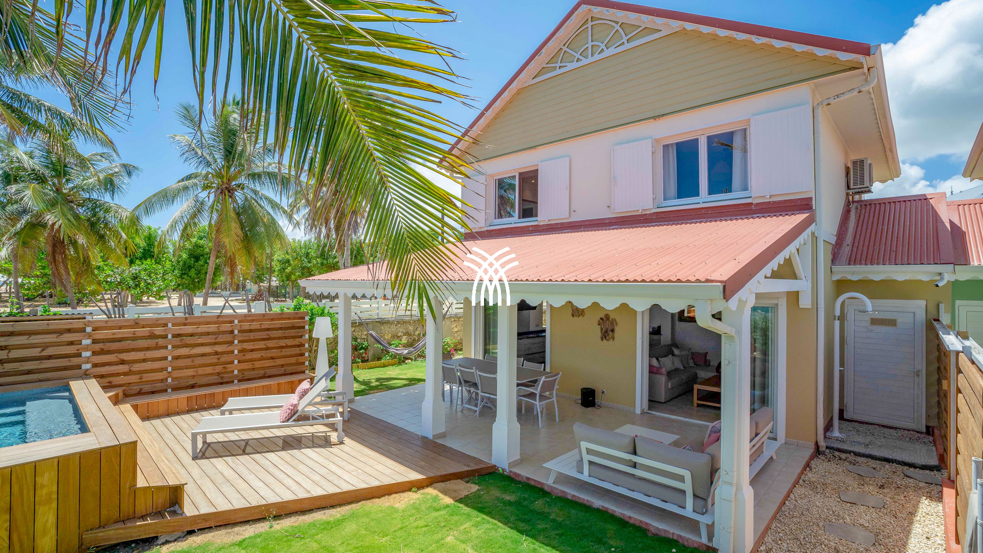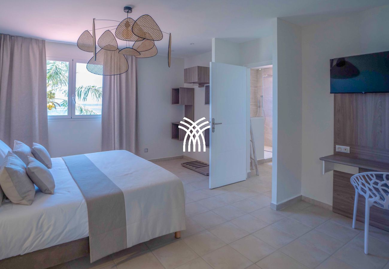 Outside, everything invites relaxation: the pool, secured by an immersed alarm, the gas barbecue for your gourmet evenings, the outdoor shower to refresh after a sea bath, and the sunbeds arranged under the tropical sun. Through a small gate, the beach is just a few steps away — a rare privilege that makes this address an exceptional place for holiday lovers with their feet in the water.