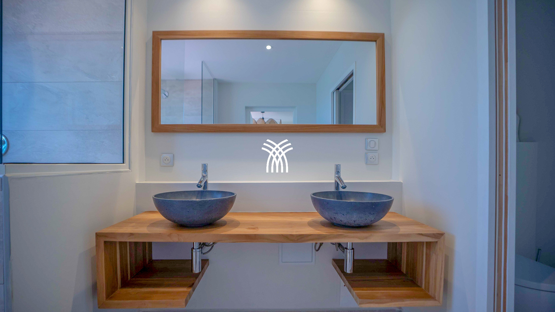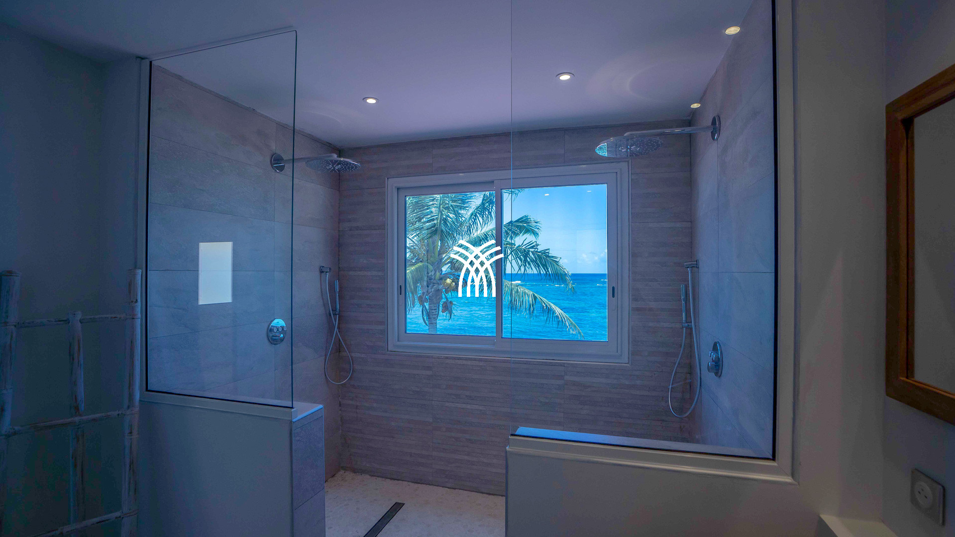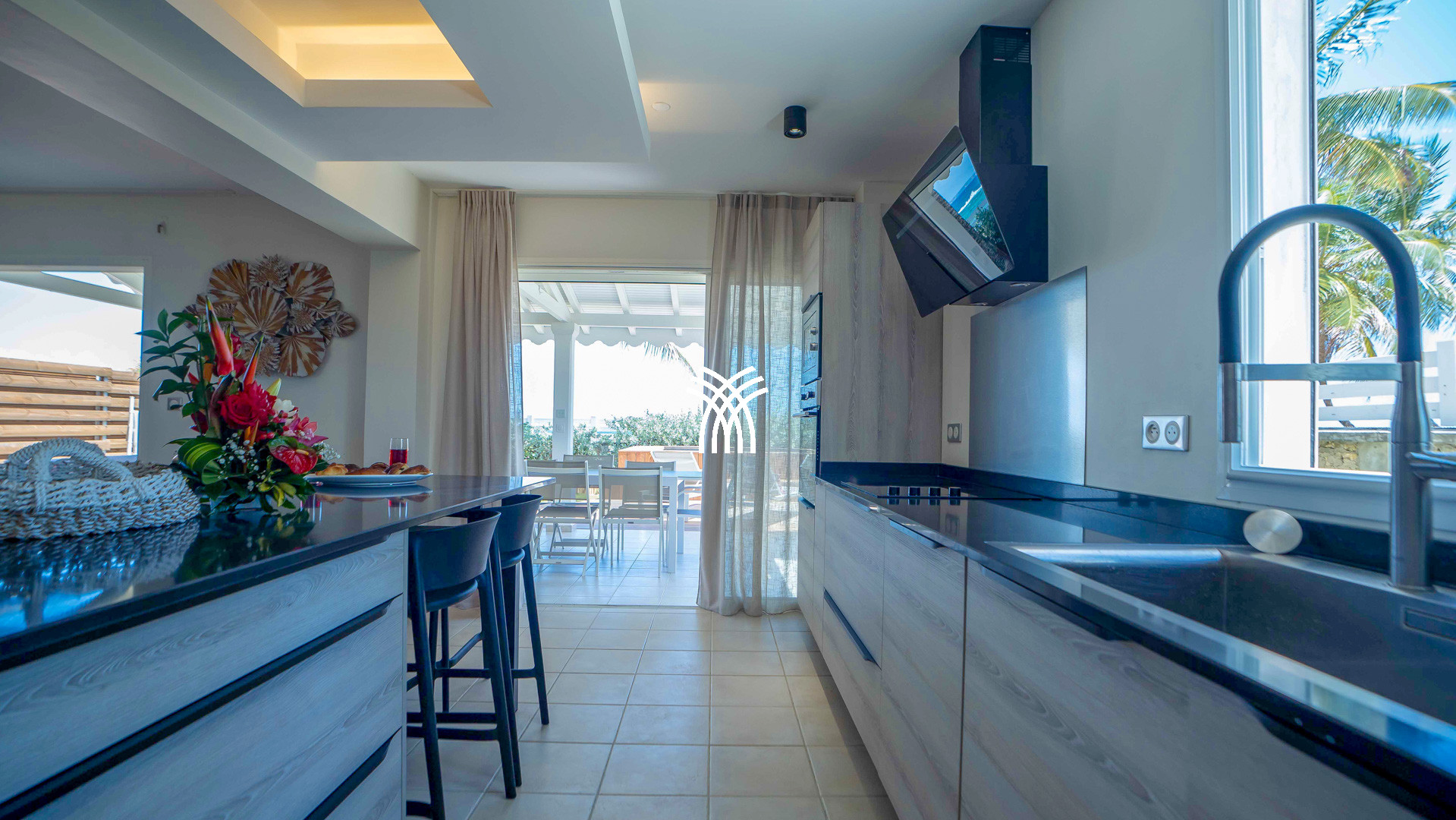 Outside, everything is designed for sensory pleasure: a punch bowl to refresh yourself at any time, an outdoor shower to relax after the beach, a gas barbecue for your Caribbean evenings, and sun loungers arranged under the sun to admire the changing shades of the sky. Every detail has been carefully imagined to make this luxury villa in Guadeloupe a living space that is both elegant and warm.