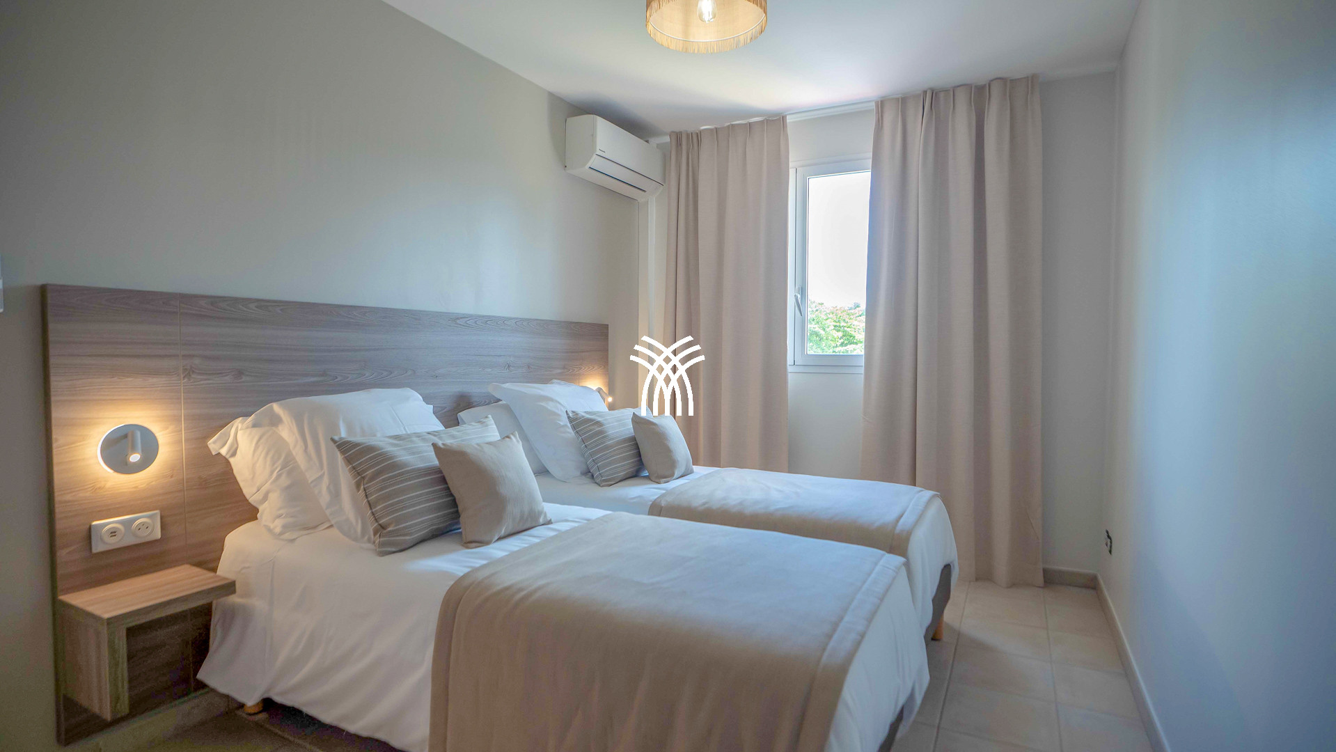 Villa Tanya has four air-conditioned rooms, spread over two levels, decorated with taste and softness. The parental suites, equipped with king-size beds and private bathrooms, offer a soothing atmosphere and sublime views of the sea or the tropical garden. The two other rooms, adaptable to your needs, are perfectly suited for a family with children or a group of friends wishing to share an exceptional stay.