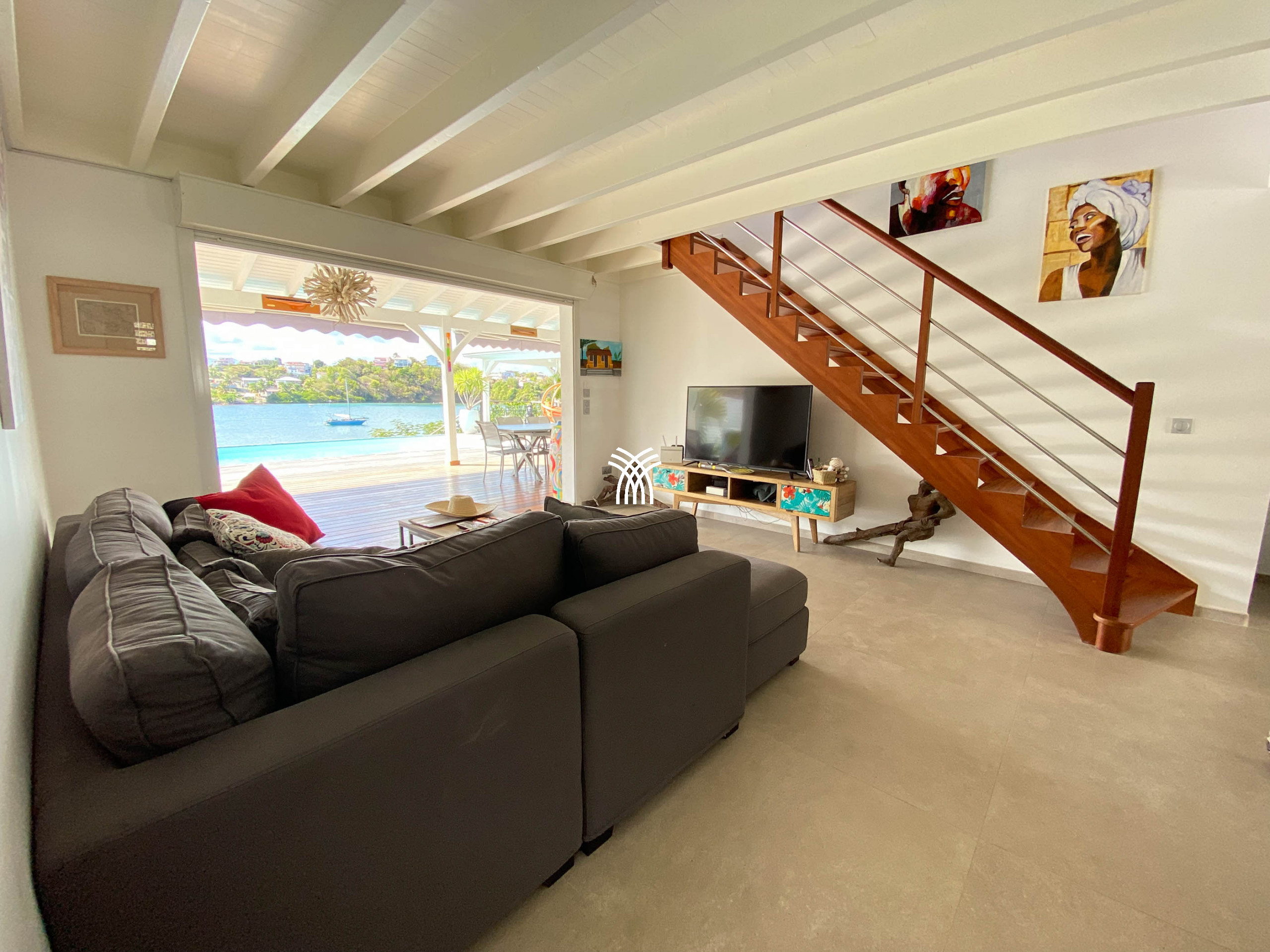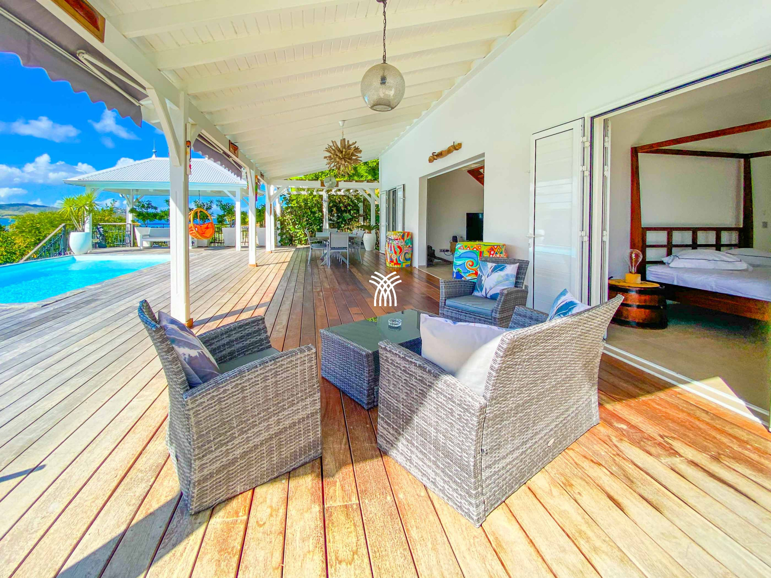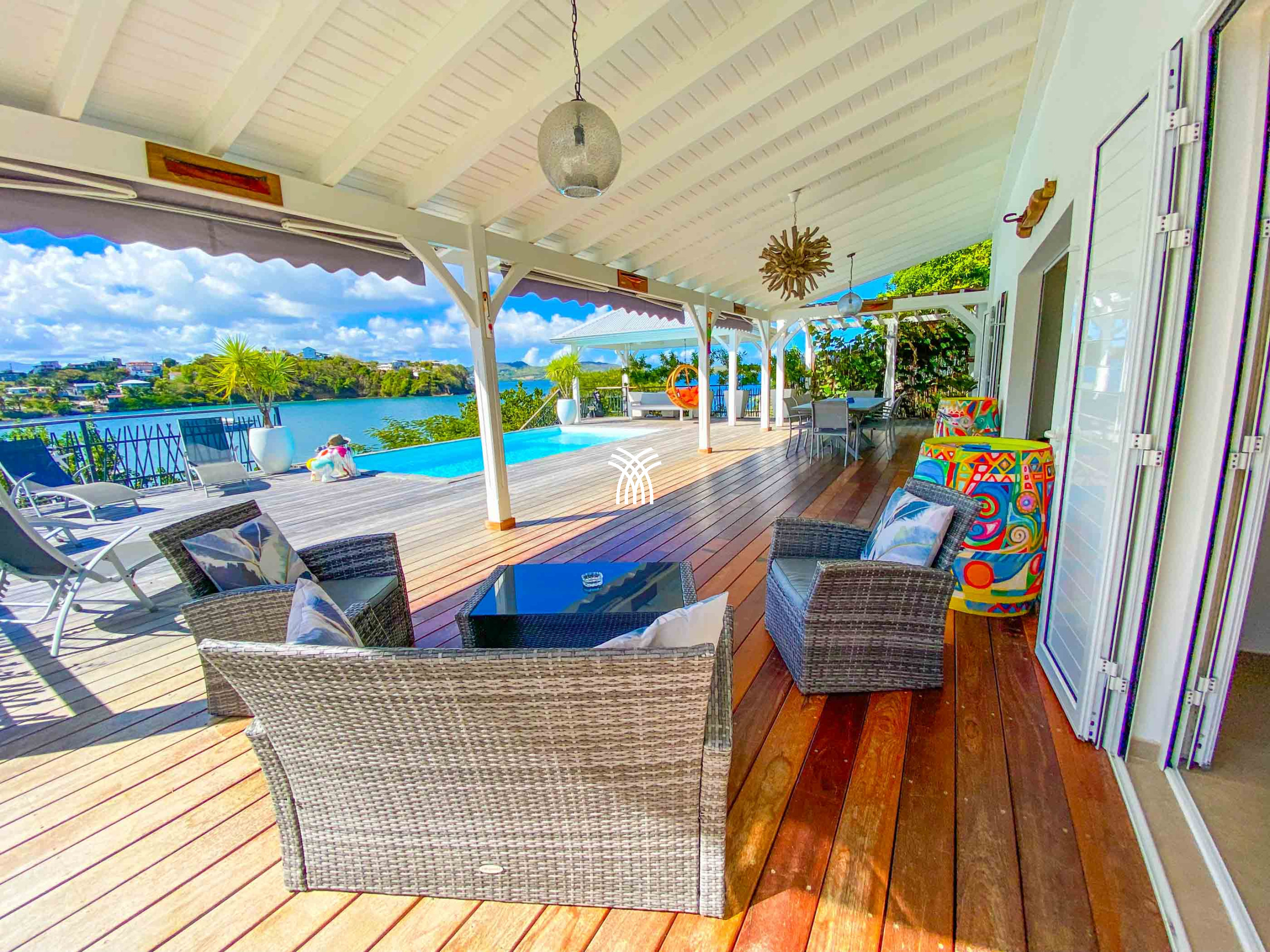 Suspended as if between sky and sea, Villa Oliver invites you to a total immersion in Caribbean nature. Its vast 150 m² landscaped terrace, overlooking the ocean, becomes the heart of the house, a living space in its own right where each moment is savoured facing the horizon. Below, a private pontoon allows direct access to the sea, while three kayaks are made available to explore the islets and navigate through turquoise waters. Naturally ventilated by the trade winds and entirely oriented towards the sea, this luxury villa for rent in Martinique offers a sensation of freedom and absolute serenity.