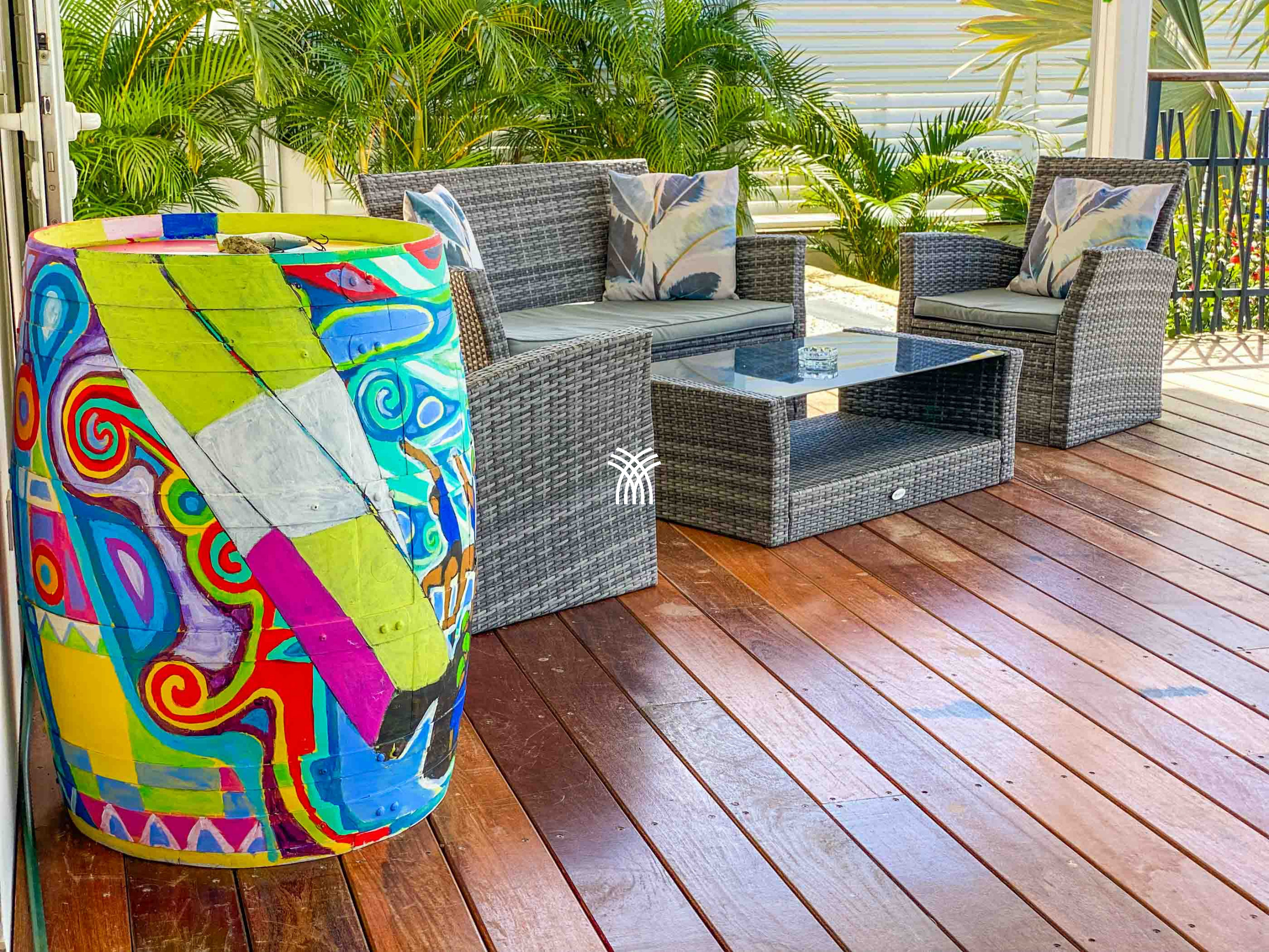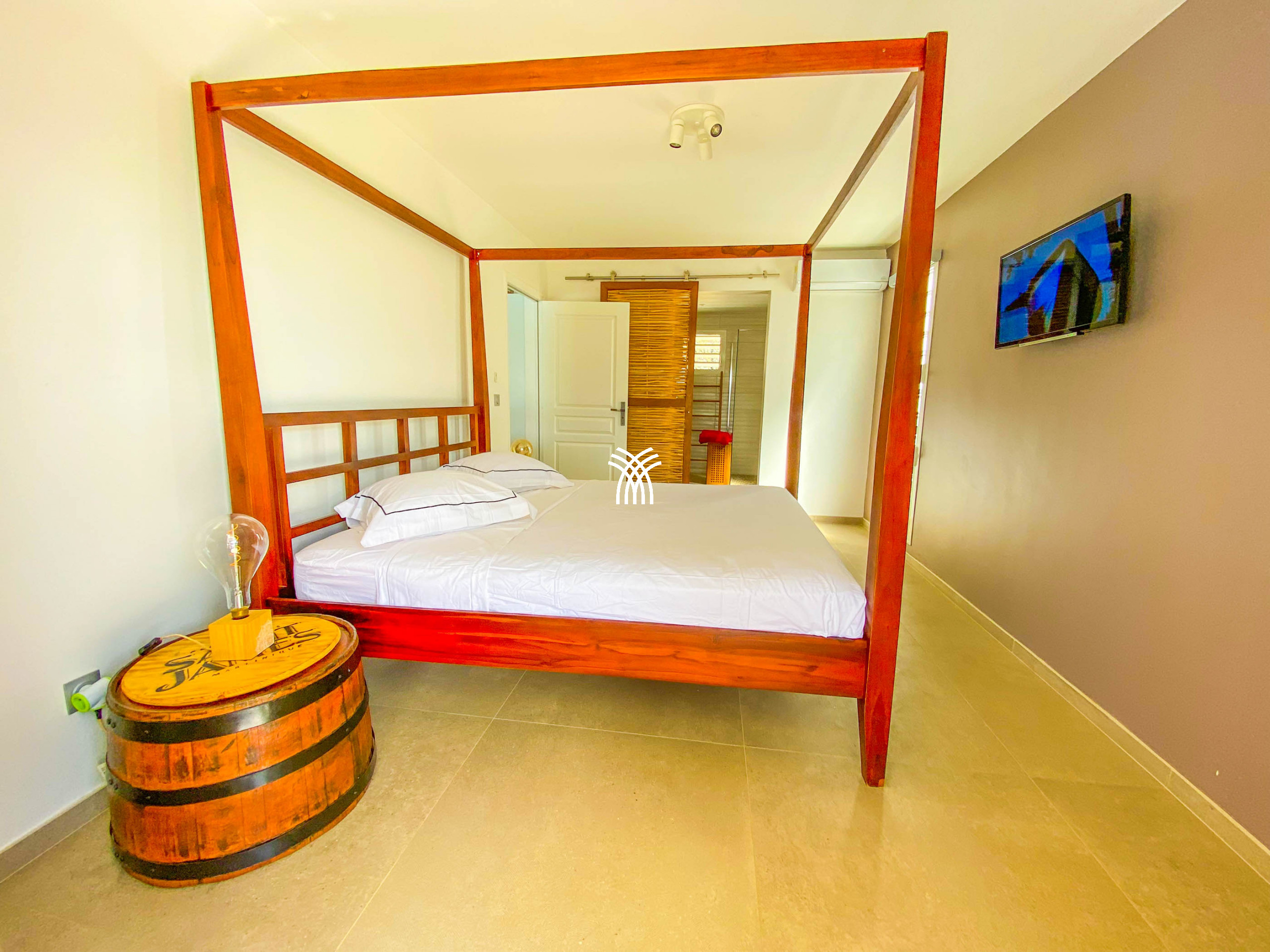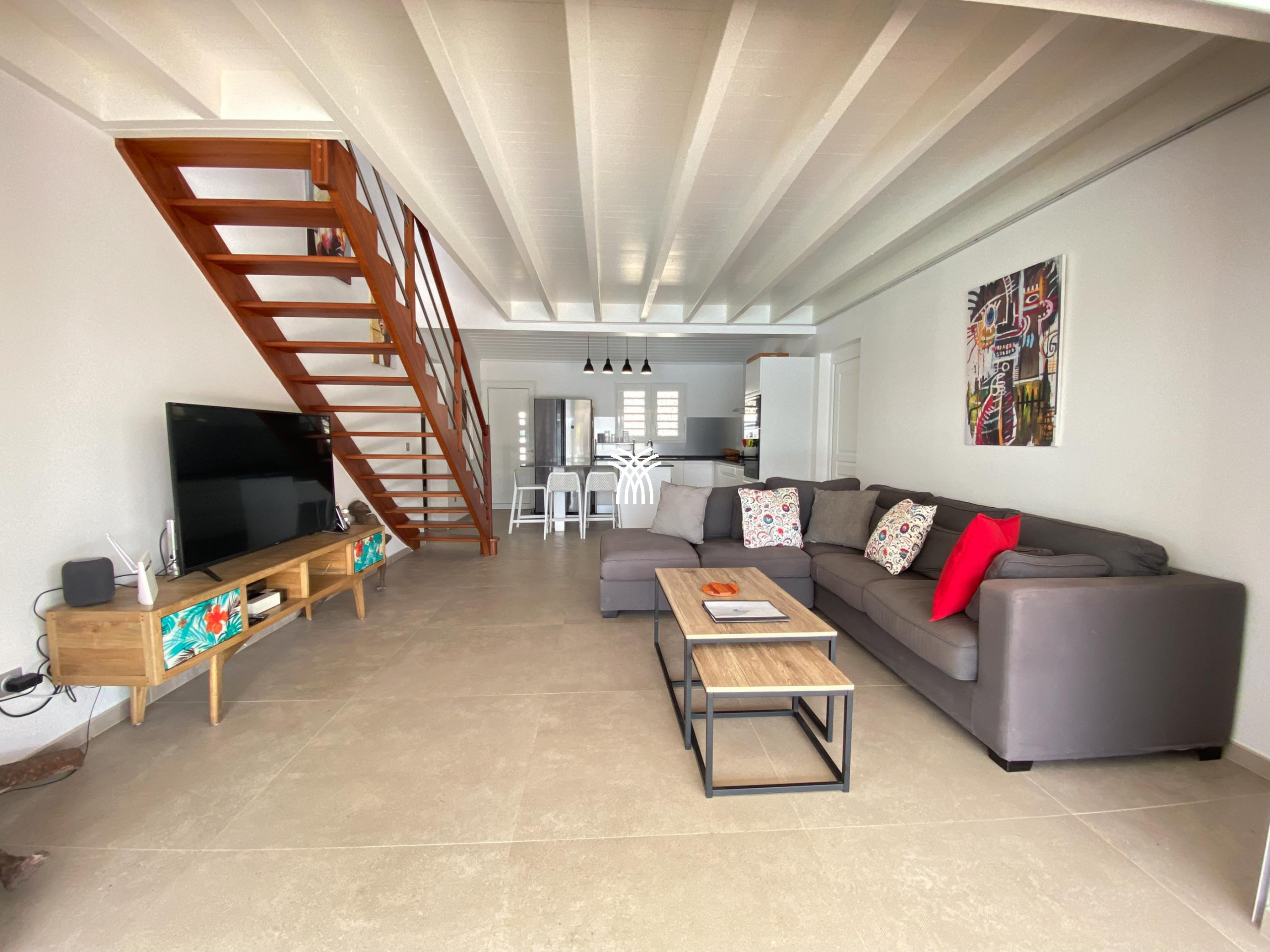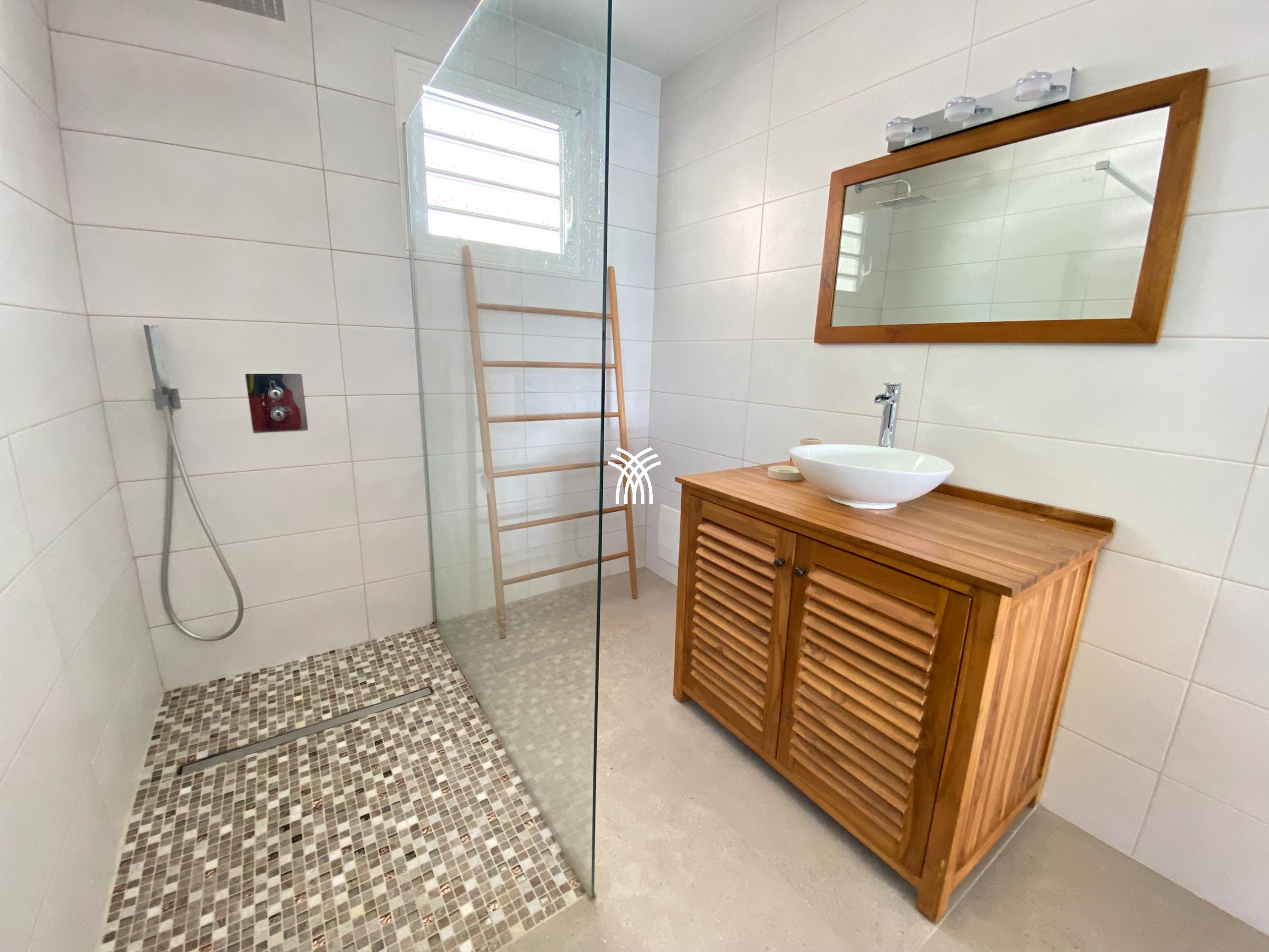 The interiors of the villa have been designed with a contemporary and refined spirit, subtly enriched by works by Caribbean artists. This alliance gives Villa Oliver an elegant and warm atmosphere, where each room dialogues with the exterior through large openings offering a permanent sea view, a true living painting in motion.