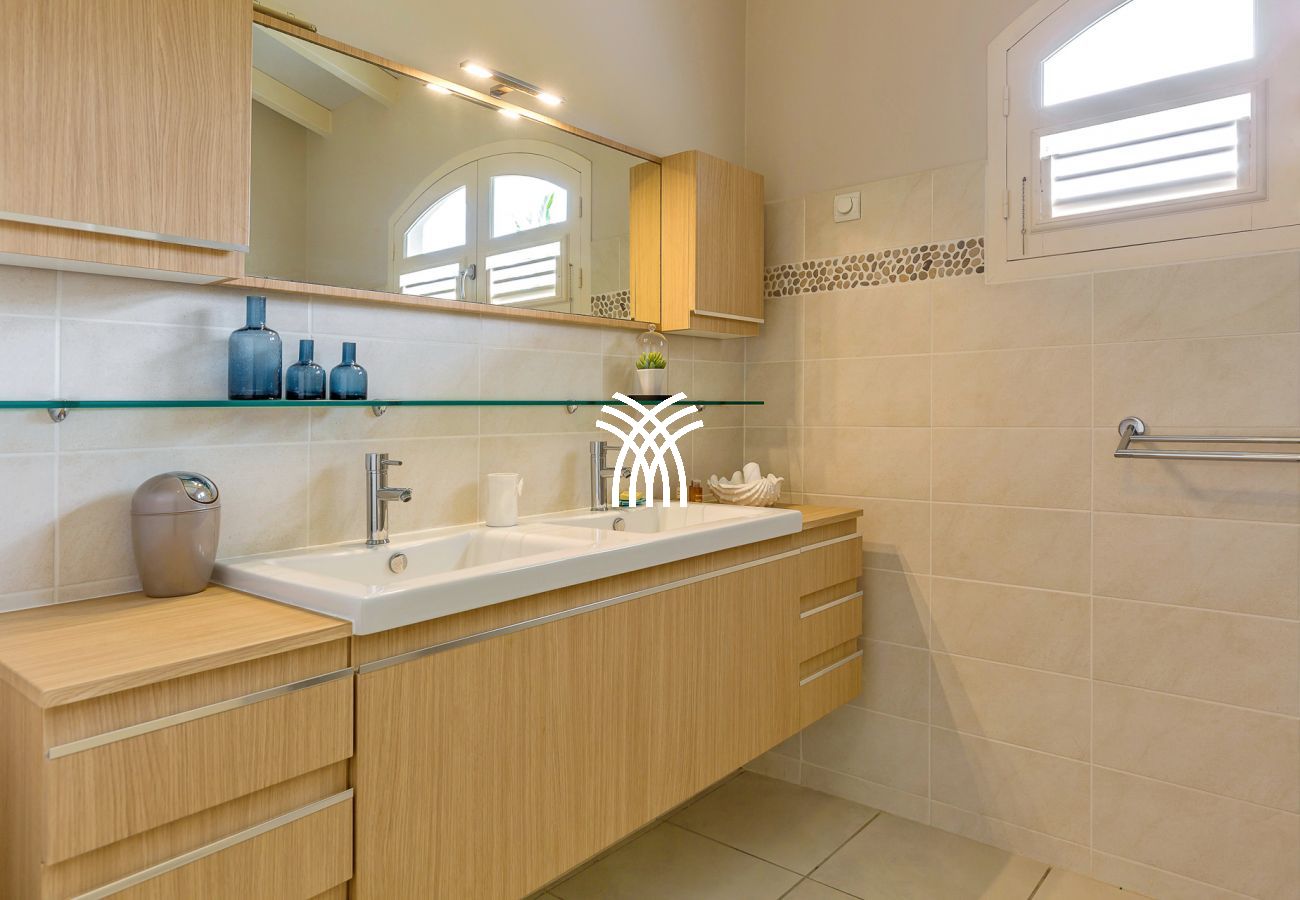Bright and spacious, the ground floor consists of a fully equipped kitchen that opens to an exterior with a private pool from where you can enjoy a relaxing view of the countryside while enjoying a barbecue under the rays of the sun and the gentle warmth of the West Indies. Villa Jade Palm Martinique, mixing modernity and creole touch, will make happy travelers in search of tranquility.