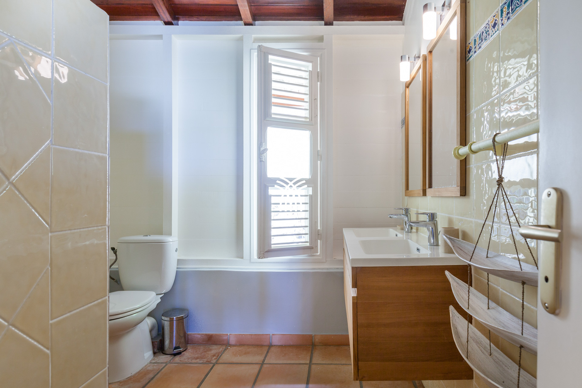 The villa has three air-conditioned bedrooms, designed to offer brightness and serenity. The master bedroom, decorated in white and beige tones, offers a restful view of the pool and an adjoining shower room with natural hues. The second bedroom, elegant and refined, is equipped with a 160x200 bed and bedside tables adorned with pretty lamps. The third bedroom, ideal for children or friends, has two 90x190 beds. These two bedrooms share a shower room with WC, combining practicality and comfort.