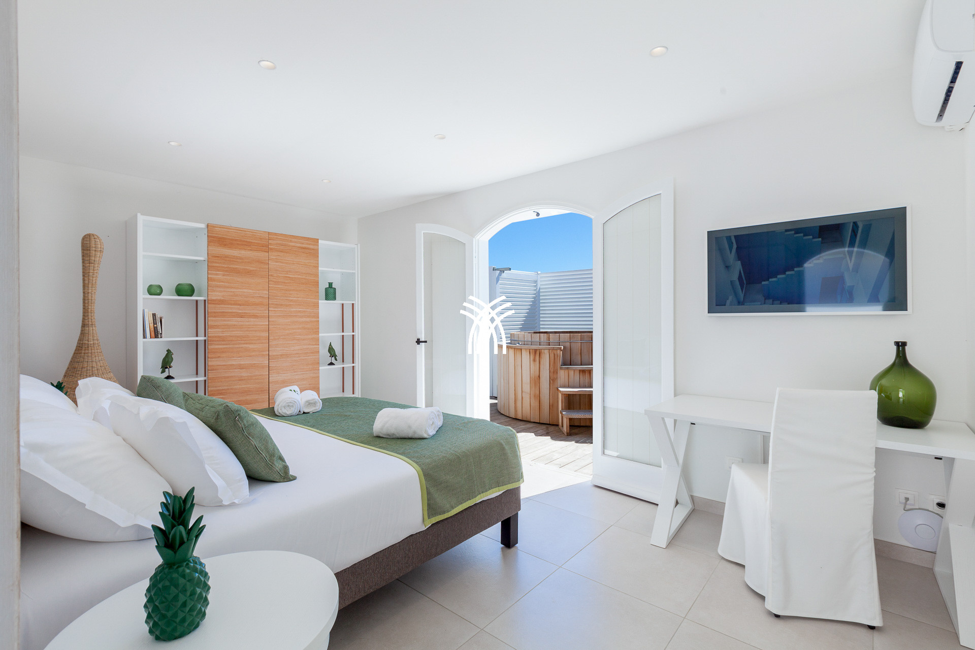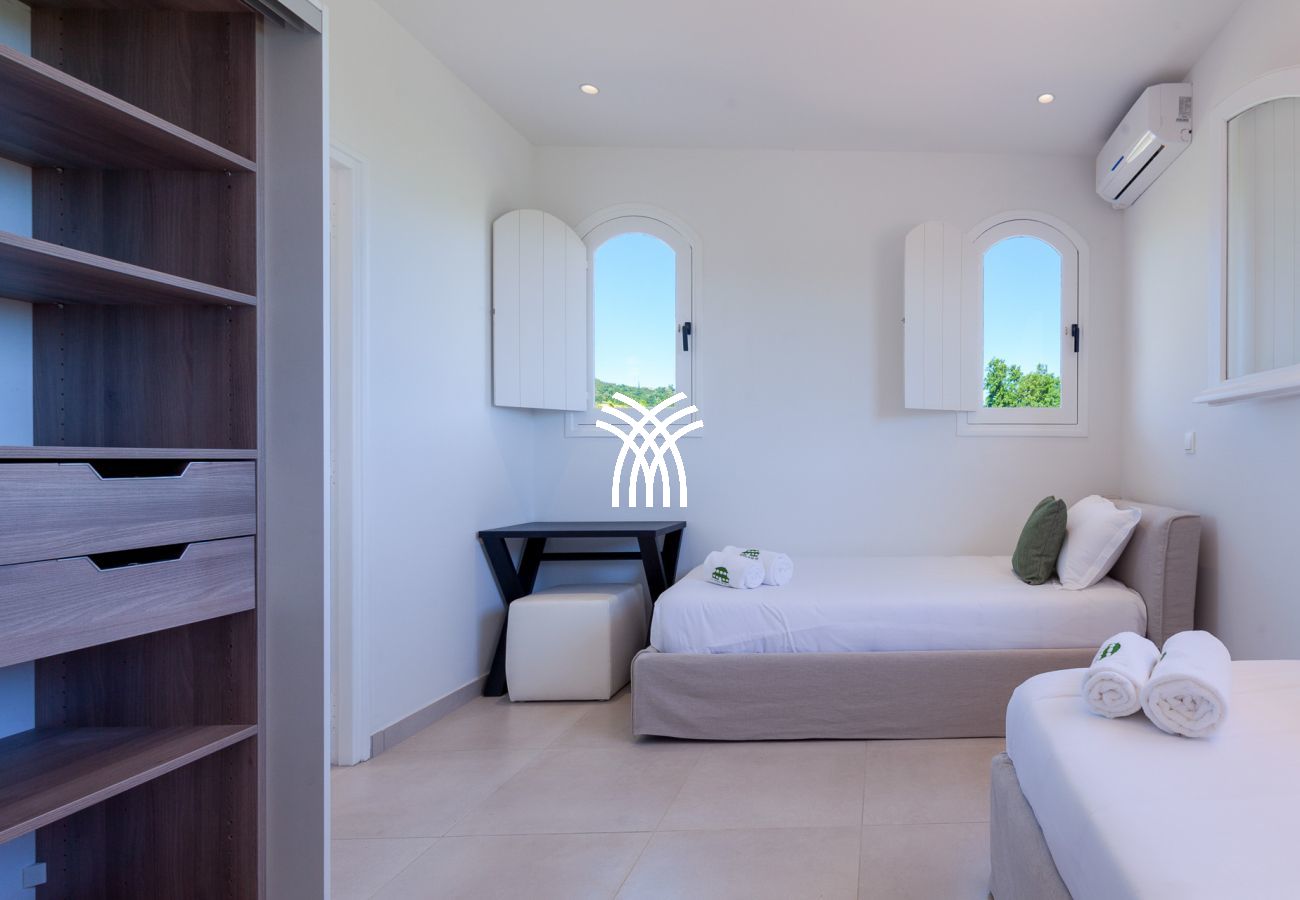 It is possible to transform the independent 18 sqm cottage housing the gym or massage room into a fifth bedroom to accommodate 10 guests. You just need to ask and we will do the changes.