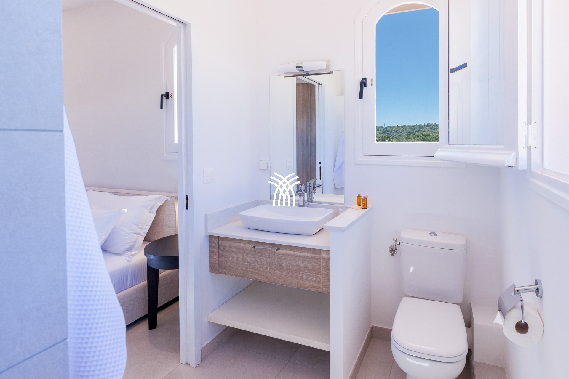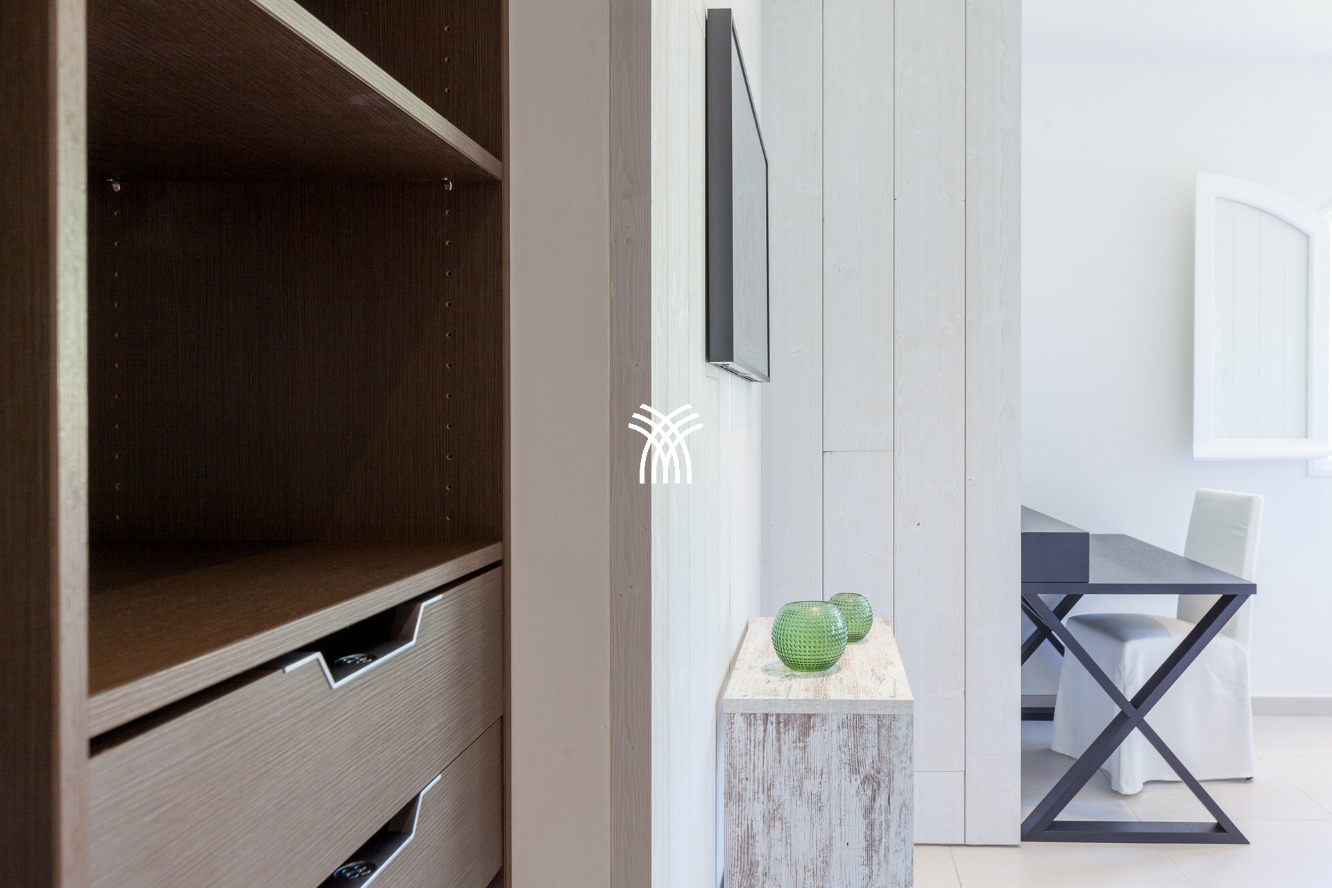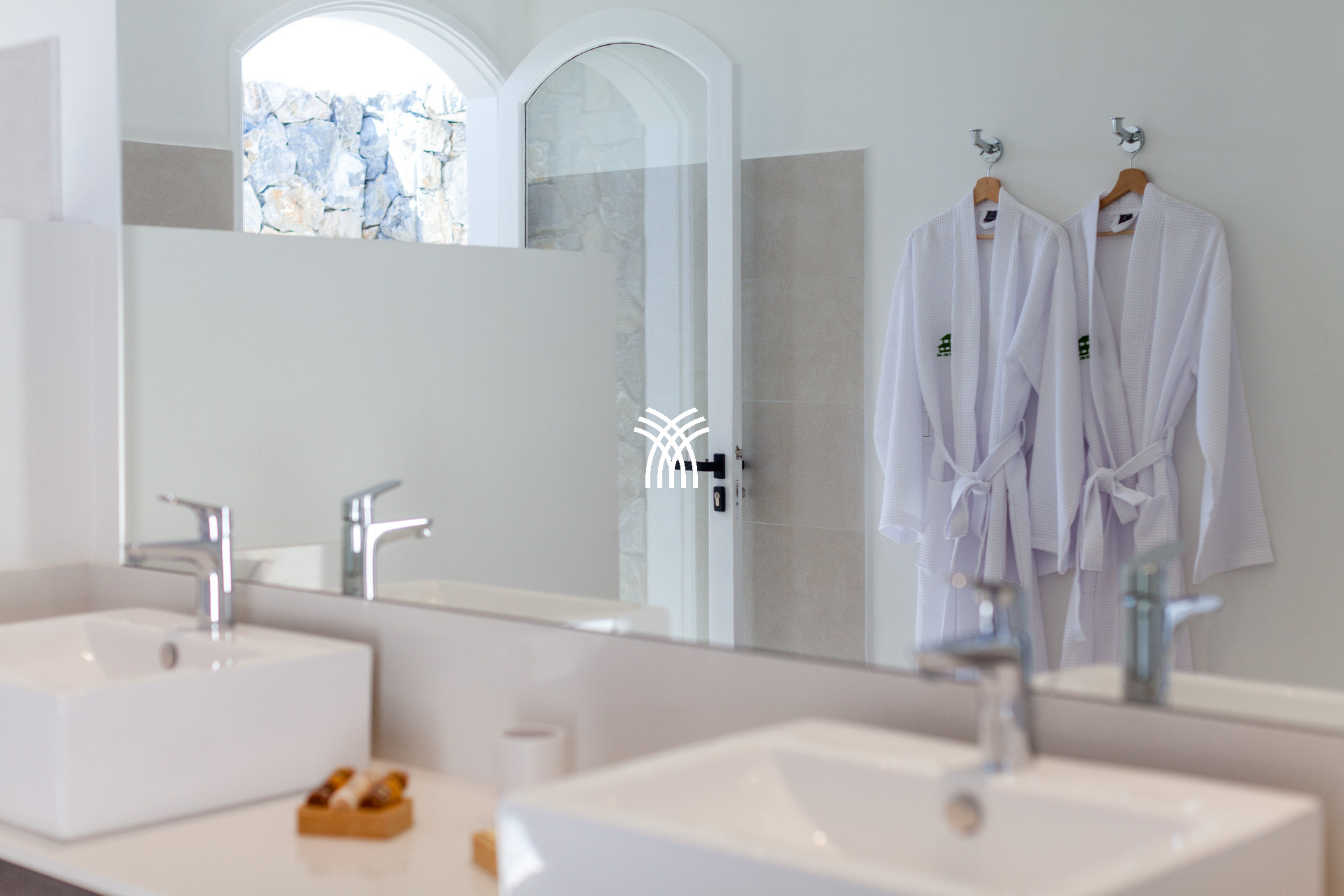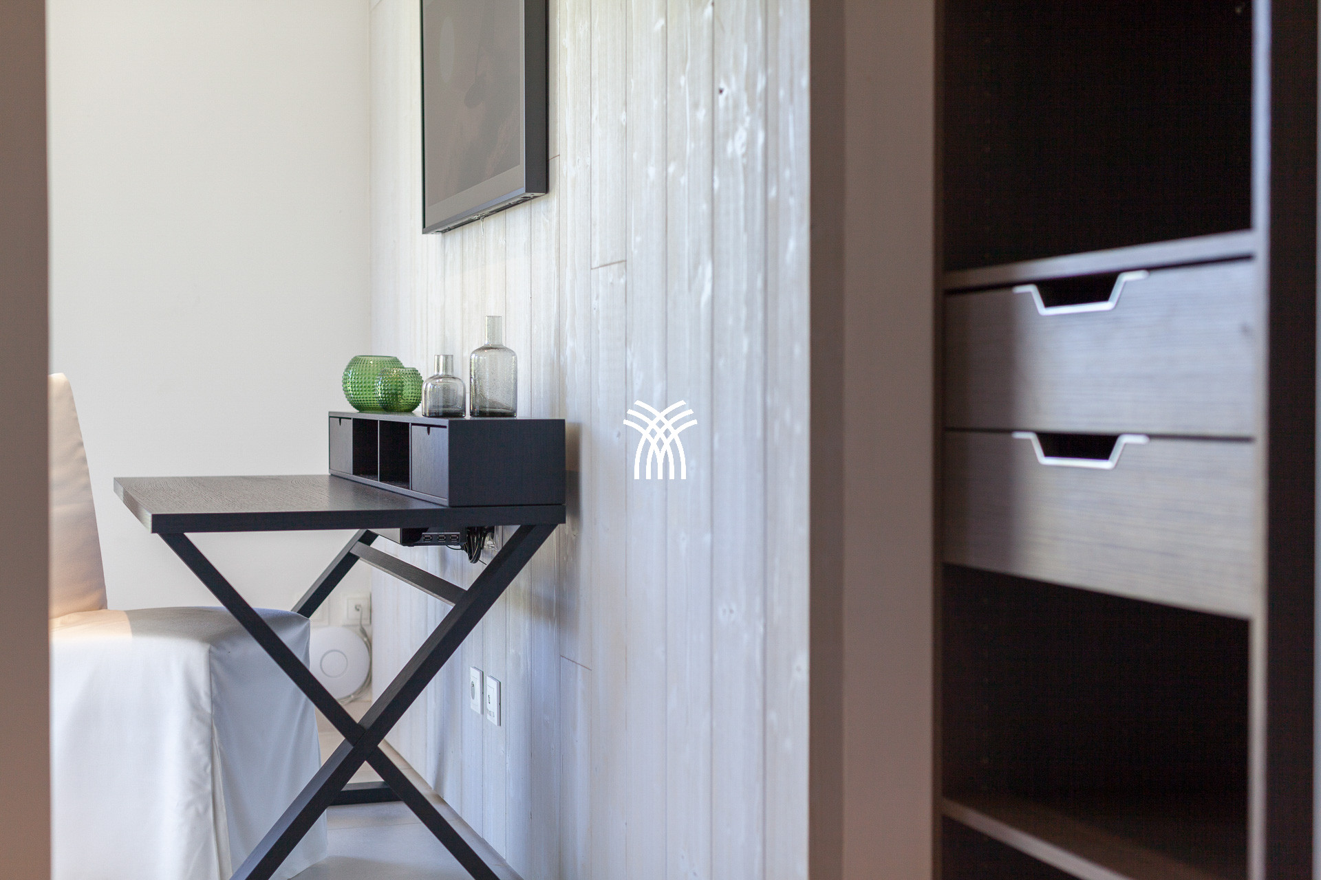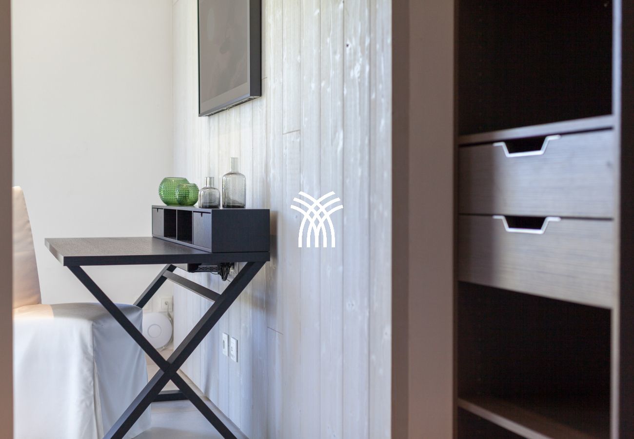 The first two bedrooms, elegant and comfortable, are located on the ground floor and have king size beds (180x200cm), TV, a desk and a shower room continuing on the outside.