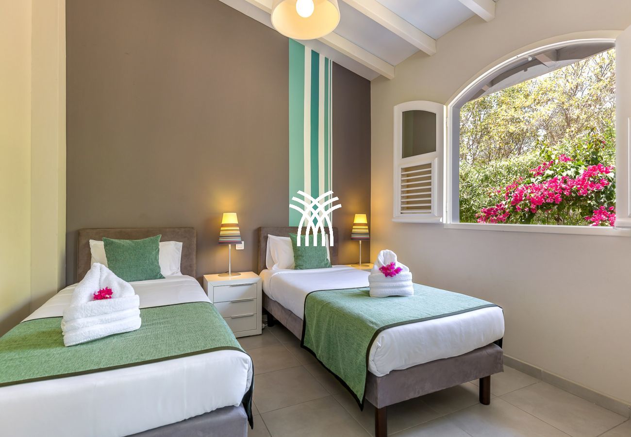 Twin beds (90x190), air conditioning, bathroom with shower and WC shared with bedroom 3, closet