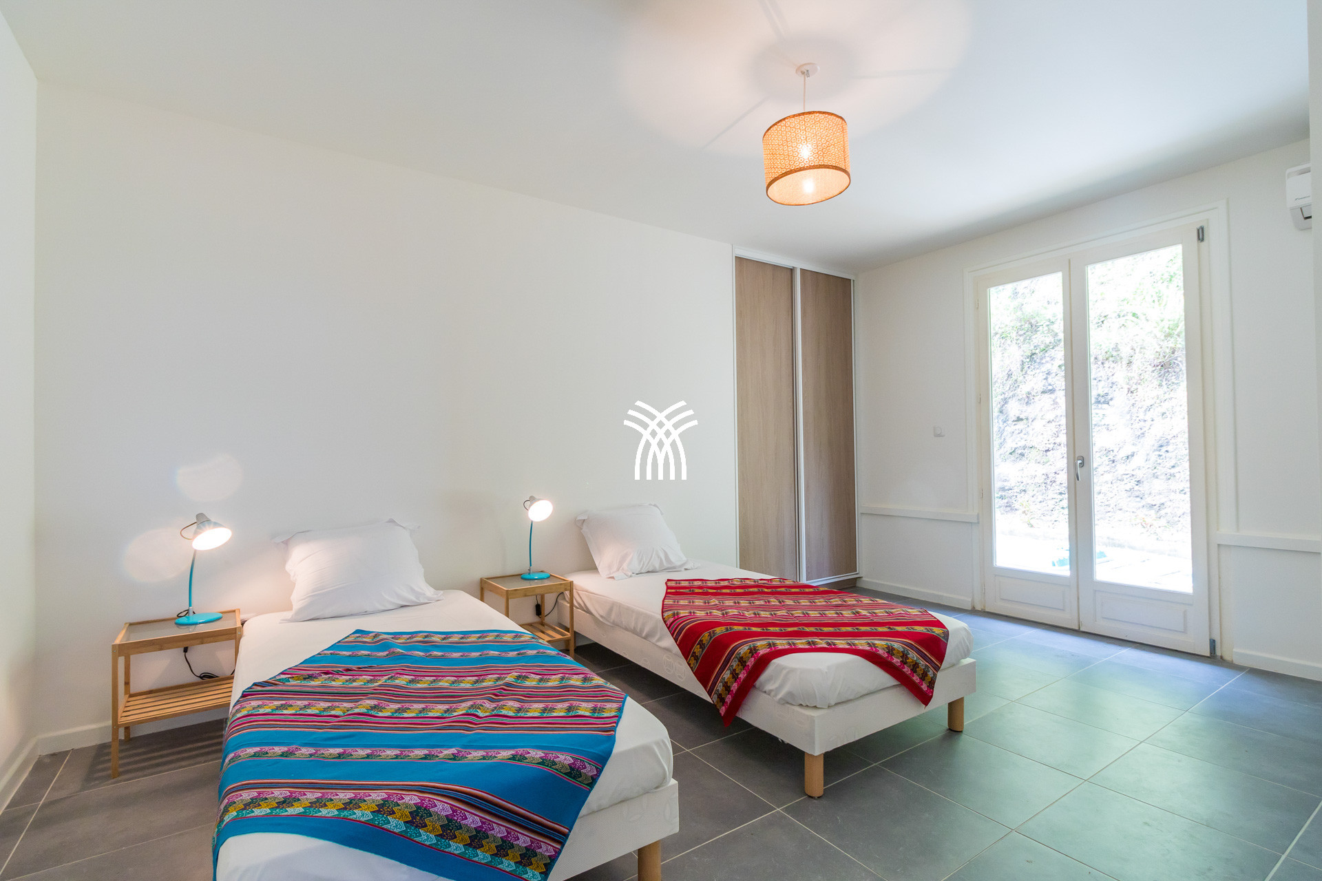 Villa Macabou Martinique has 5 bedrooms, each with air-conditioning, queen bed and en-suite bathroom.