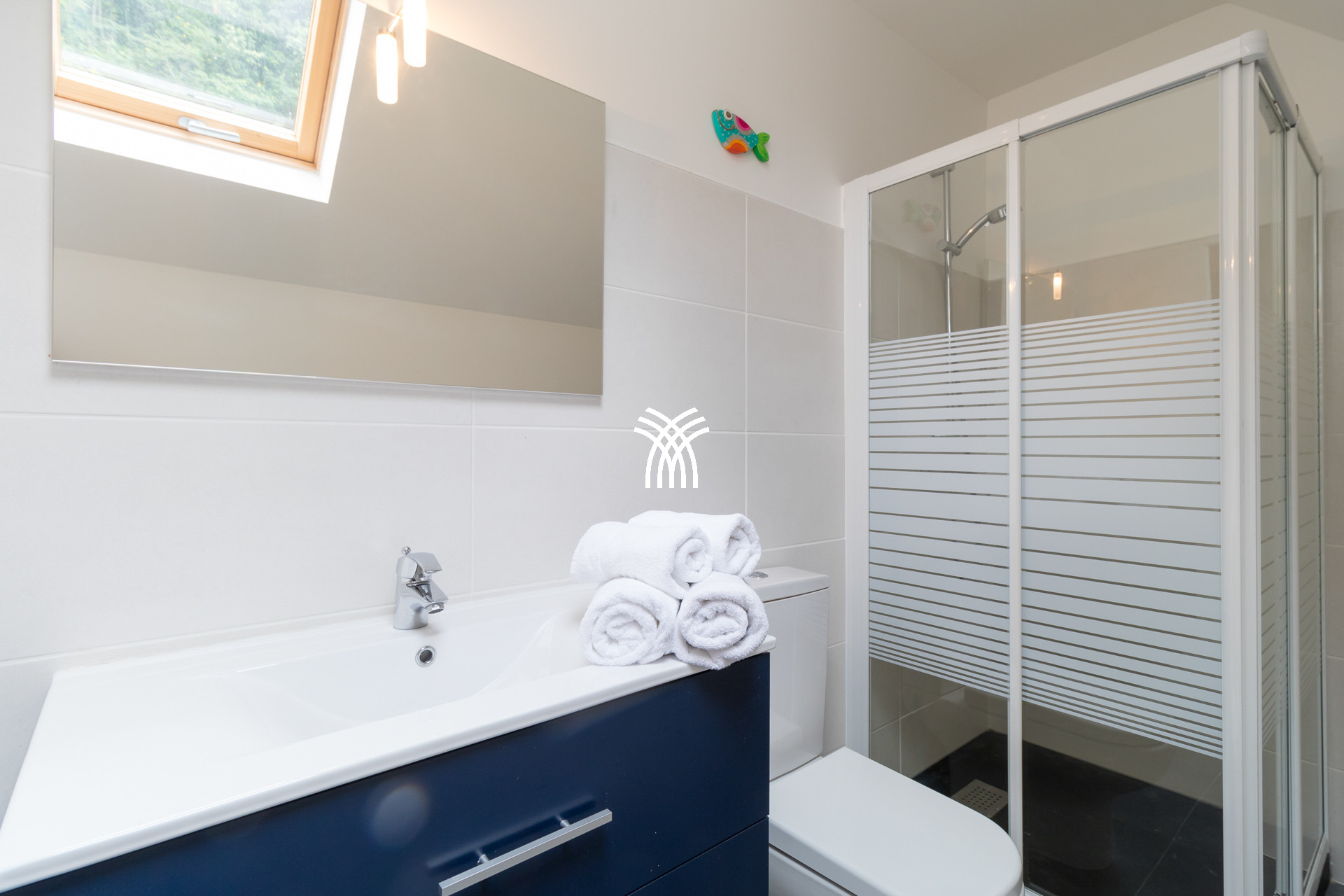 Queen size bed, air-conditioning, bathroom with shower and WC shared with bedroom 4, wardrobe