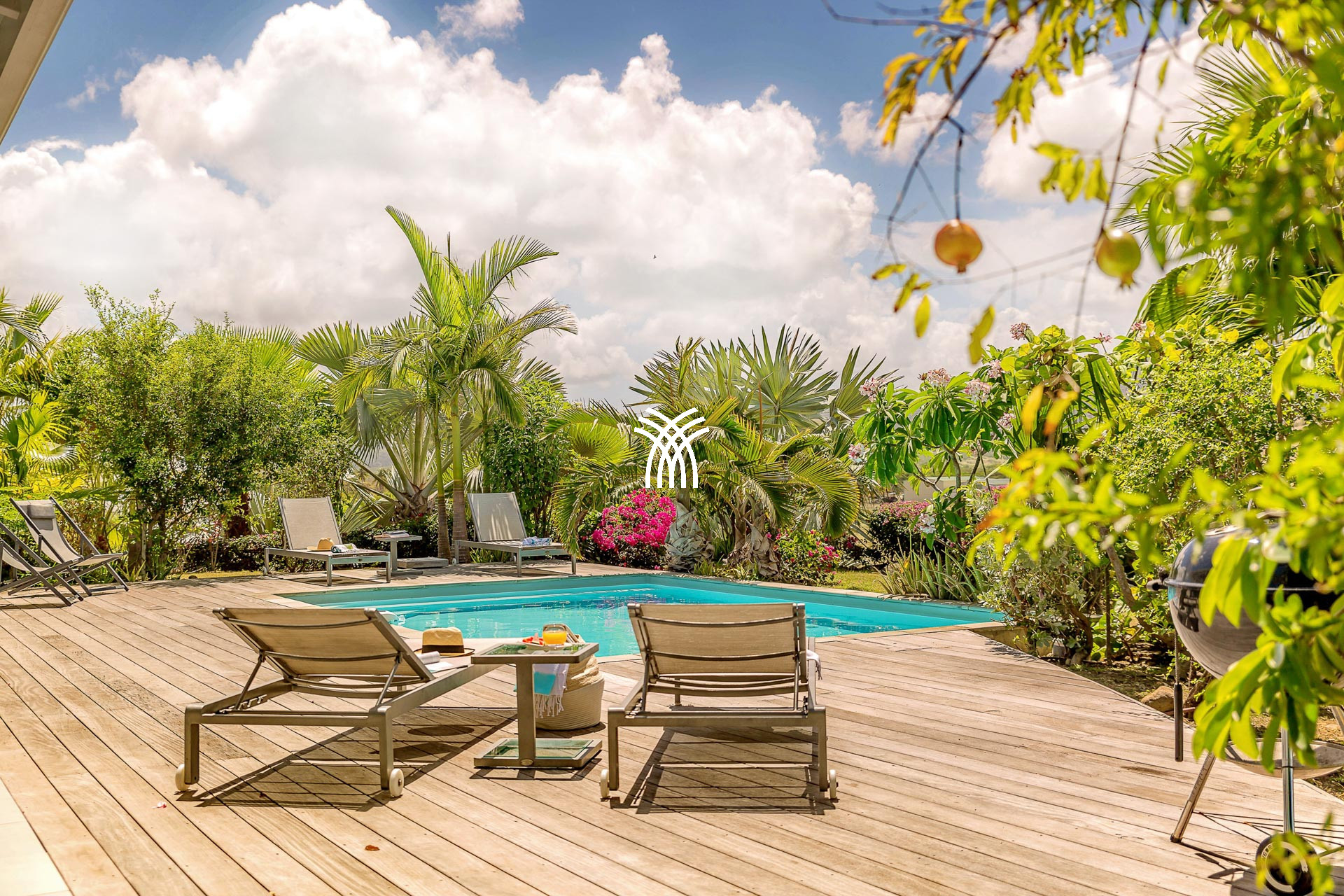 Bright and spacious, the ground floor consists of a fully equipped kitchen that opens to an exterior with a private pool from where you can enjoy a relaxing view of the countryside while enjoying a barbecue under the rays of the sun and the gentle warmth of the West Indies. Villa Jade Palm Martinique, mixing modernity and creole touch, will make happy travelers in search of tranquility.