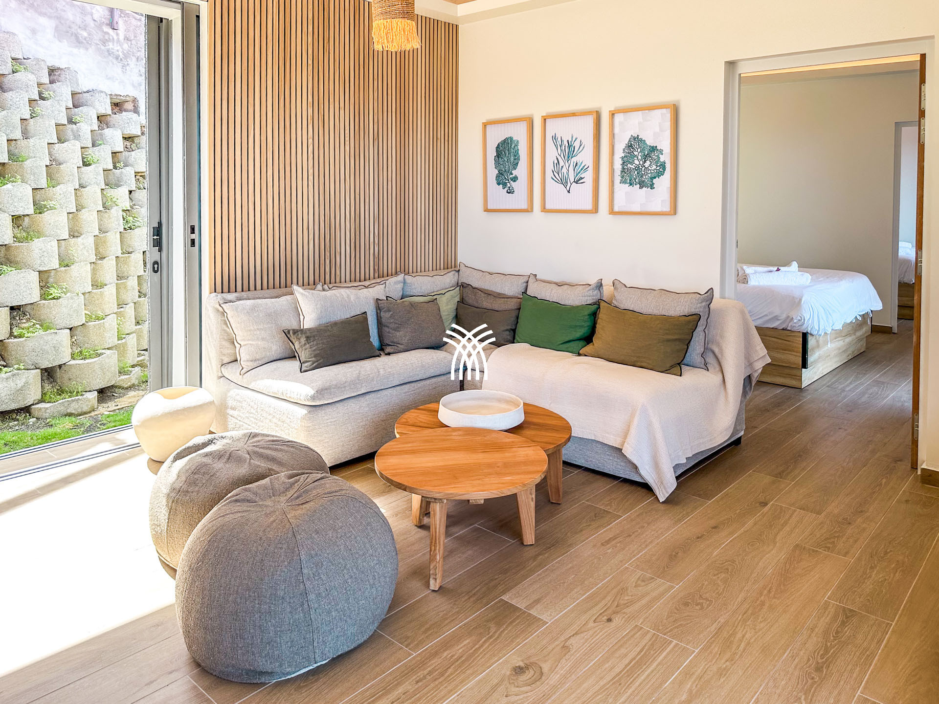 The Inawa villa captivates with its contemporary architecture, clean lines, and light-filled spaces. It offers 100m² of refined comfort, including three intimate parental suites with king-size beds and adjoining bathrooms. Each living space has been designed for relaxation and sensory pleasure: open kitchen with central island, elegant living room, panoramic terrace, infinity pool, and carefully selected outdoor furniture.