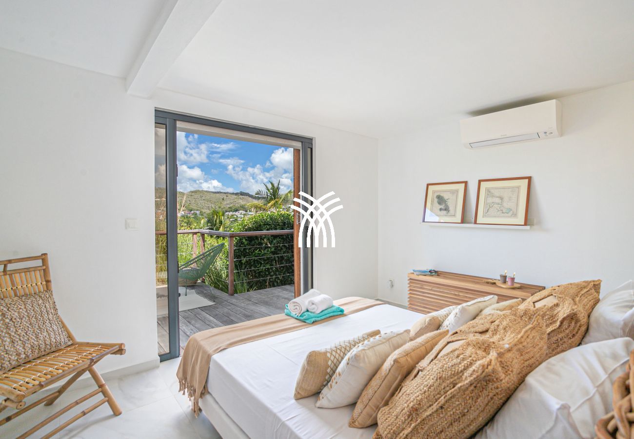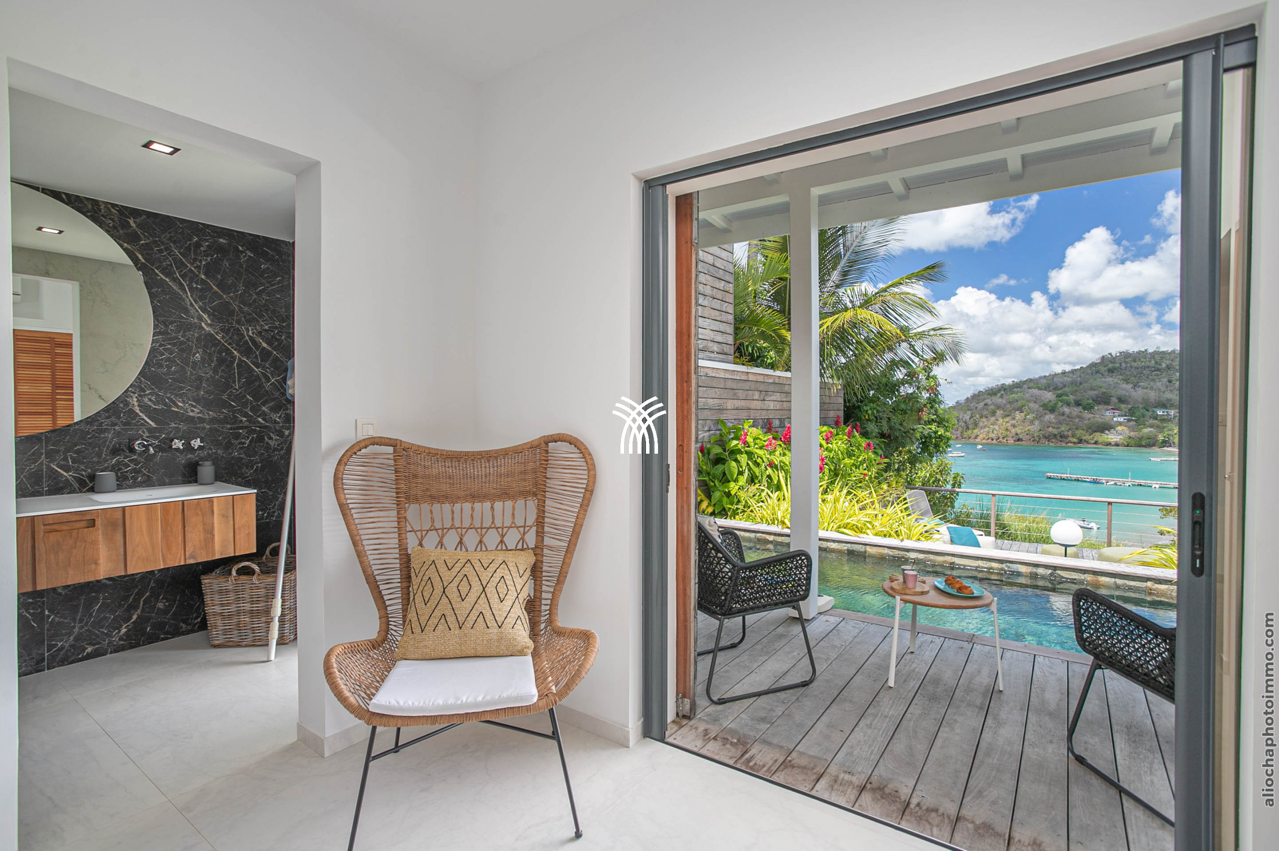 Located by the sea, Villa Caribbean Breeze reveals a stunning panorama of Anse à l’Âne with its turquoise waters, piers, and anchored sailboats. The use of noble materials and quality furniture gives this residence a unique charm, while the decorative items create a warm and intimate atmosphere. Every detail has been carefully thought out for your comfort and well-being.
