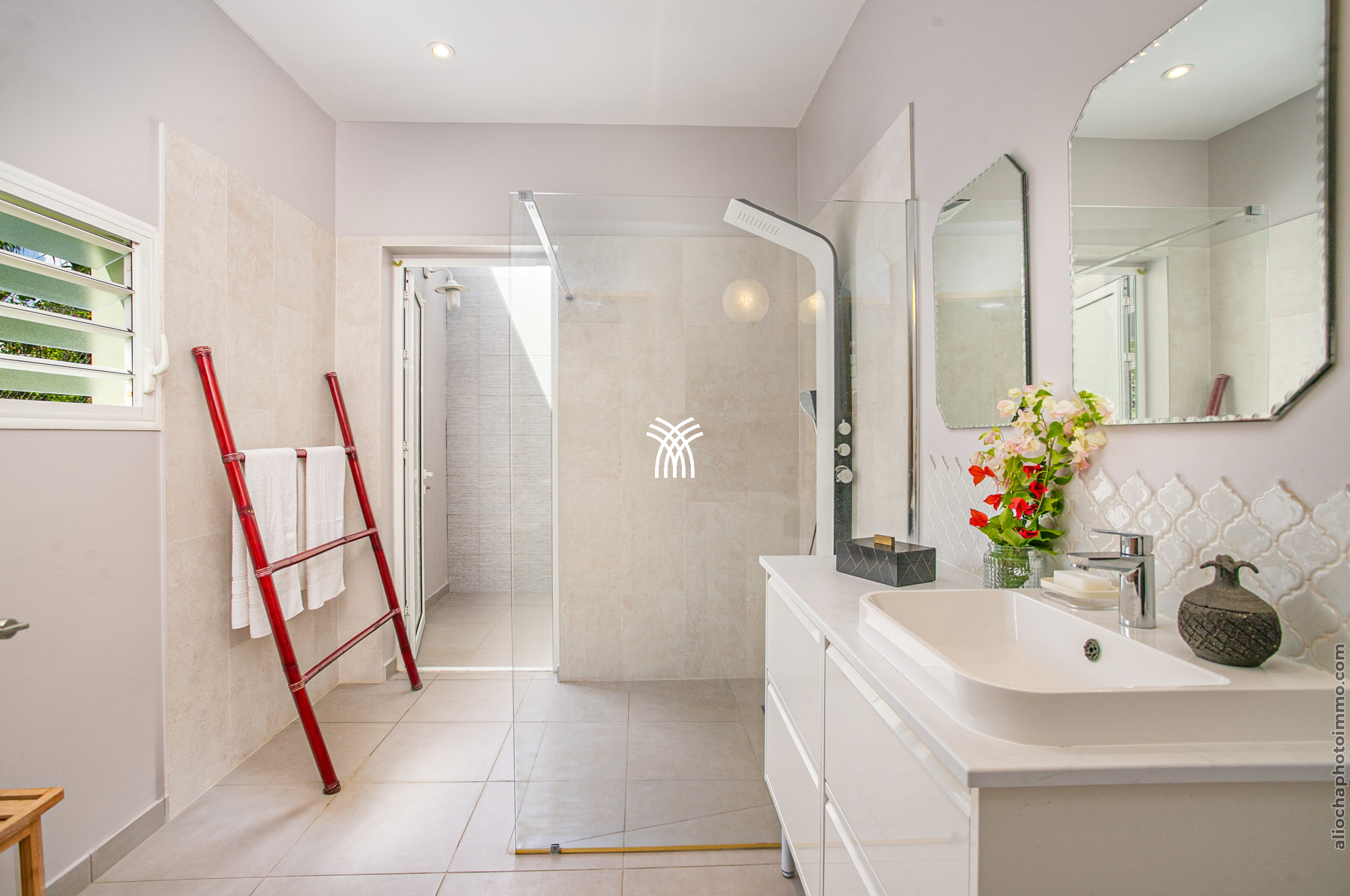Discover Villa Jana, an exceptional property designed for an exclusive luxury villa rental experience in Martinique, located in the heart of Trois-Îlets, one of the most sought-after locations in the south of the island. Nestled in a peaceful residential environment, between lush tropical vegetation and turquoise sea, this Trois-Îlets luxury villa rental offers a perfect balance between contemporary elegance, high-end comfort, and Caribbean authenticity.