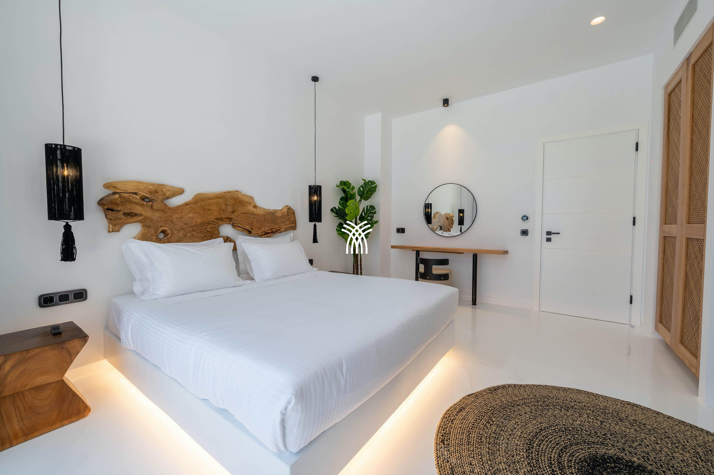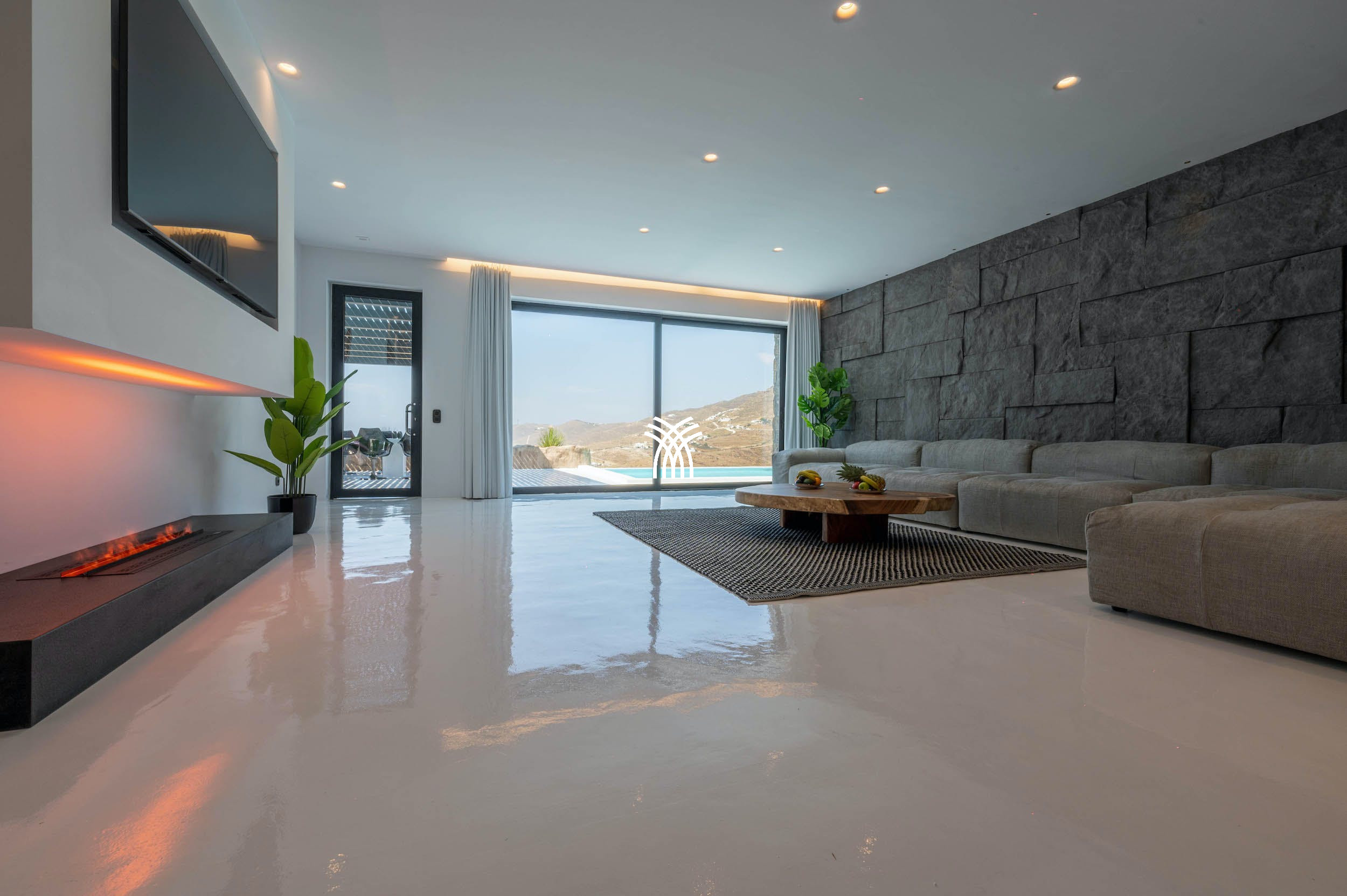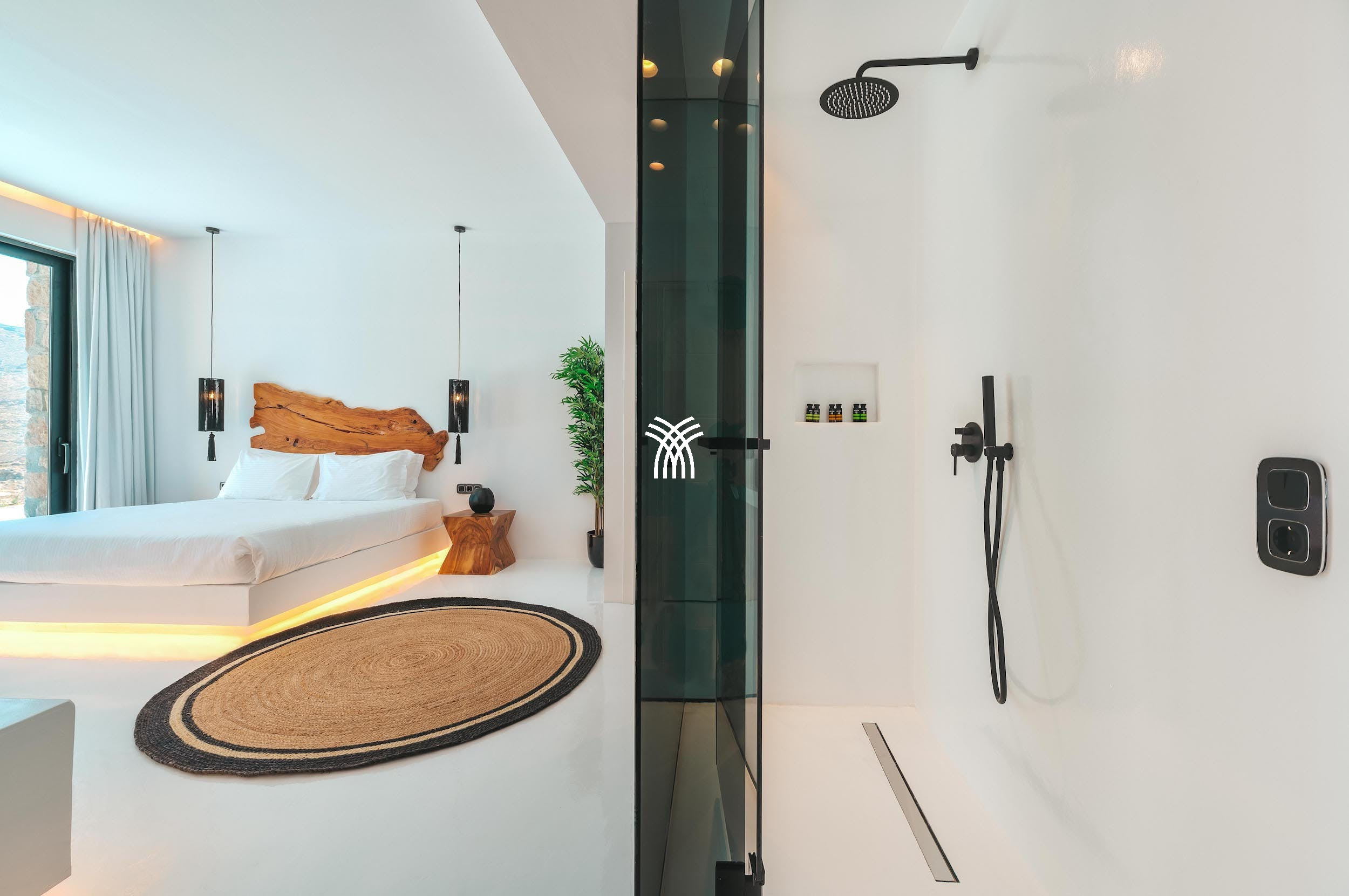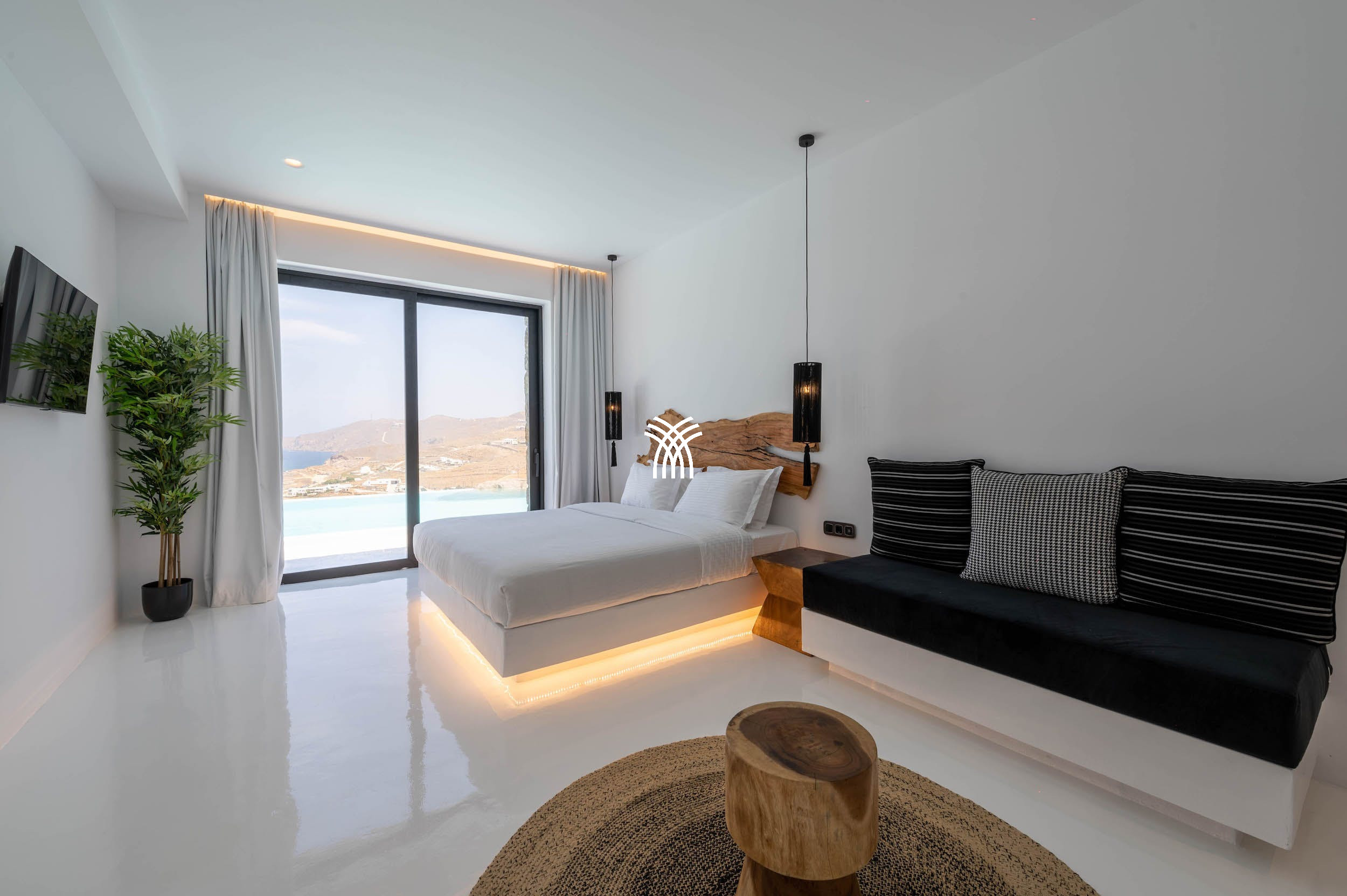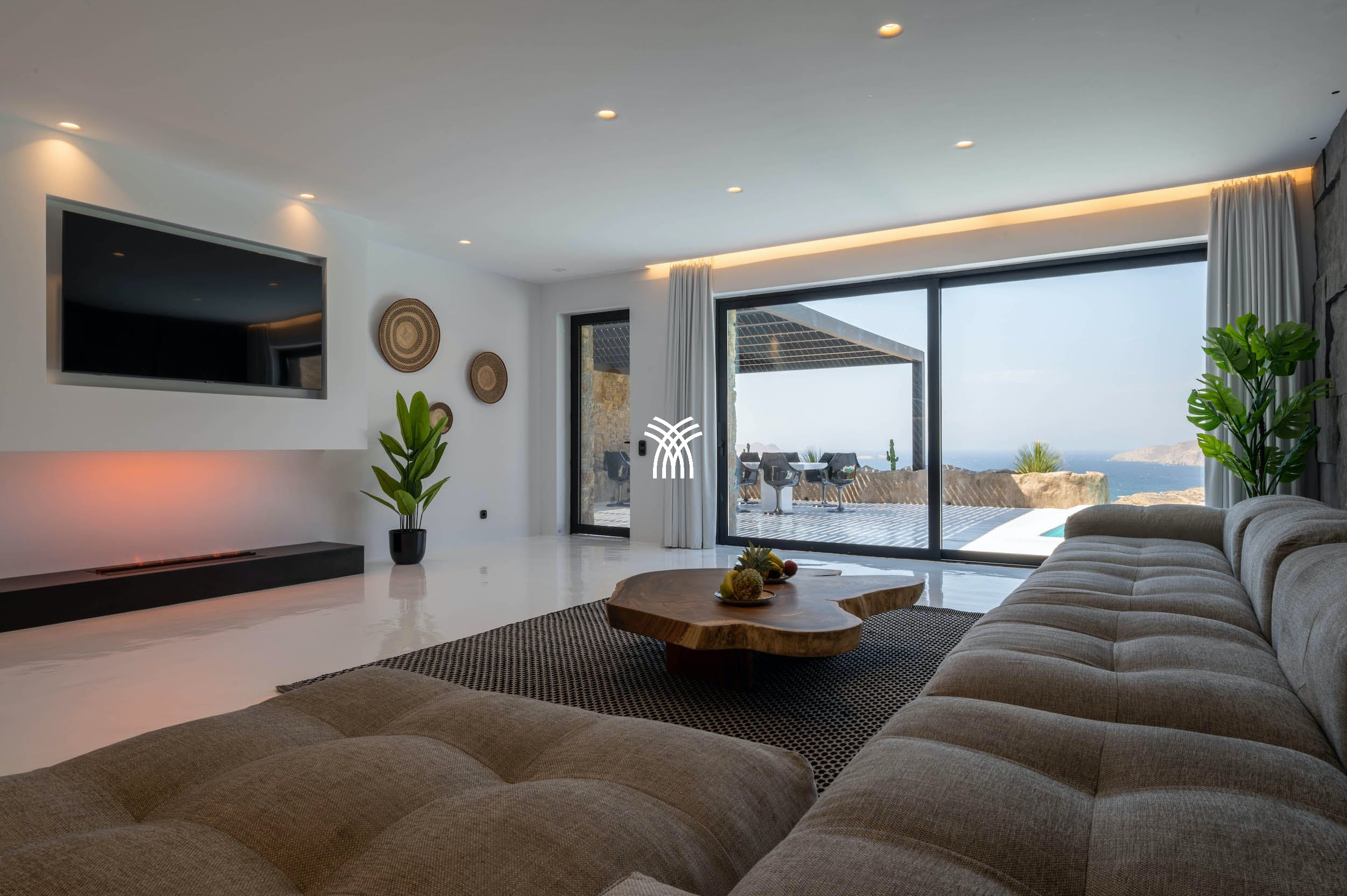 Outside, the villa boasts a private swimming pool, a barbecue area, and thoughtfully landscaped surroundings ideal for entertaining, relaxing, or enjoying the unforgettable Mykonian sunset. Whether you seek quiet moments or festive gatherings, this luxury villa rental in Greece promises a dream vacation filled with comfort, elegance, and unforgettable views.