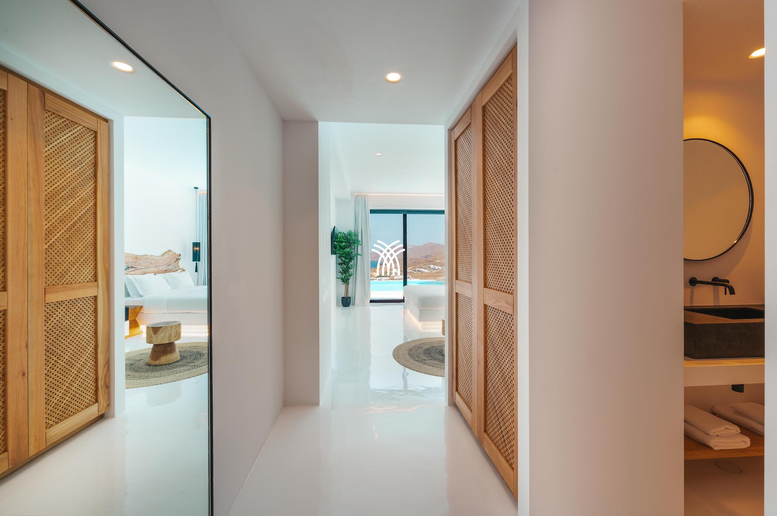 Immerse yourself in the essence of Mykonos with a luxury villa rental in Greece at the iconic Villa Goddess, a seafront haven that redefines elegance and exclusivity. Perched above the Aegean Sea in the prestigious Pouli area near Ornos, Villa Goddess offers panoramic views that stretch over the sparkling turquoise waters, the sacred island of Delos, and the Mykonian skyline—an experience of unparalleled beauty and serenity.