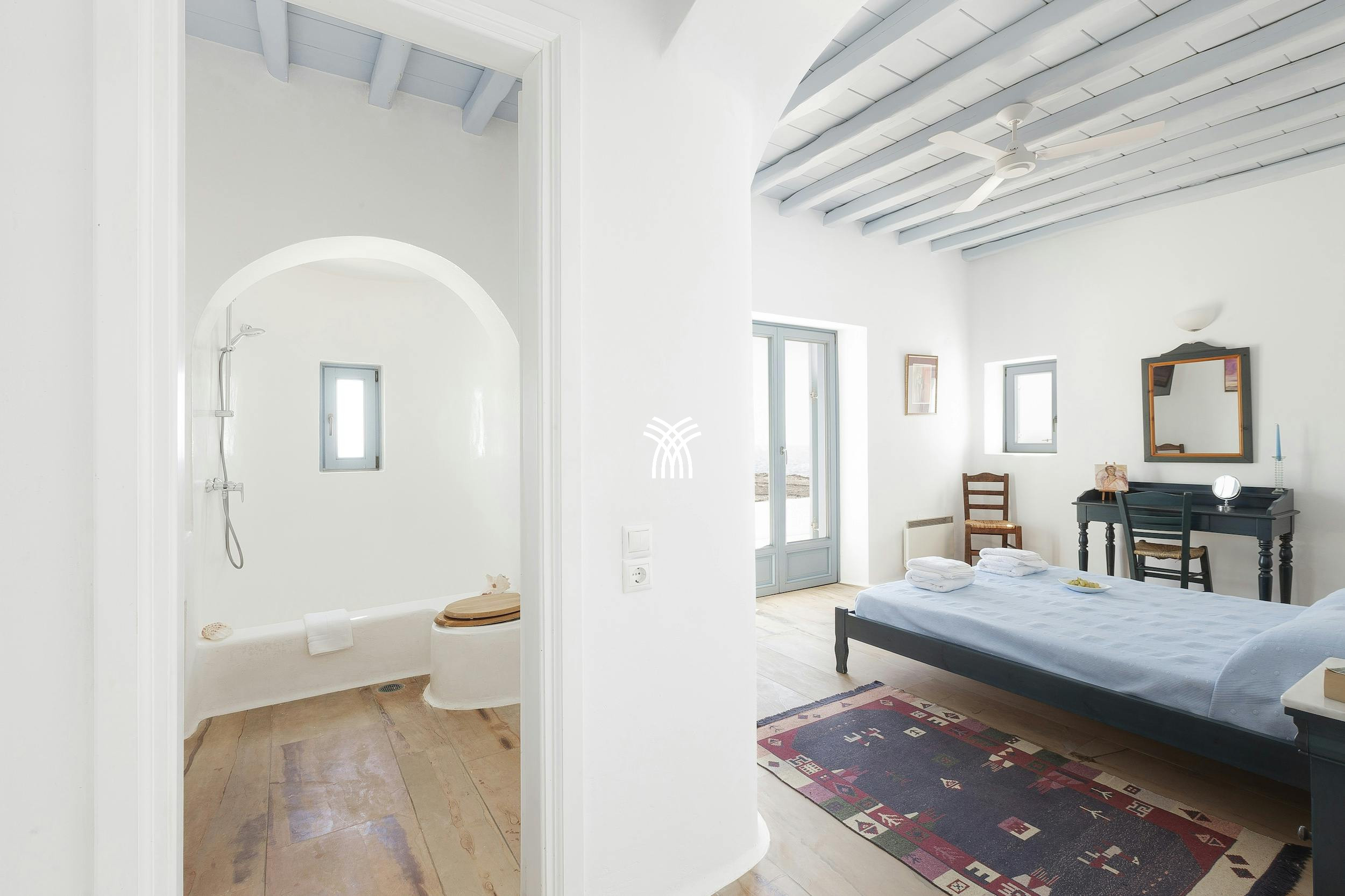 Step outside to your private pool and soak up the sun while gazing out over the serene sea. With close proximity to popular beaches like Agios Ioannis and Ornos, this villa offers the best of both worlds—tranquil seclusion with easy access to the island’s vibrant lifestyle. A luxury villa rental in Greece at this exquisite property promises unforgettable moments in a truly magical setting.