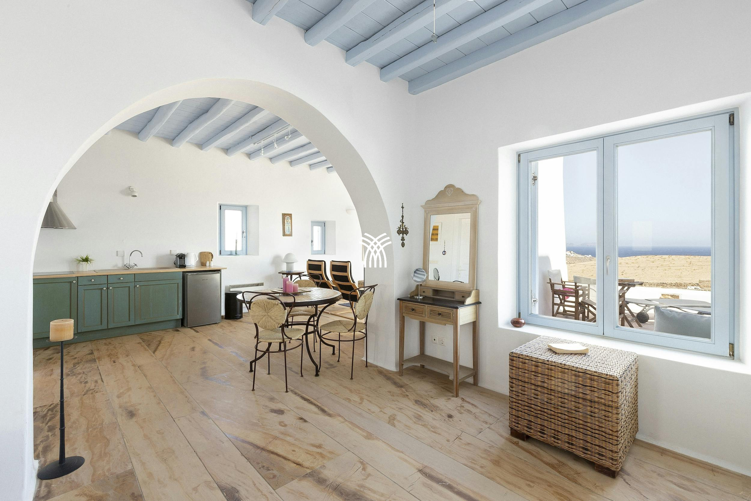 Just 1.2 km from a sandy beach, 1.6 km from Mykonos town, and with sea and pool views, this villa promises an unforgettable Mediterranean getaway.