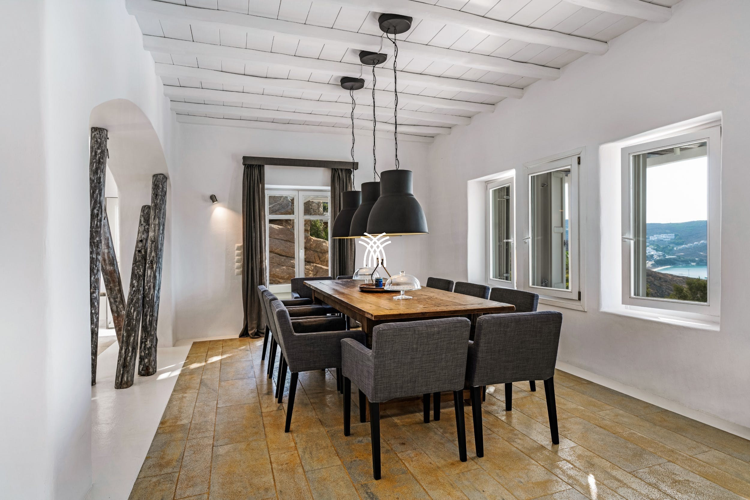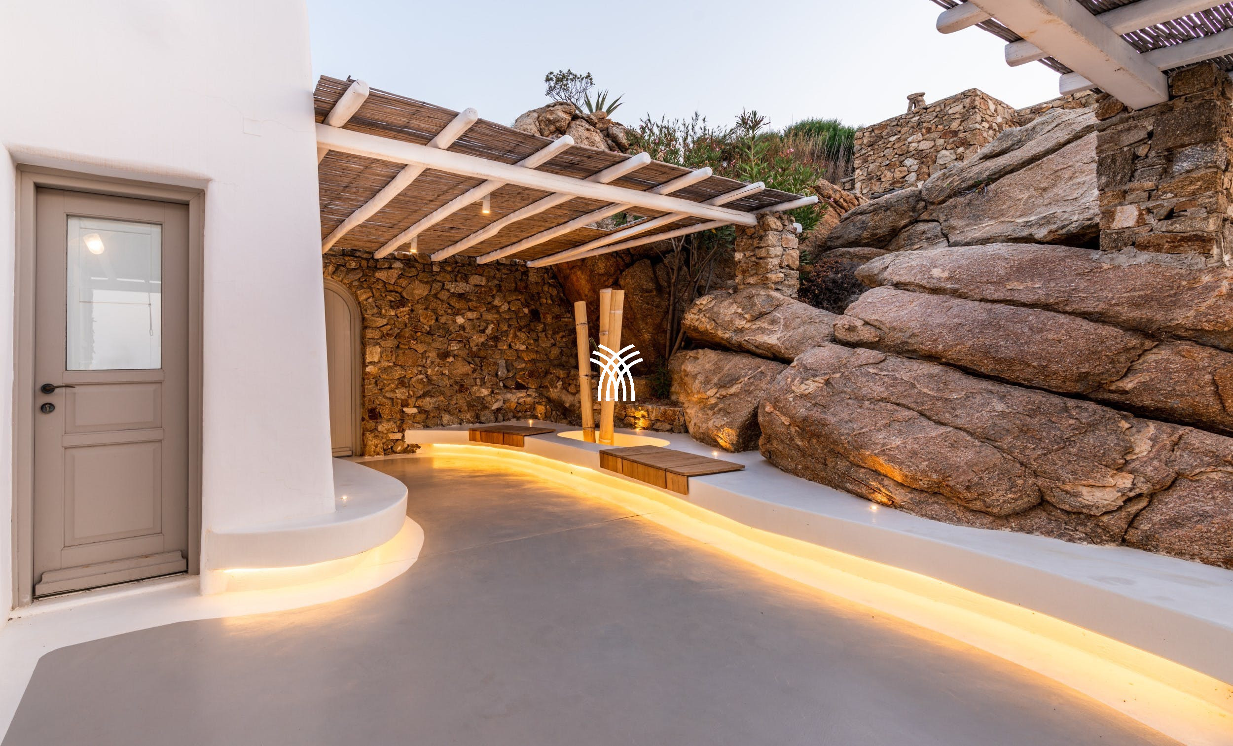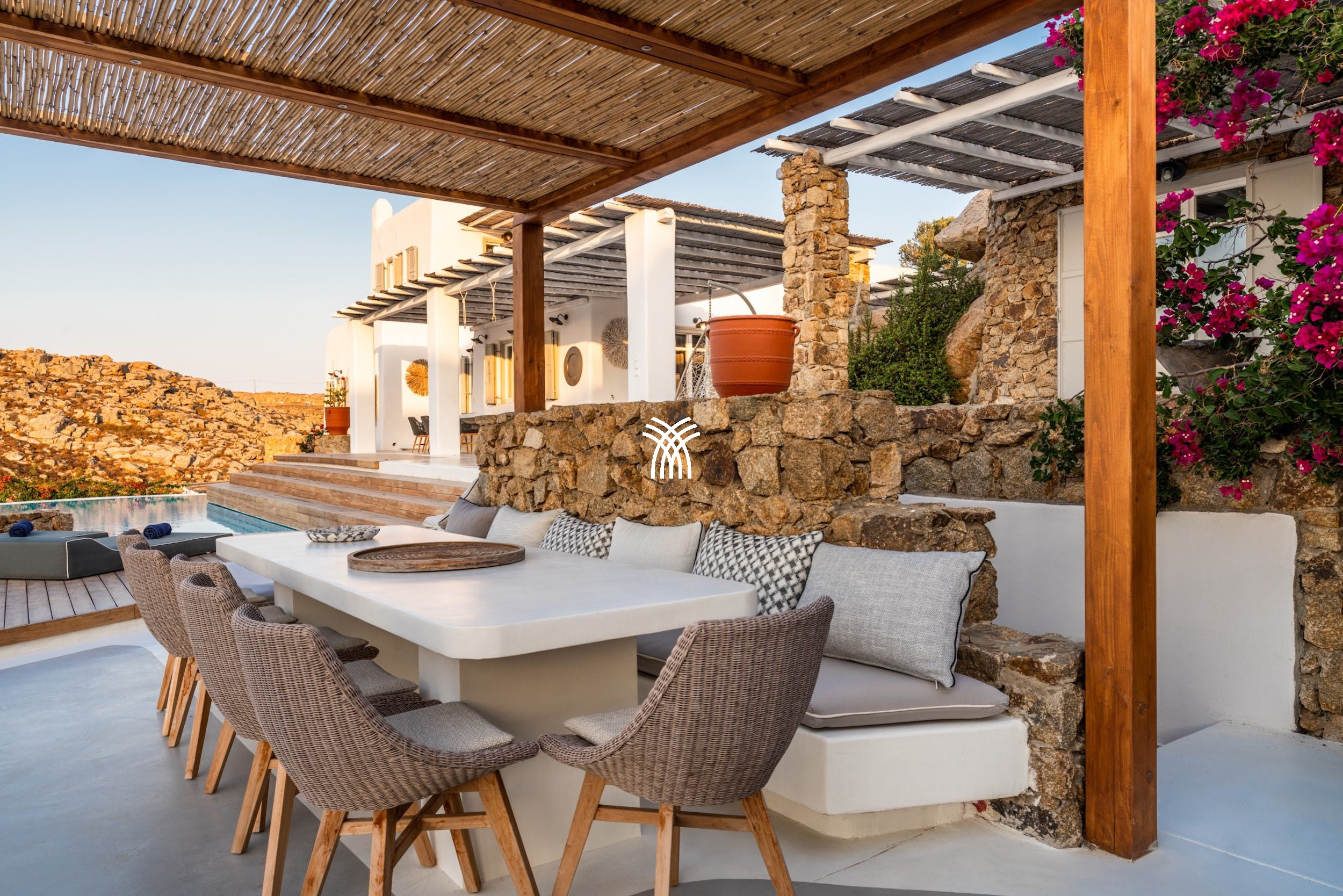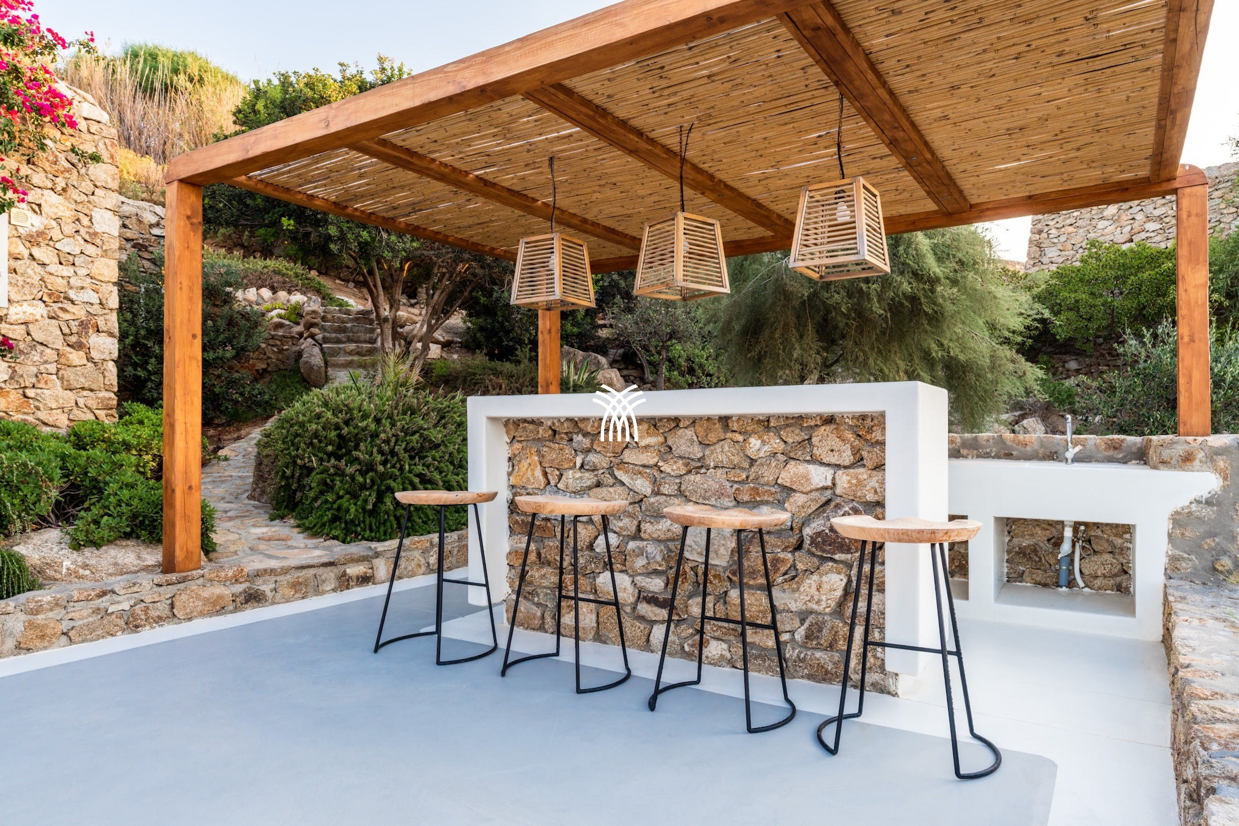 Outside, the villa boasts a private swimming pool, a barbecue area, and thoughtfully landscaped surroundings ideal for entertaining, relaxing, or enjoying the unforgettable Mykonian sunset. Whether you seek quiet moments or festive gatherings, this luxury villa rental in Greece promises a dream vacation filled with comfort, elegance, and unforgettable views.