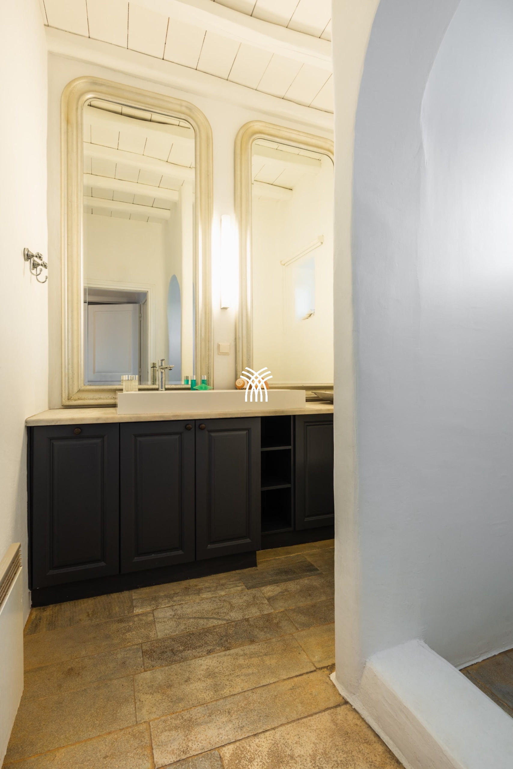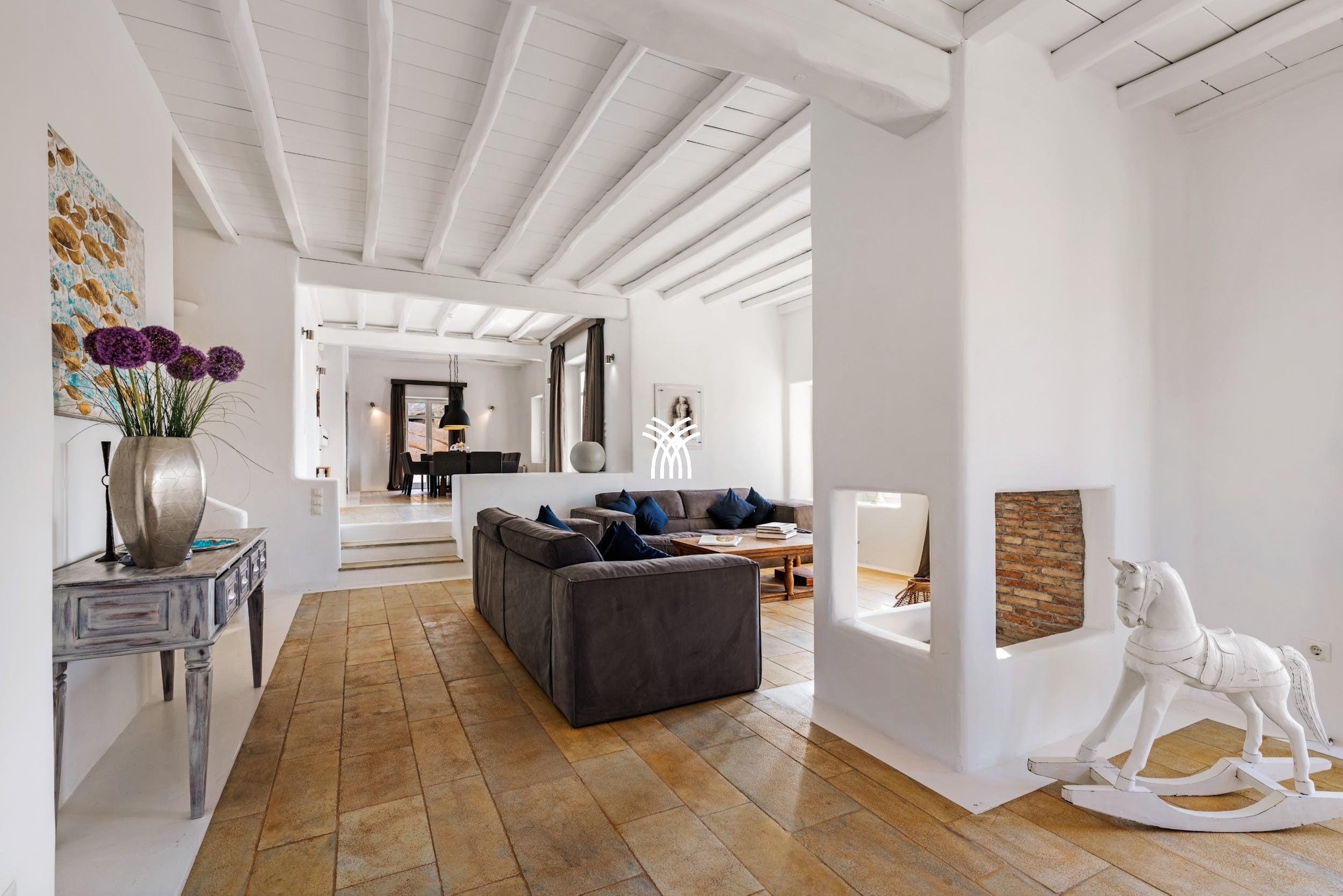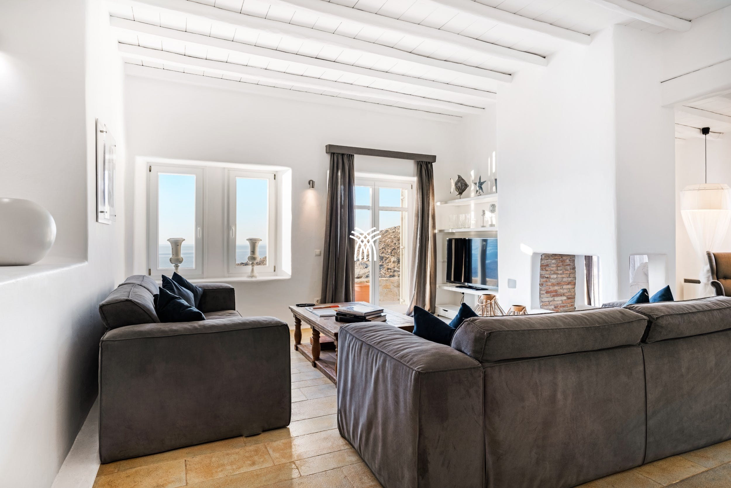 Outside, the villa boasts a private swimming pool, a barbecue area, and thoughtfully landscaped surroundings ideal for entertaining, relaxing, or enjoying the unforgettable Mykonian sunset. Whether you seek quiet moments or festive gatherings, this luxury villa rental in Greece promises a dream vacation filled with comfort, elegance, and unforgettable views.