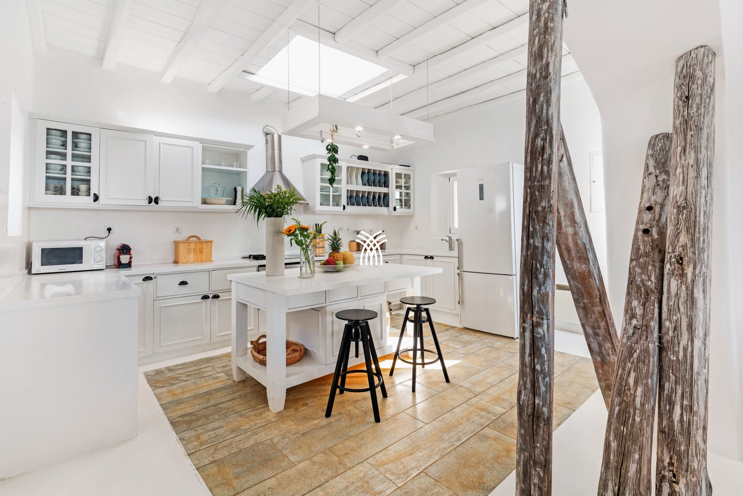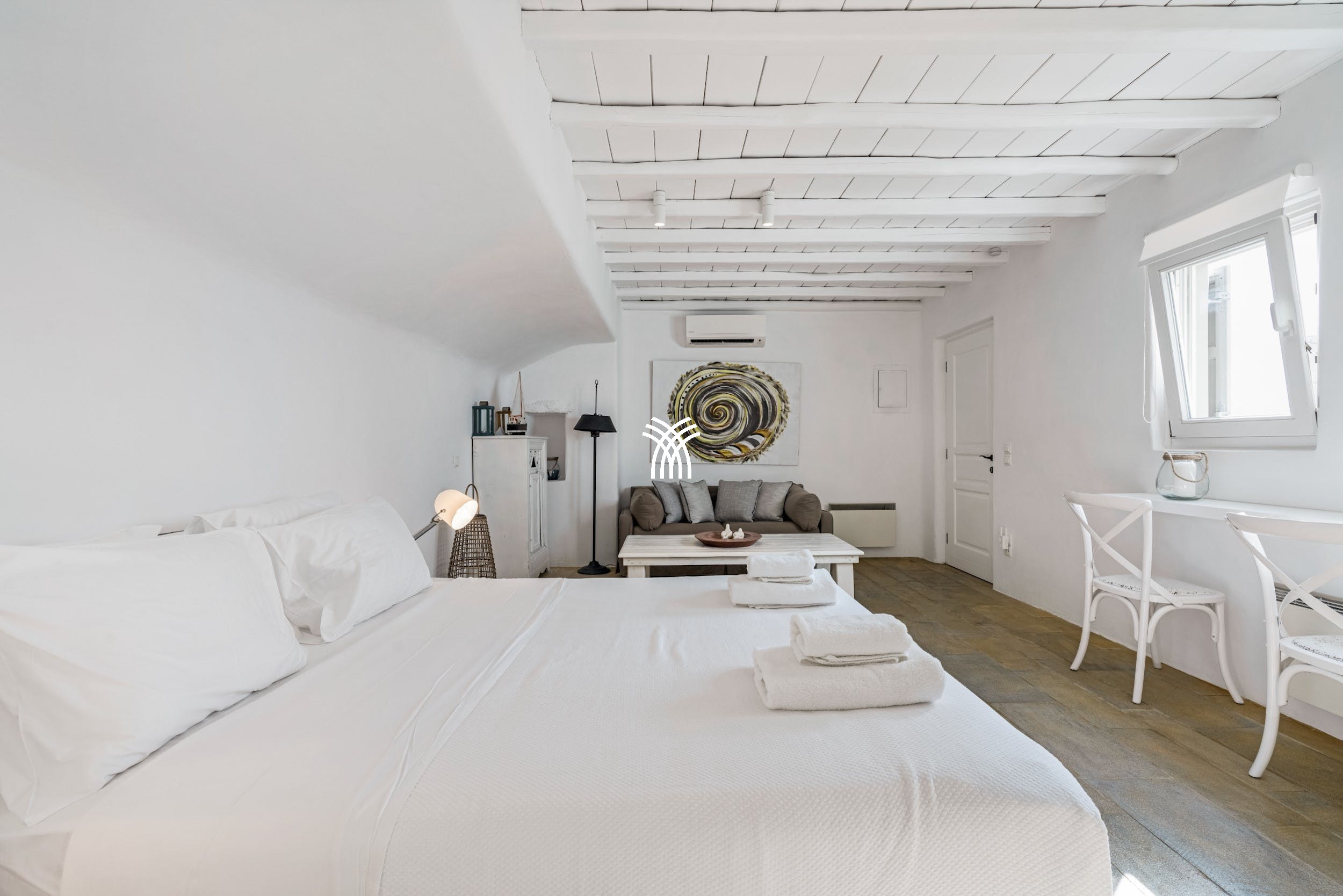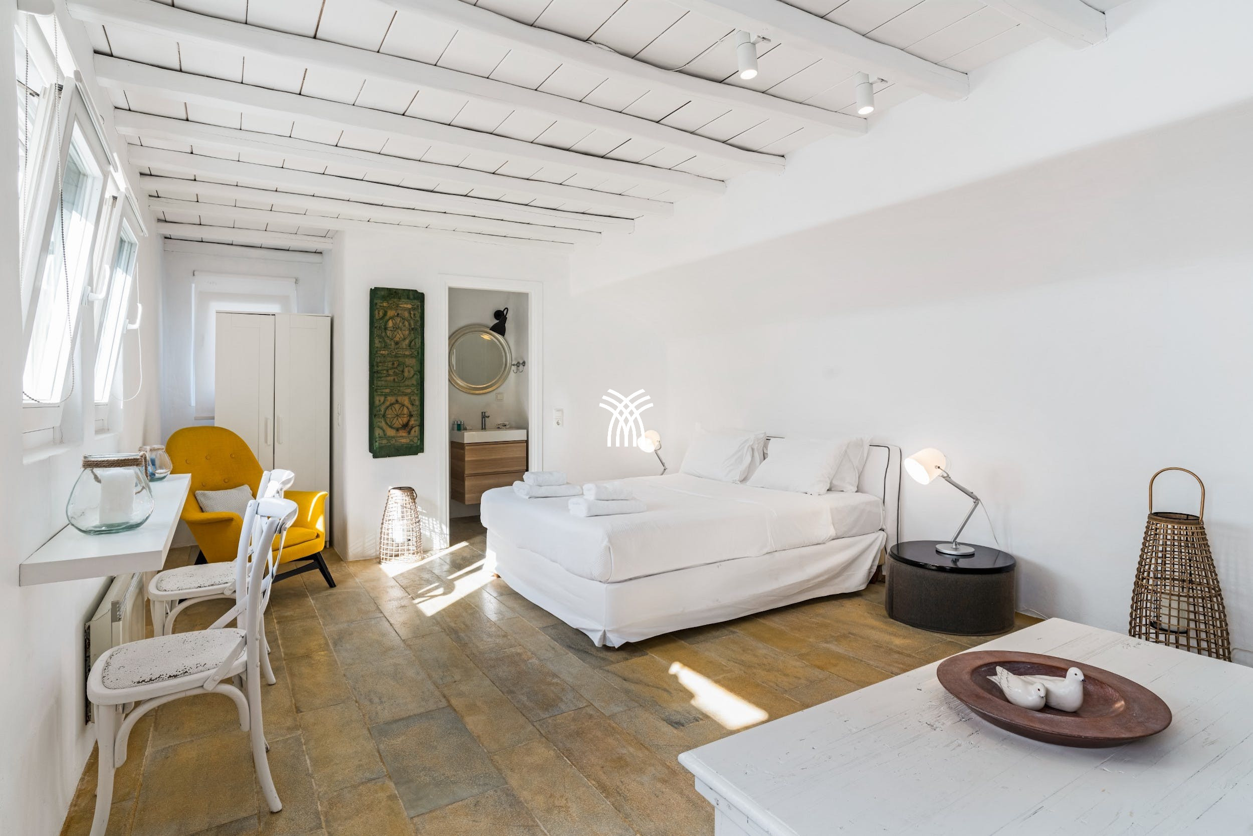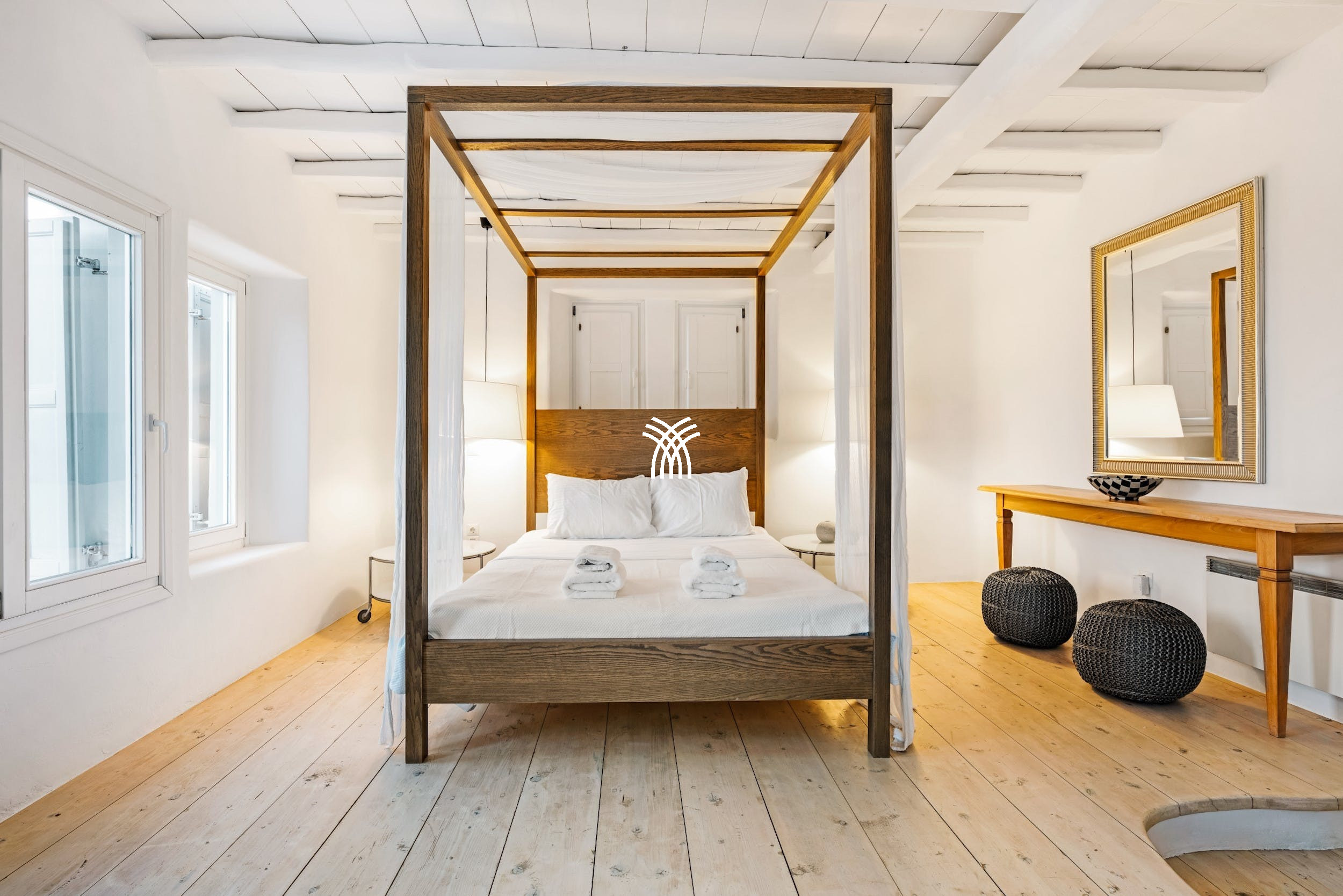 Outside, the villa boasts a private swimming pool, a barbecue area, and thoughtfully landscaped surroundings ideal for entertaining, relaxing, or enjoying the unforgettable Mykonian sunset. Whether you seek quiet moments or festive gatherings, this luxury villa rental in Greece promises a dream vacation filled with comfort, elegance, and unforgettable views.