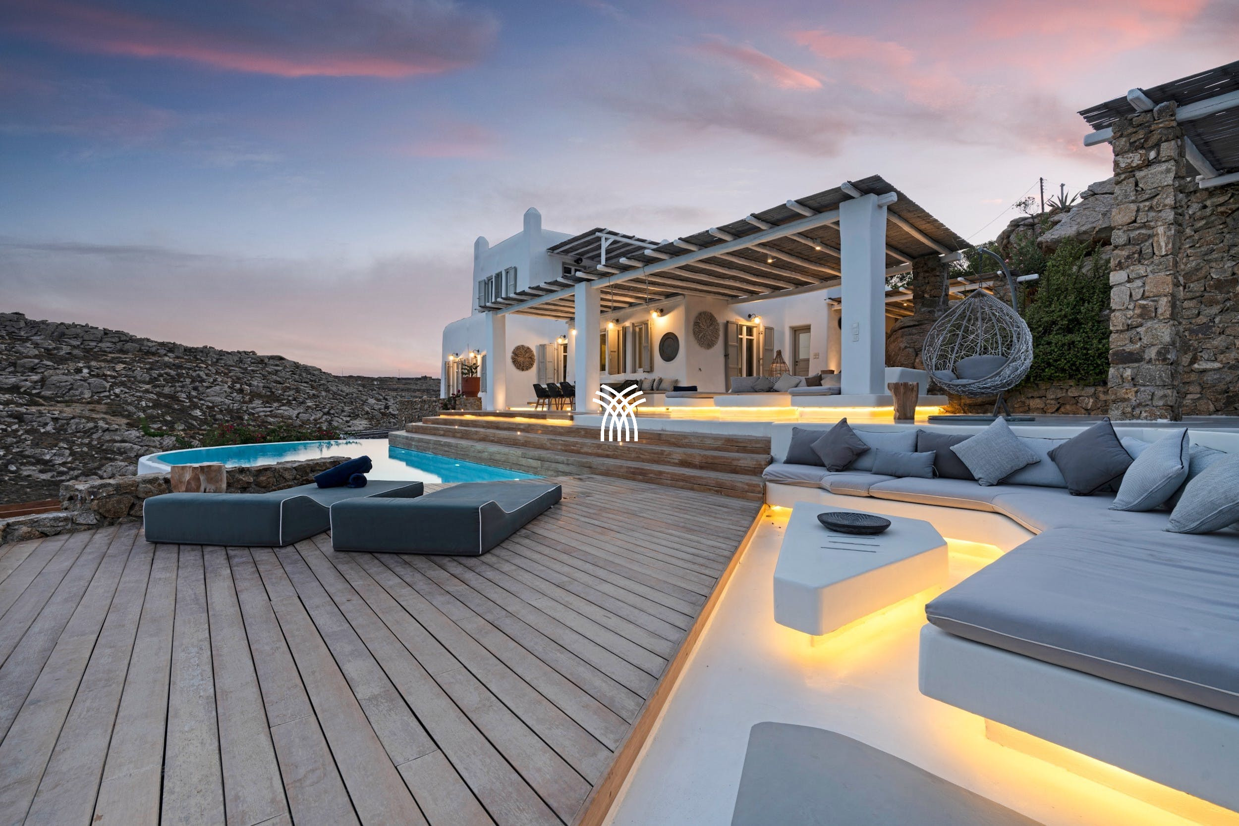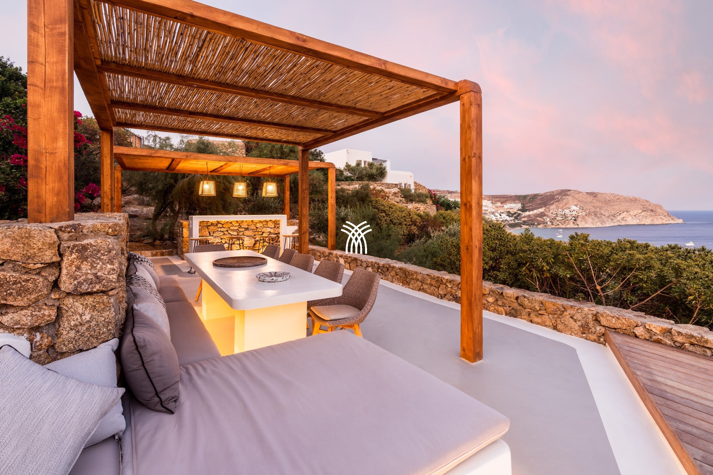 Immerse yourself in the essence of Mykonos with a luxury villa rental in Greece at the iconic Villa Goddess, a seafront haven that redefines elegance and exclusivity. Perched above the Aegean Sea in the prestigious Pouli area near Ornos, Villa Goddess offers panoramic views that stretch over the sparkling turquoise waters, the sacred island of Delos, and the Mykonian skyline—an experience of unparalleled beauty and serenity.
