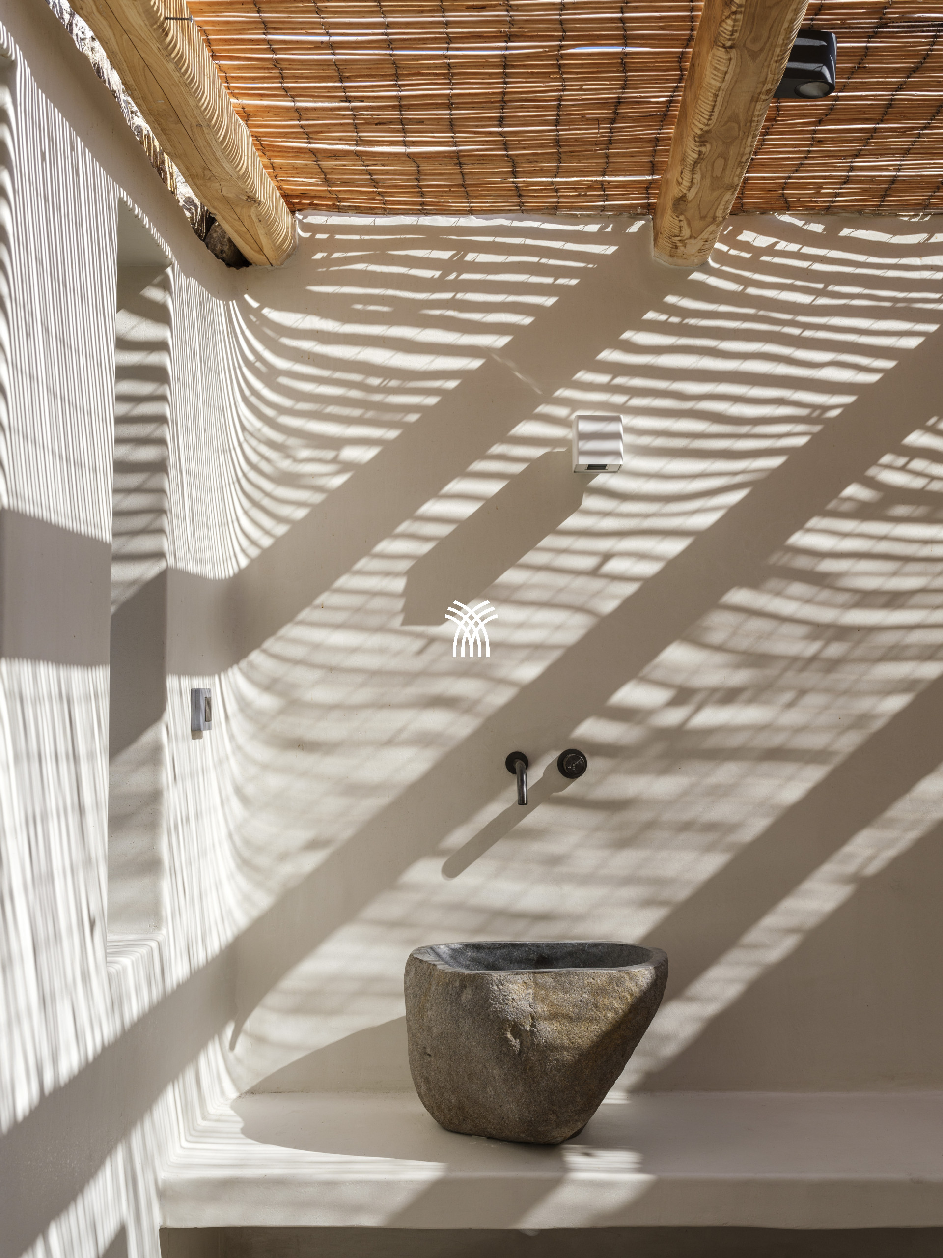 Villa Lavan is a masterpiece of design, inspired by the natural beauty of the Cyclades. Local stone, chestnut wood, and whitewashed finishes come together in perfect harmony, creating a refined yet bohemian ambiance that celebrates the spirit of Greek island living. The result is a sophisticated sanctuary where luxury meets soul.