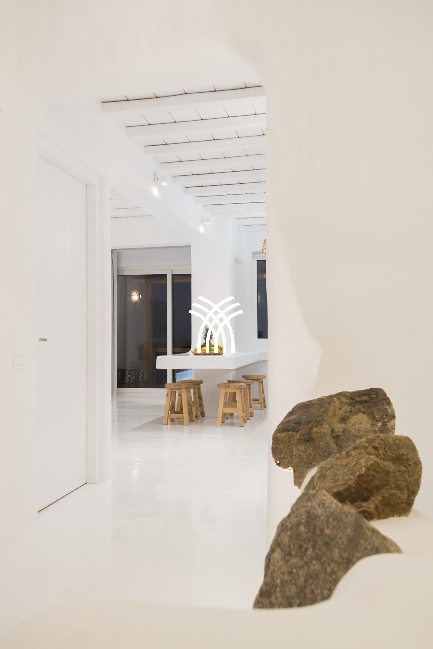 Villa Costa blends traditional Mykonian charm with modern sophistication, featuring authentic local rocks and artistic marble elements that enhance both the interior and exterior spaces. The open-plan living room and fully equipped kitchen boast panoramic views of the Aegean, creating a seamless connection between comfort and natural beauty. Every bedroom and the living room are outfitted with smart TVs and premium Cocomat mattresses for a restful and tech-savvy stay. Fully air-conditioned and equipped with high-speed Wi-Fi, Villa Costa delivers effortless luxury in one of Greece’s most sought-after destinations.