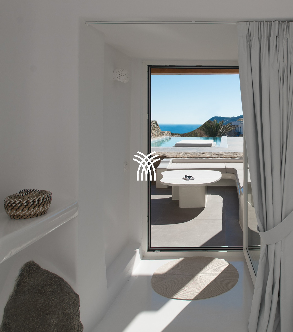 Villa Indigo is a haven of minimalist elegance, where every element has been thoughtfully crafted to celebrate the beauty of nature and the art of contemporary living. The open-plan layout invites sunlight to stream through expansive glass doors, offering uninterrupted vistas of the shimmering Aegean Sea. Warm, earthy tones, premium finishes, and curated interiors set a tone of understated luxury and tranquil ambiance.