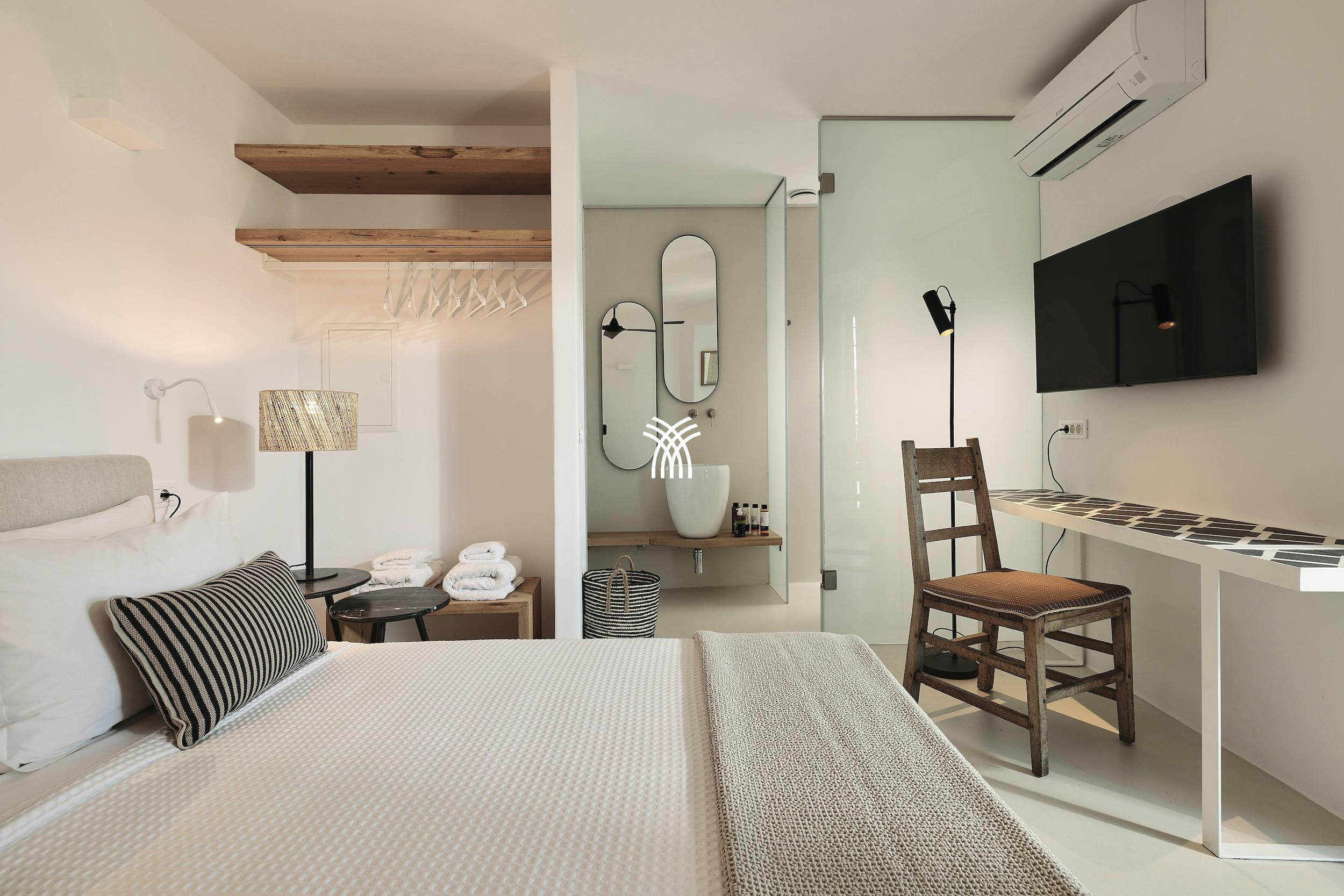 Villa Pergisos features seven beautifully designed bedrooms and eight modern bathrooms, making it the perfect retreat for families or groups seeking privacy and comfort. The villa is fully air conditioned and comes equipped with everything needed for a luxurious stay, including a private swimming pool, a fully equipped kitchen, a stylish outdoor sound system, and a dedicated BBQ area for unforgettable meals under the Mykonos sky.