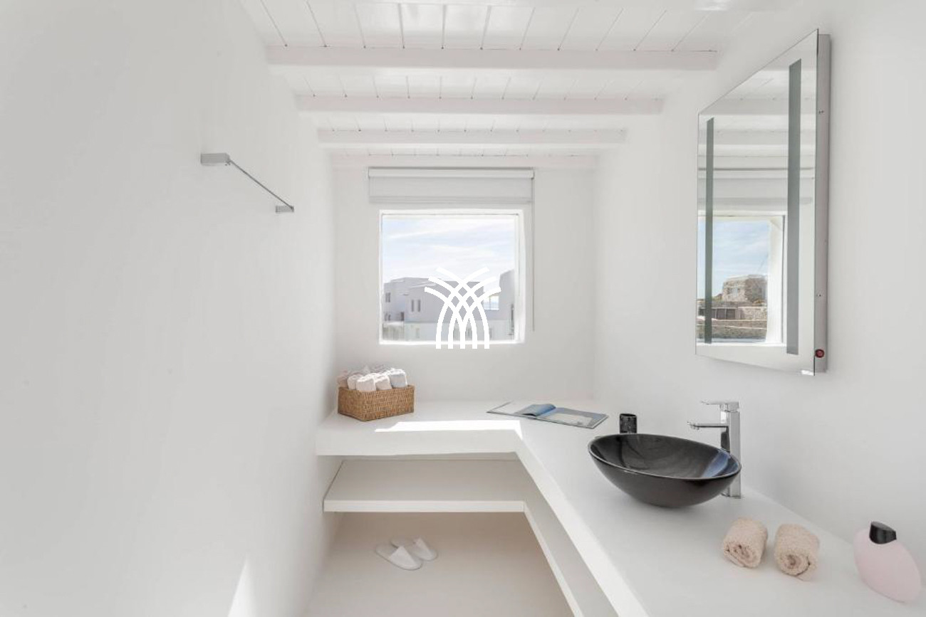 Outside, the villa boasts a private swimming pool, a barbecue area, and thoughtfully landscaped surroundings ideal for entertaining, relaxing, or enjoying the unforgettable Mykonian sunset. Whether you seek quiet moments or festive gatherings, this luxury villa rental in Greece promises a dream vacation filled with comfort, elegance, and unforgettable views.