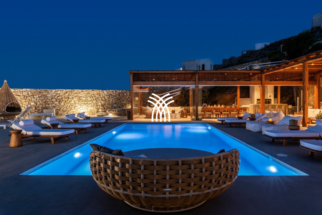 Experience unmatched elegance and breathtaking scenery with a Luxury Villa Rental Greece at Villa Lavan, an extraordinary private retreat perched in the exclusive Kanalia Ornos area of Mykonos. With an east-facing orientation, this magnificent estate offers panoramic sea and sunset views that stretch across Mykonos Town and the bustling Mykonos port, creating the perfect setting for an unforgettable Greek island escape.