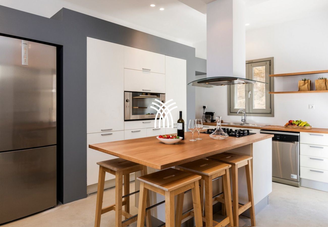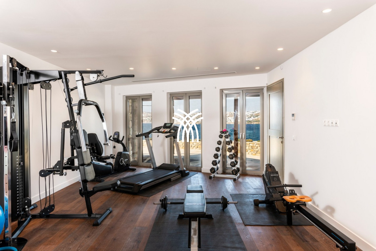 This luxury villa rental in Greece is fully air conditioned and equipped with state of the art appliances, including two refrigerators, freezers, ovens, and stoves. The villa also offers a full security system with exterior cameras, a dedicated staff room for on site support, and large indoor and outdoor spaces for entertaining, relaxation, and enjoying the Mykonos sun. Perfect for large groups or families seeking an exceptional and private retreat, this villa defines island luxury at its finest.