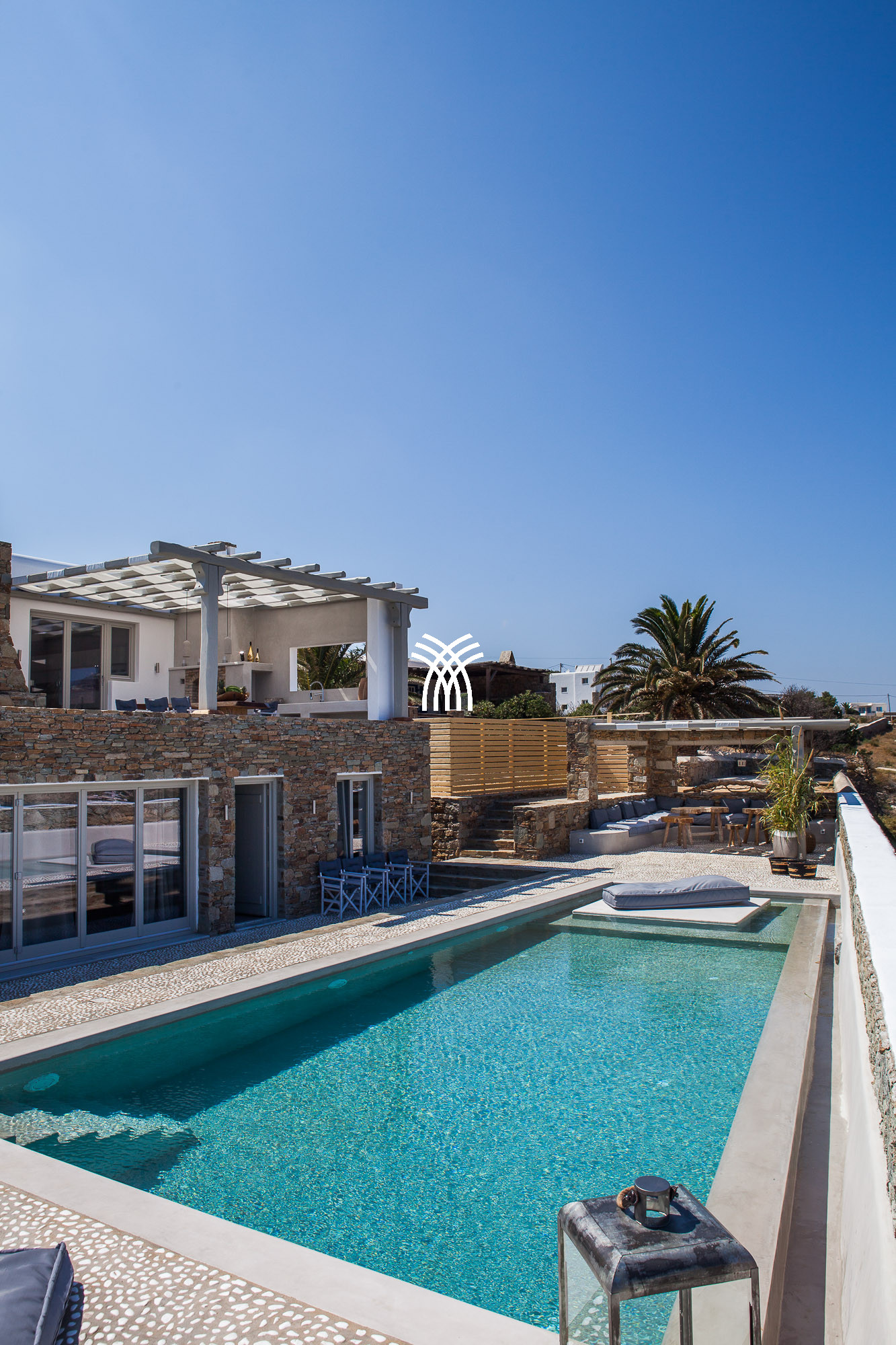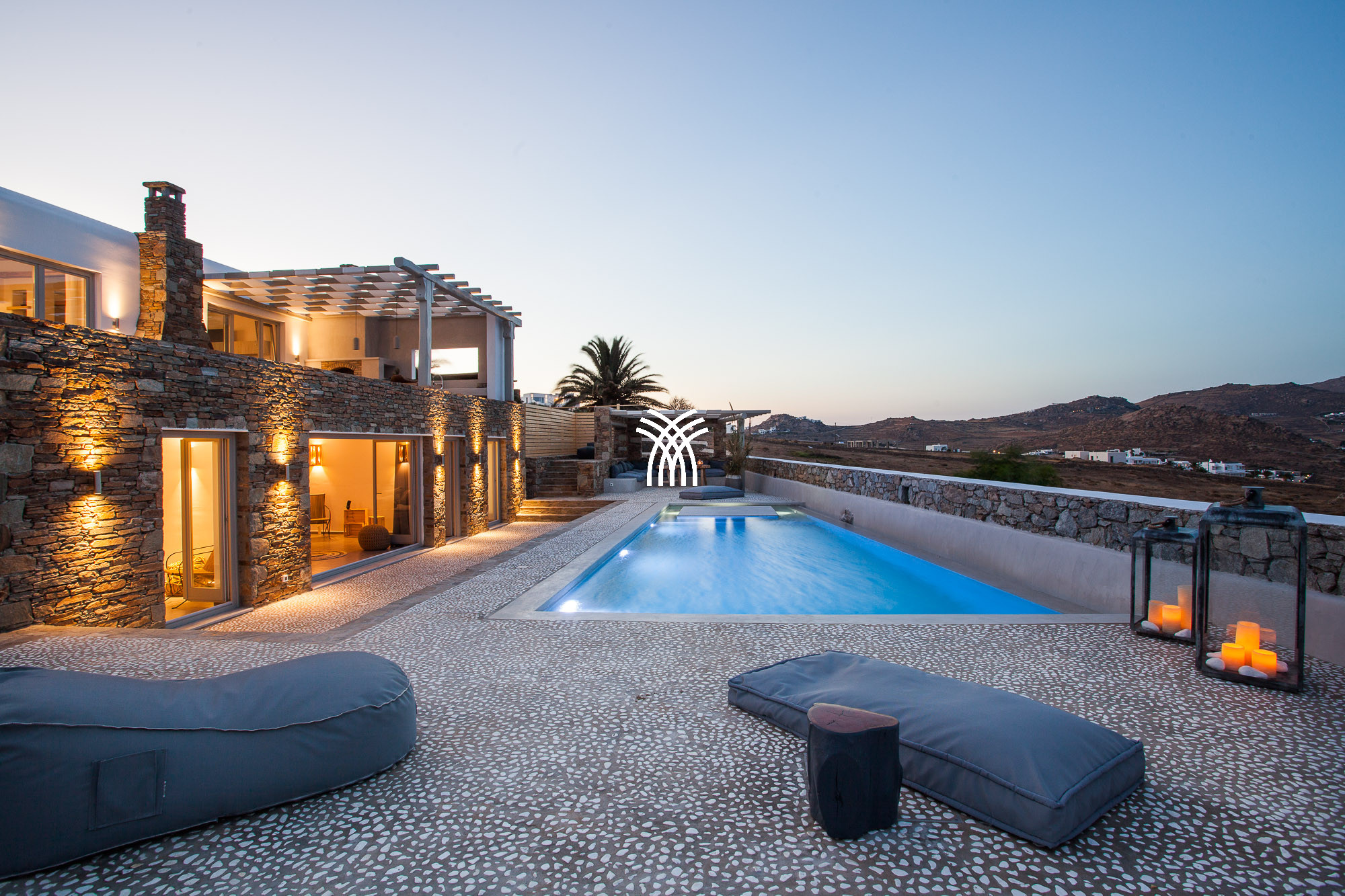Embrace the timeless beauty of Mykonos with a luxury villa rental in Greece at this refined hilltop retreat, perched above Pouli in the exclusive Kanalia area. Offering sweeping sunset views over the Aegean Sea and the sacred island of Delos, this elegant villa blends Cycladic charm with modern sophistication in one of the island’s most sought-after locations.