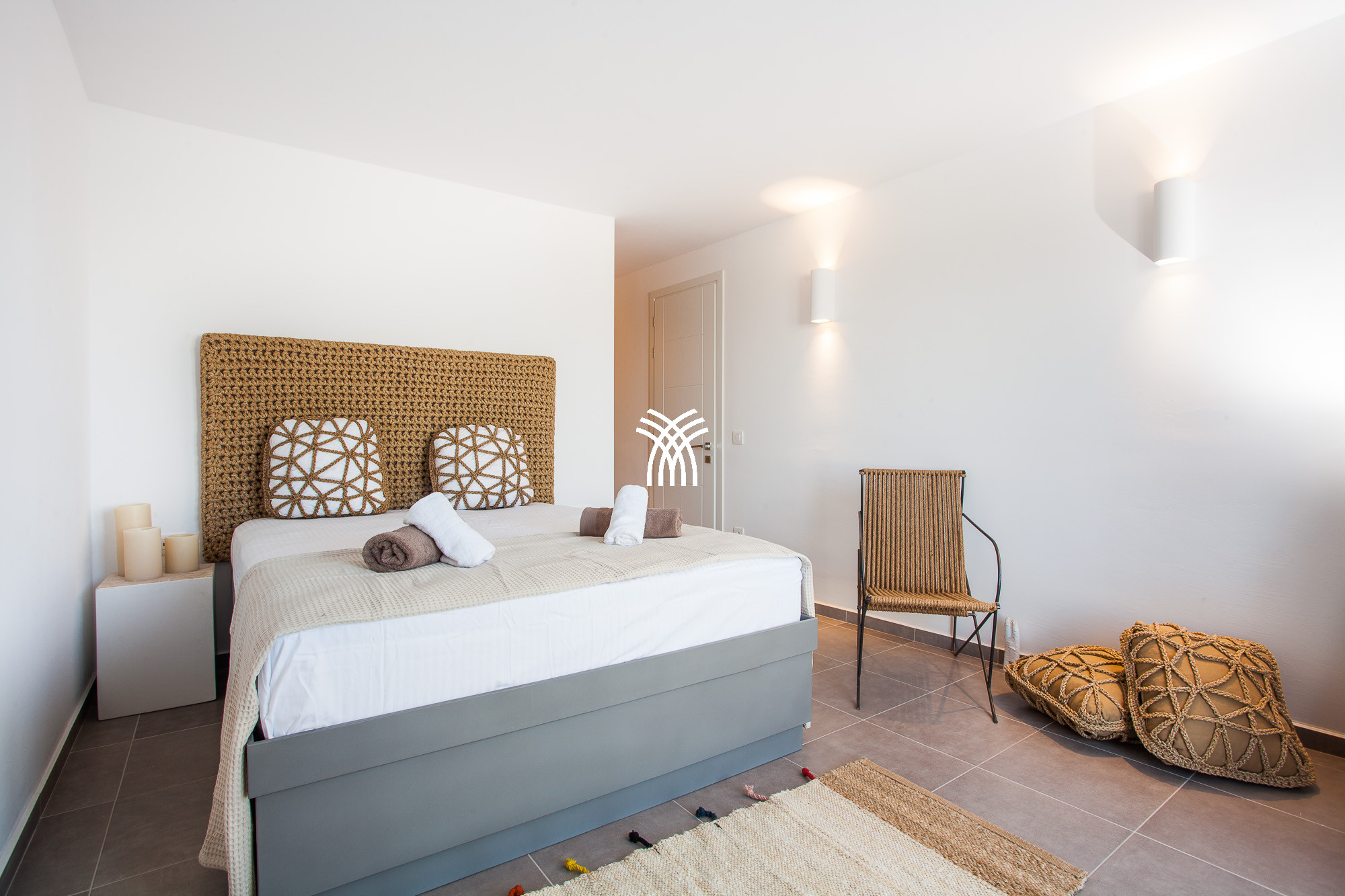 Designed to harmonize indoor and outdoor living, this four-bedroom villa features elegant open spaces infused with natural materials such as local stone and handcrafted wood elements. The interiors are tastefully curated with high-end furnishings and designer pieces, combining contemporary aesthetics with timeless Greek influences to create a serene yet luxurious environment.
