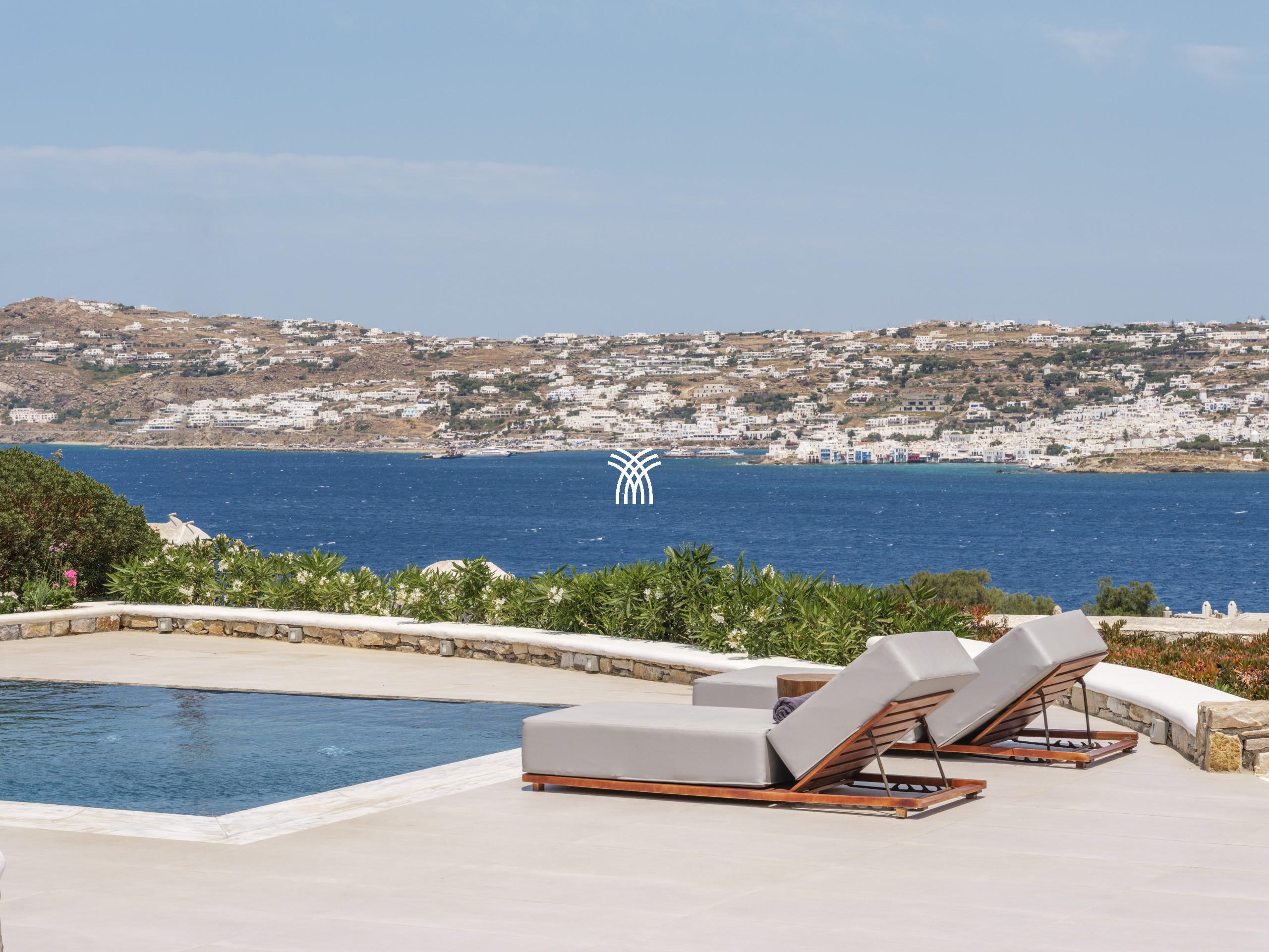 Villa Oasis is a refined hillside sanctuary set in the peaceful Kanalia area, offering an exceptional escape for travelers seeking a distinguished luxury villa rental Mykonos and an unforgettable stay within the timeless beauty of Greece. Overlooking the endless blue of the Aegean Sea and ideally positioned above the coast, this elegant seven-bedroom residence combines privacy, panoramic scenery, and sophisticated island living just moments from the vibrant energy of Mykonos.