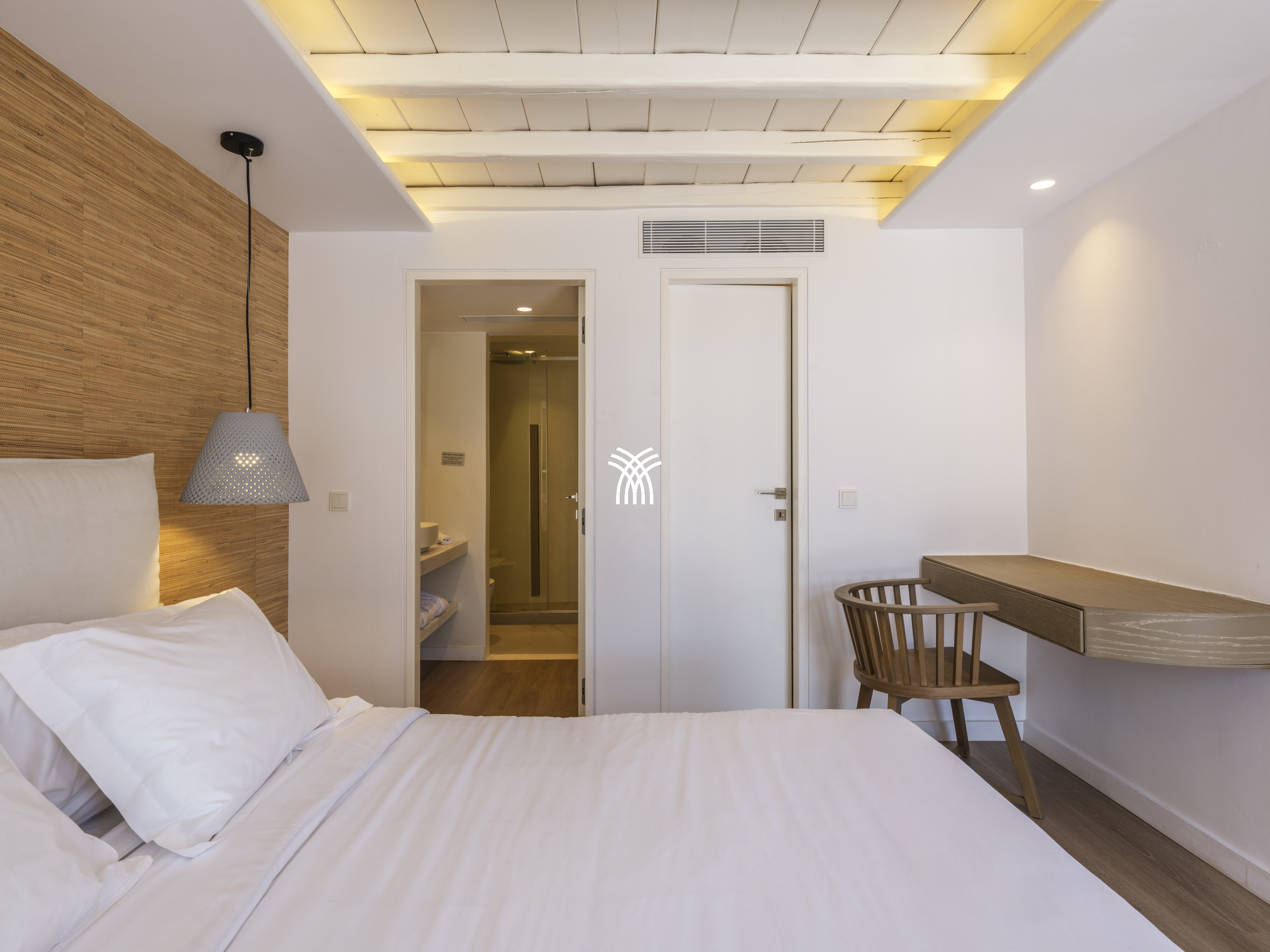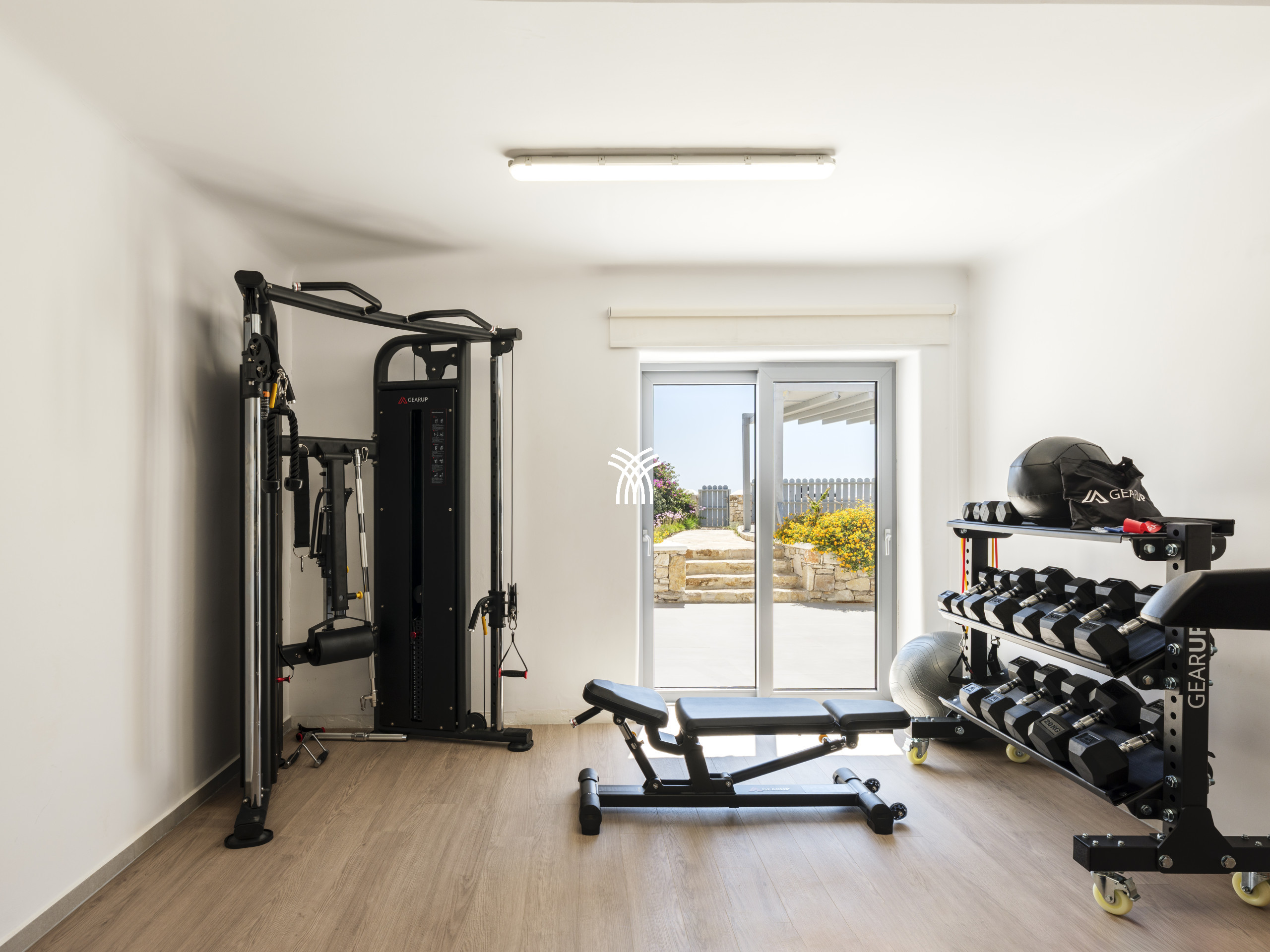 Villa Pergisos features seven beautifully designed bedrooms and eight modern bathrooms, making it the perfect retreat for families or groups seeking privacy and comfort. The villa is fully air conditioned and comes equipped with everything needed for a luxurious stay, including a private swimming pool, a fully equipped kitchen, a stylish outdoor sound system, and a dedicated BBQ area for unforgettable meals under the Mykonos sky.