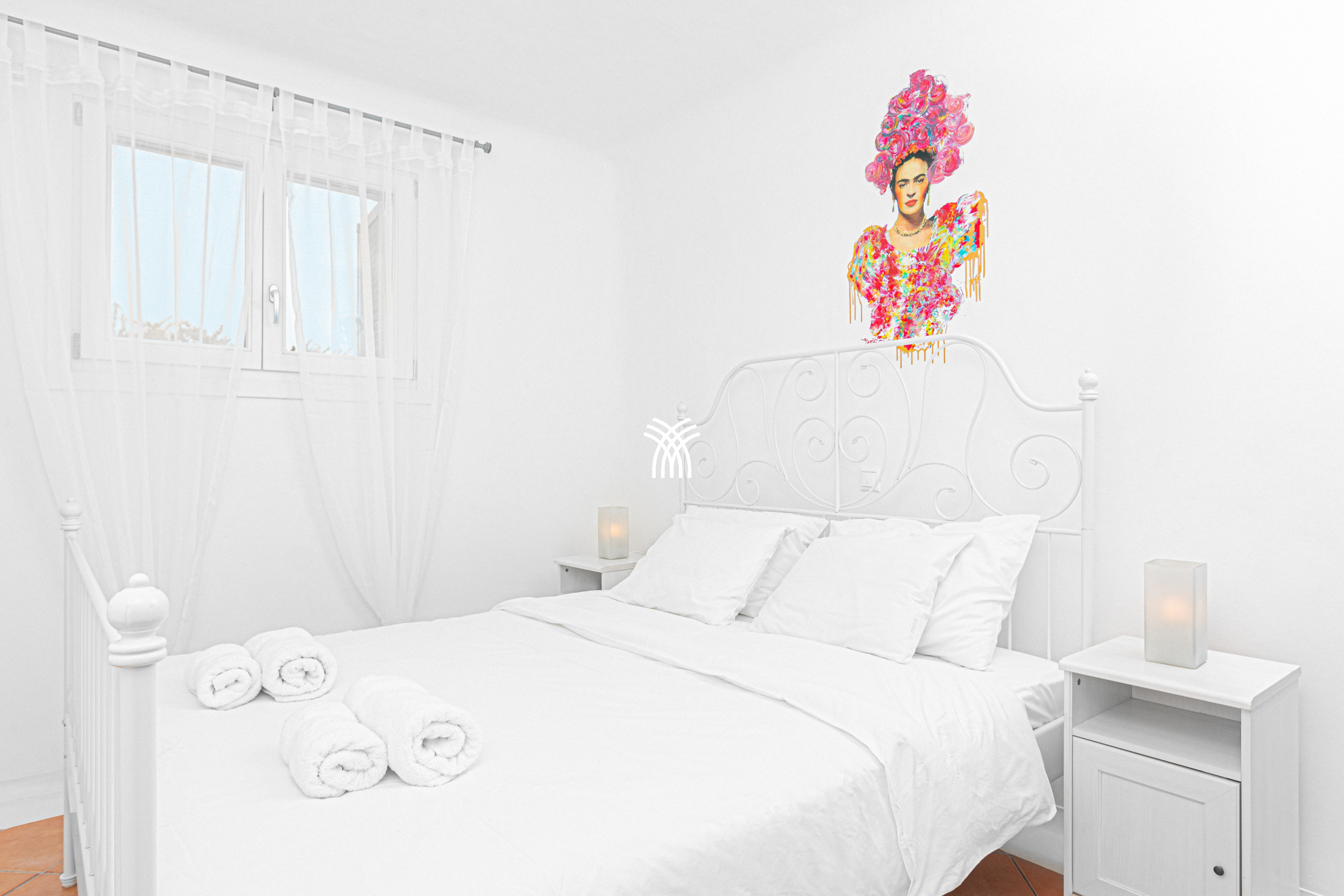 This beautifully furnished villa features four spacious bedrooms with queen-size beds and four modern bathrooms with walk-in showers. Designed to accommodate up to eight guests comfortably, the layout includes one master bedroom on the upper level with a large open terrace offering magnificent sea and mountain views, while the lower level includes three additional bedrooms and two bathrooms.