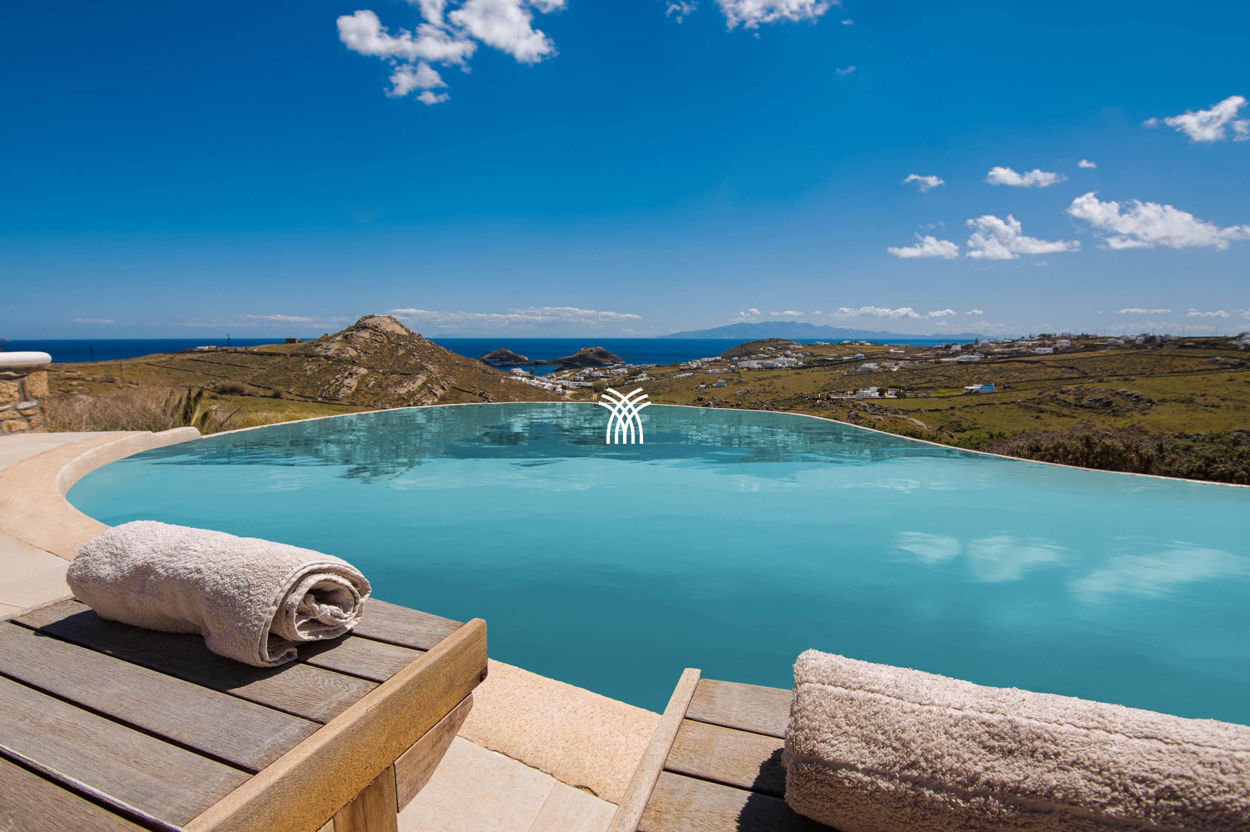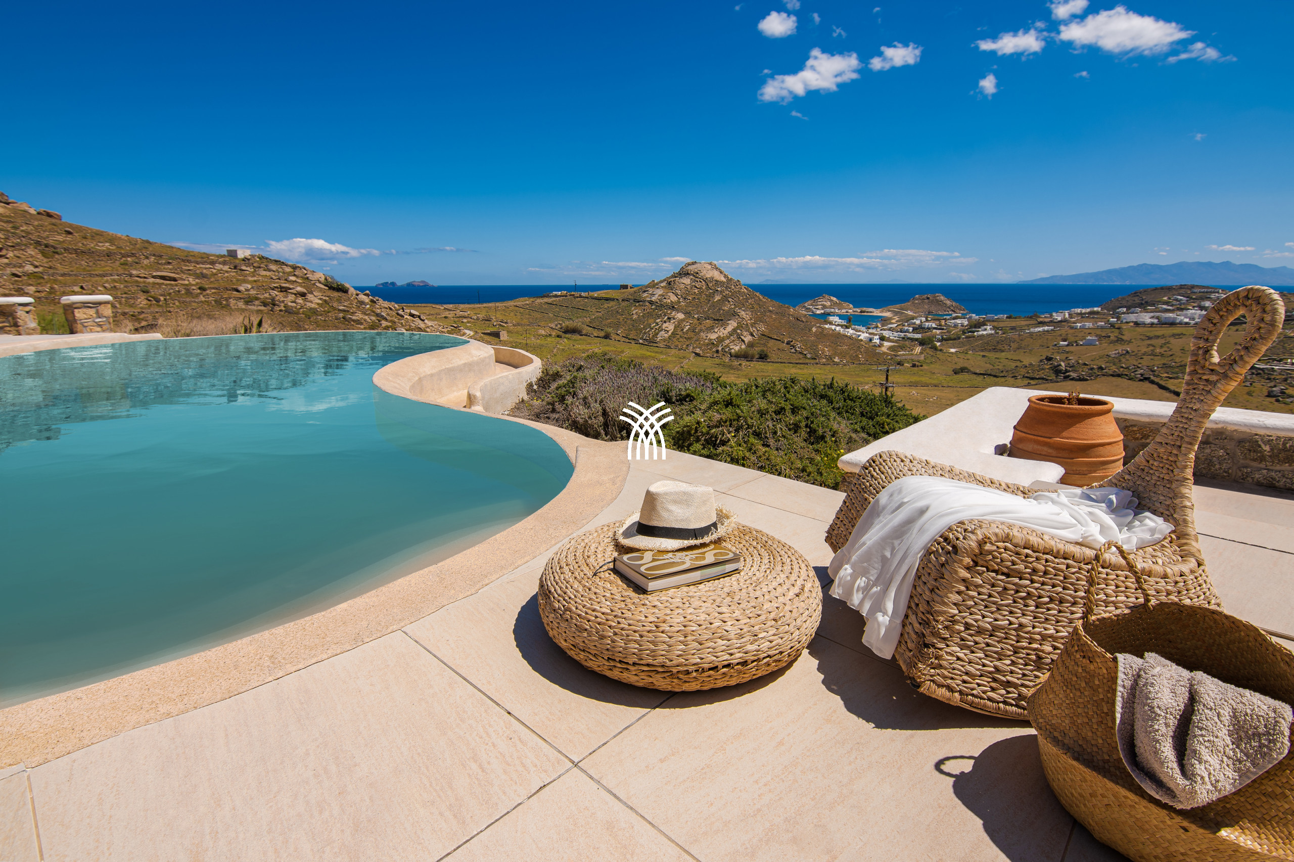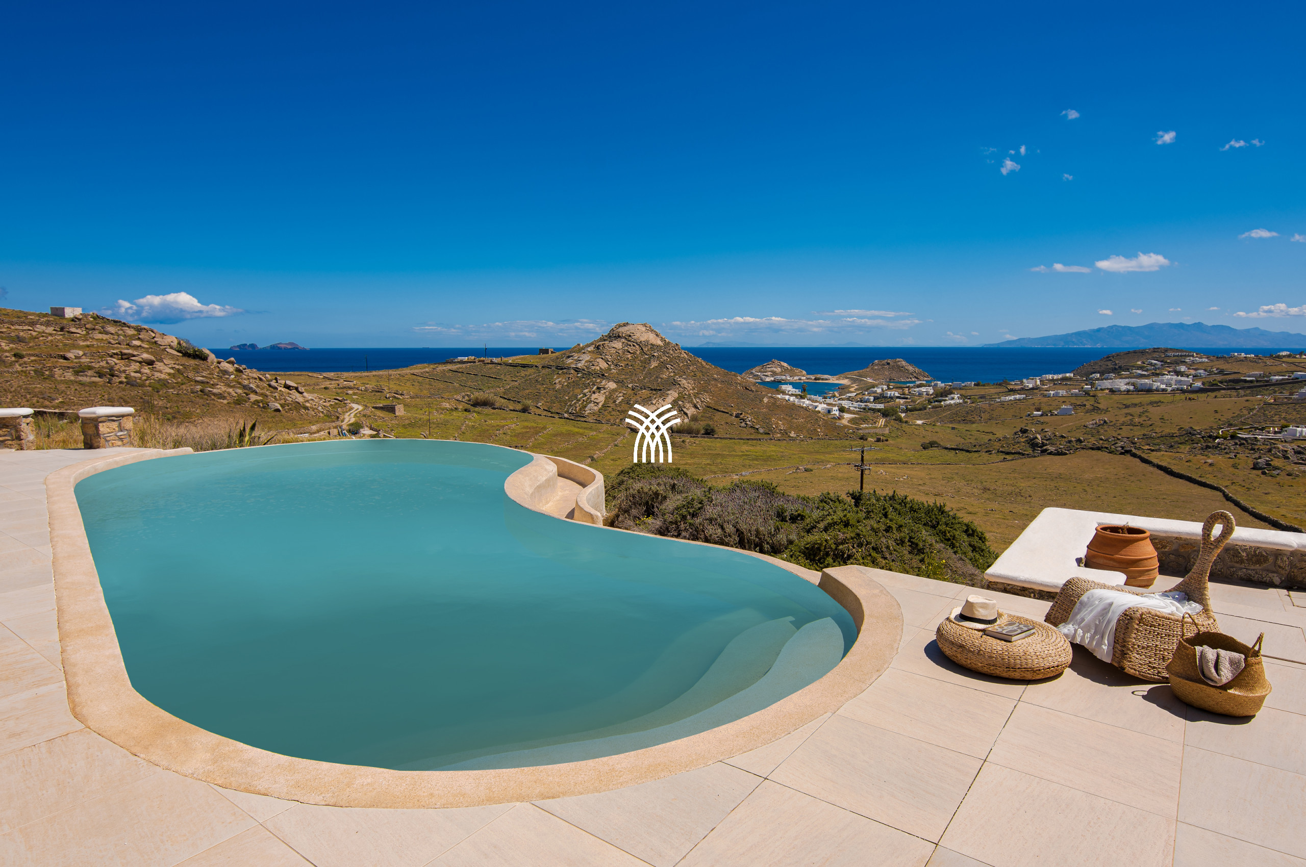 Embrace the timeless beauty of Mykonos with a luxury villa rental in Greece at this refined hilltop retreat, perched above Pouli in the exclusive Kanalia area. Offering sweeping sunset views over the Aegean Sea and the sacred island of Delos, this elegant villa blends Cycladic charm with modern sophistication in one of the island’s most sought-after locations.