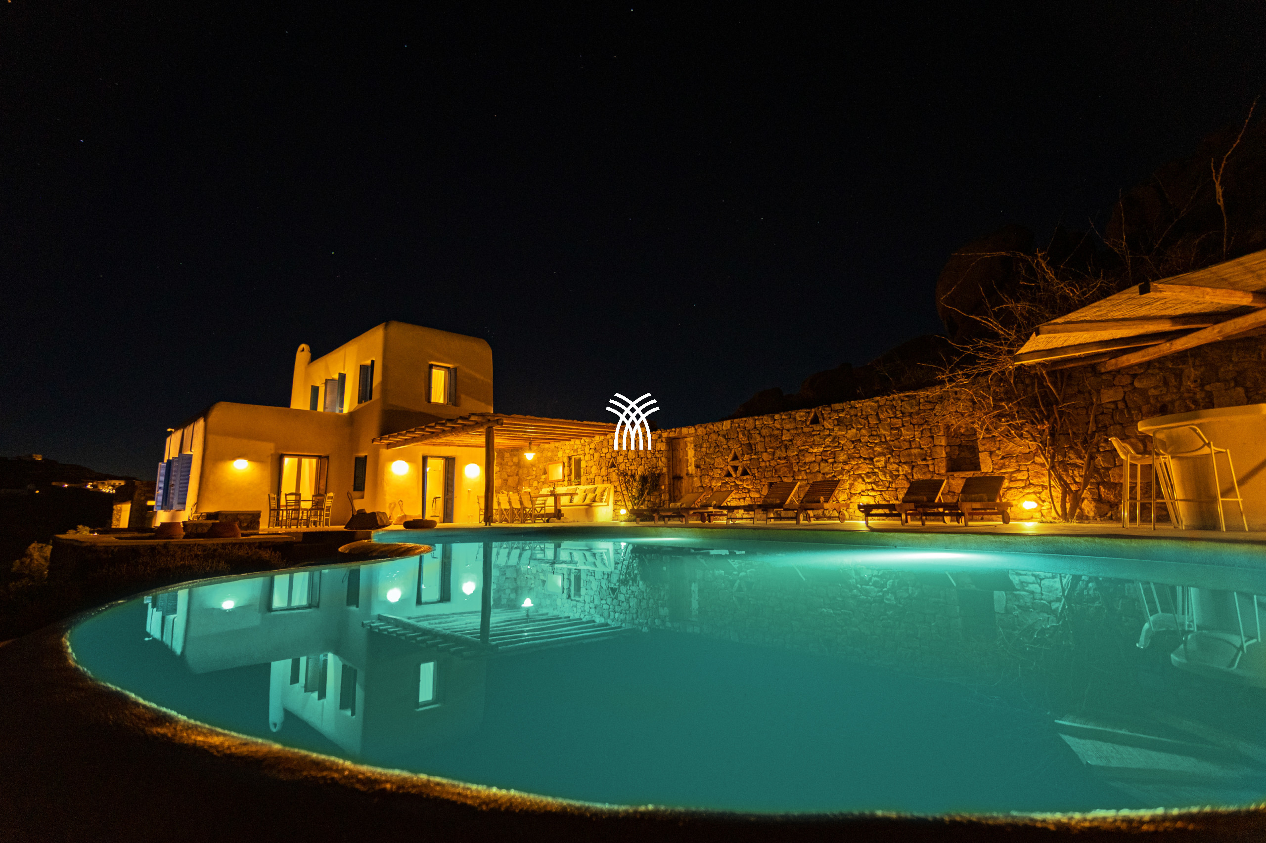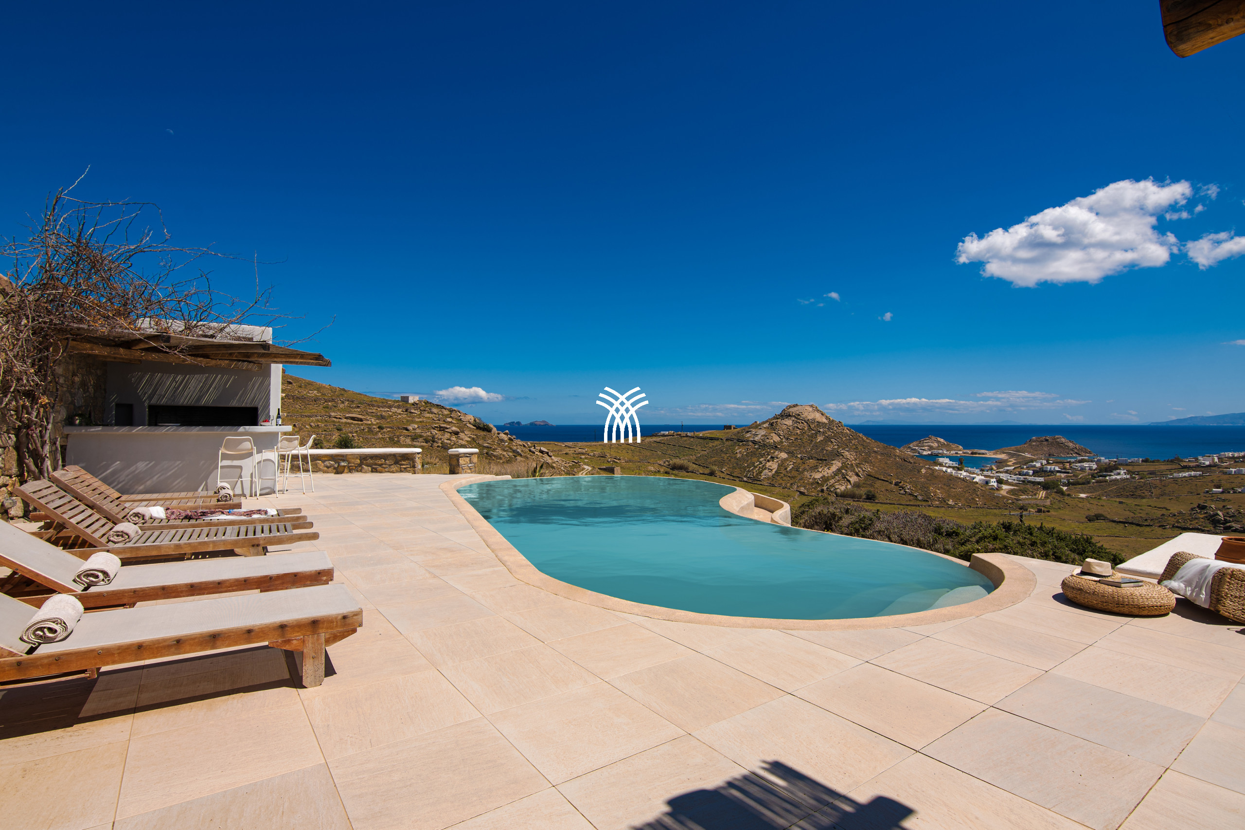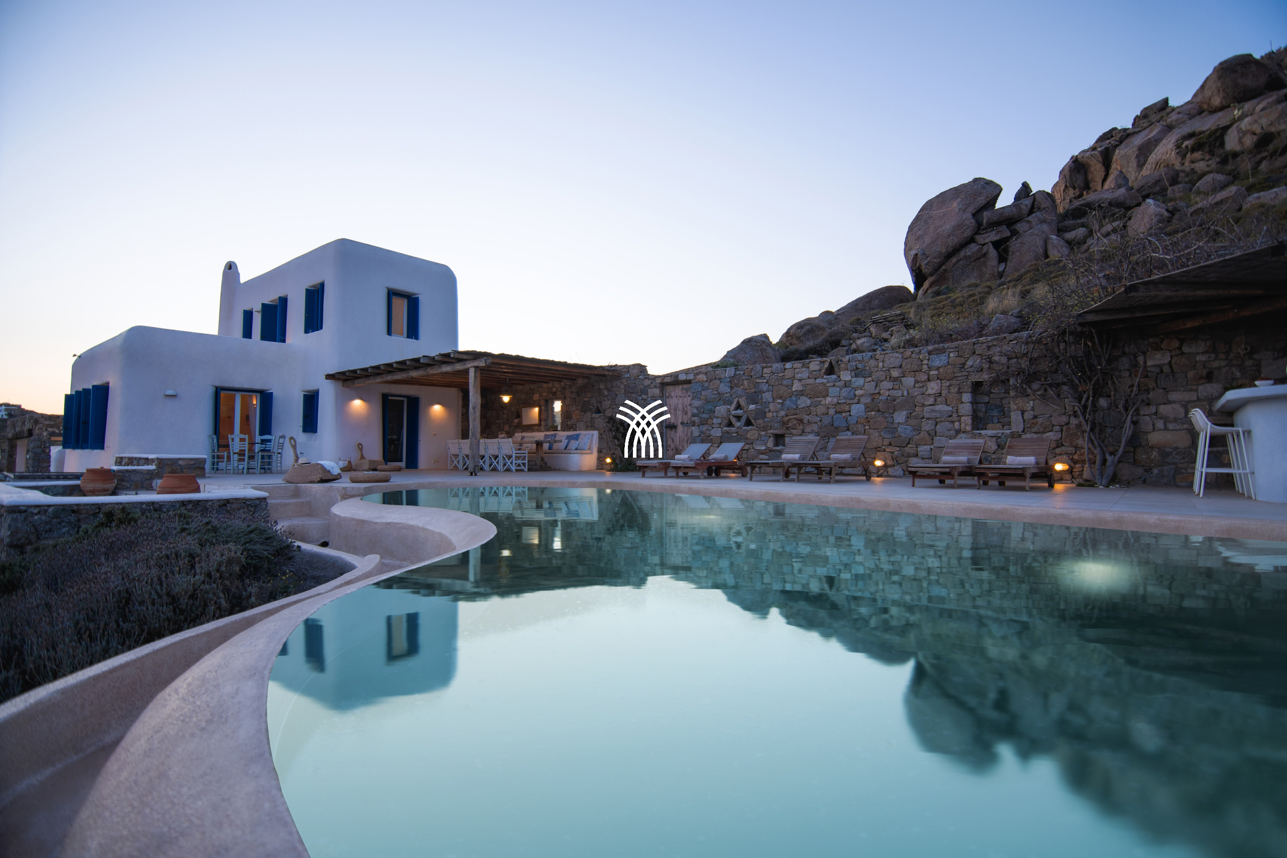 Embrace the timeless beauty of Mykonos with a luxury villa rental in Greece at this refined hilltop retreat, perched above Pouli in the exclusive Kanalia area. Offering sweeping sunset views over the Aegean Sea and the sacred island of Delos, this elegant villa blends Cycladic charm with modern sophistication in one of the island’s most sought-after locations.