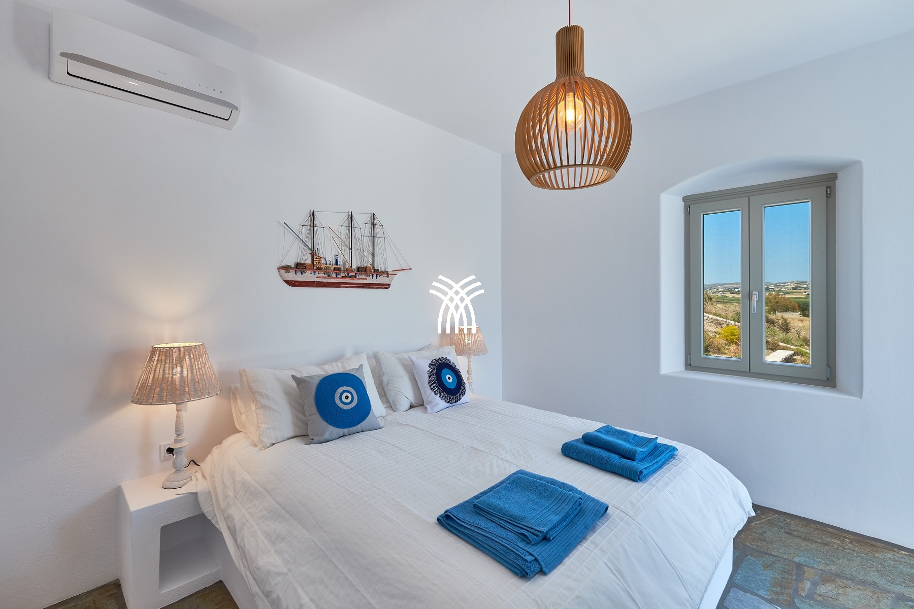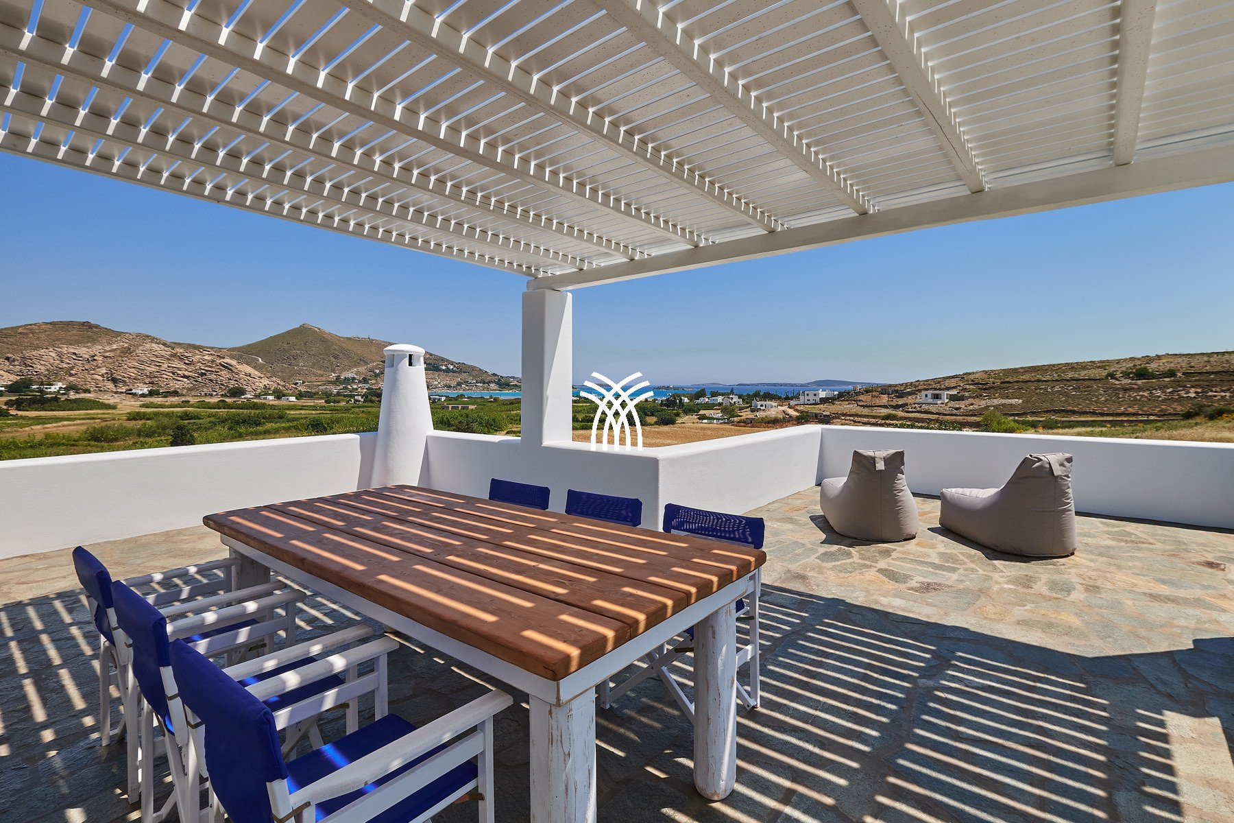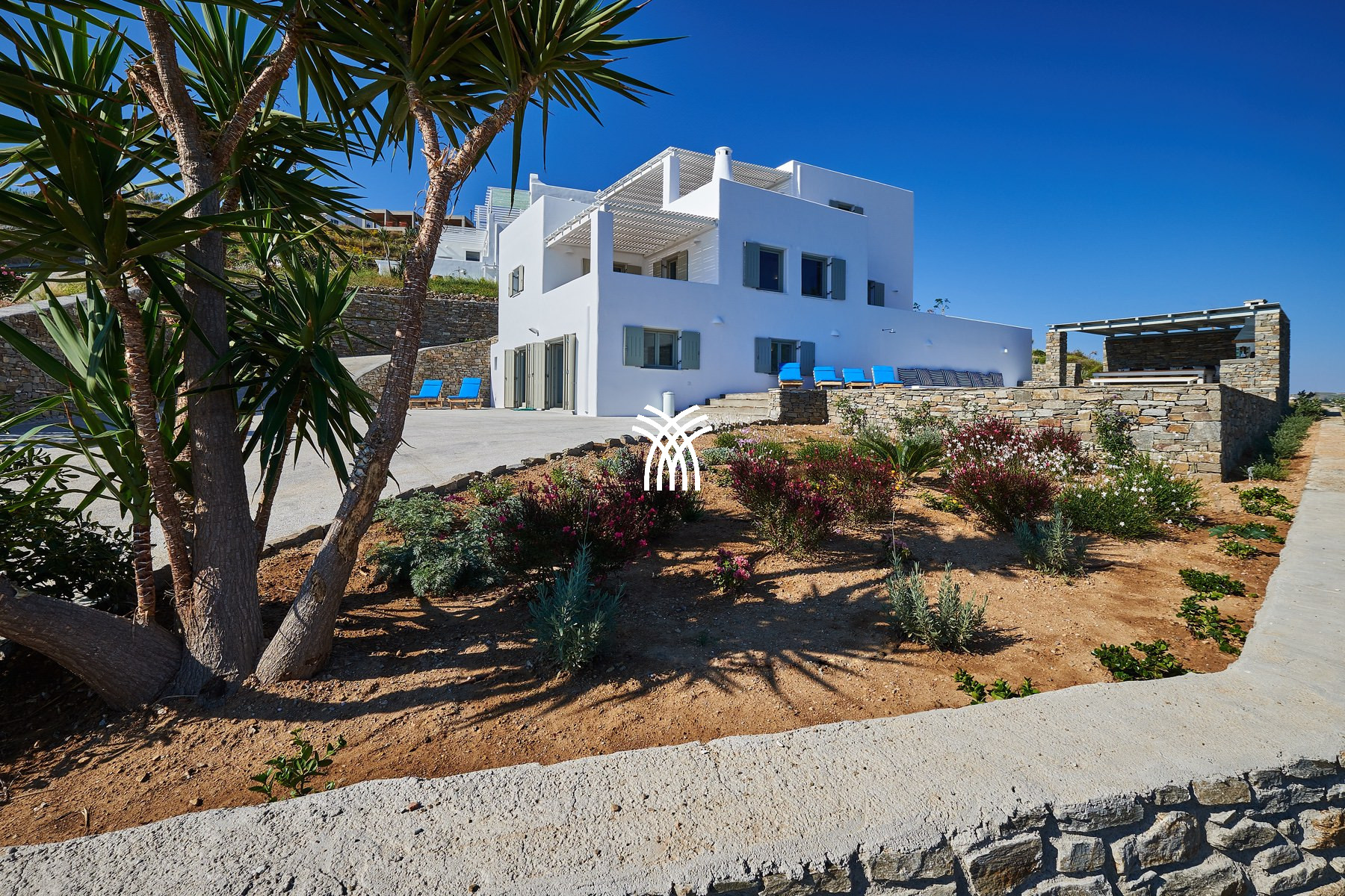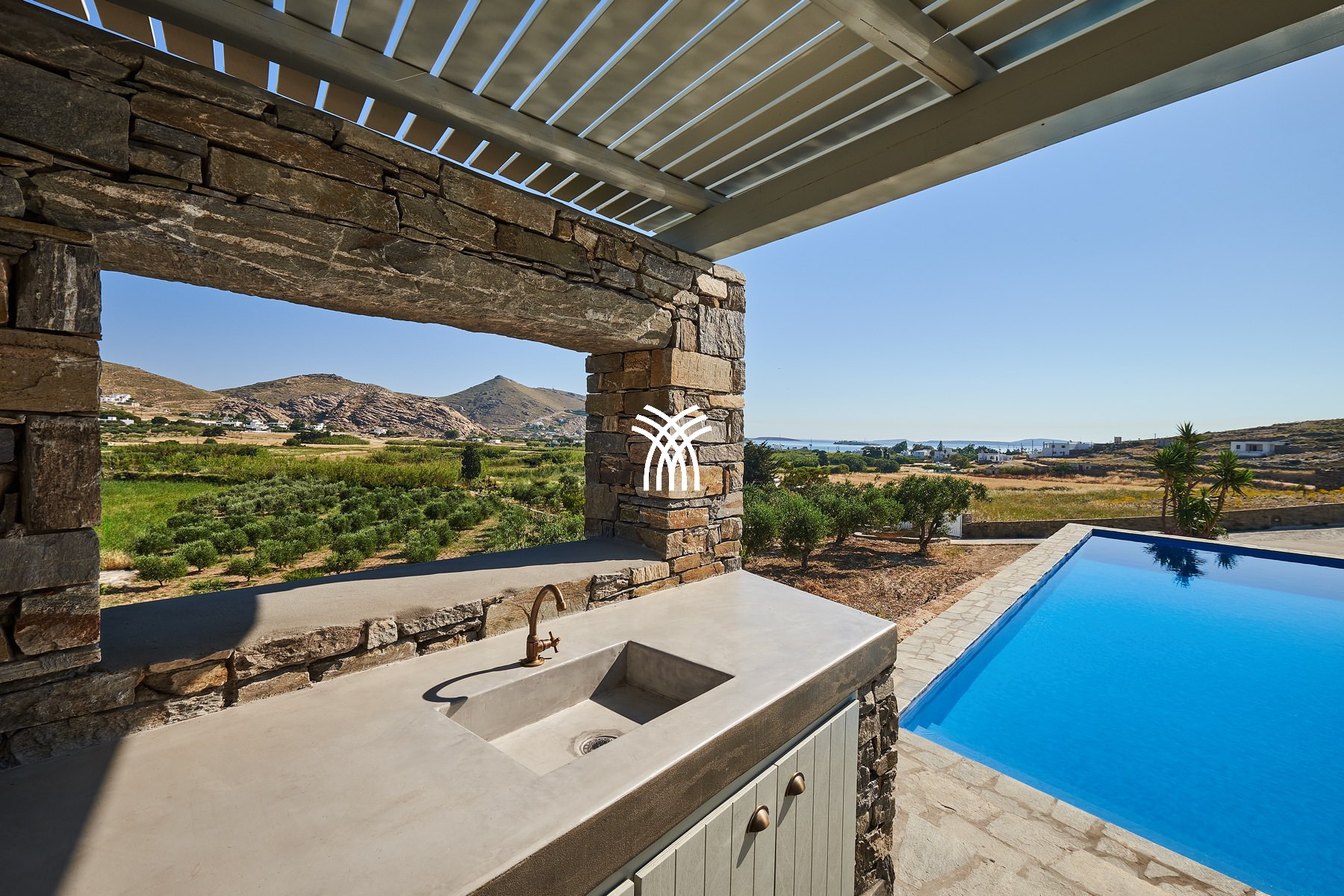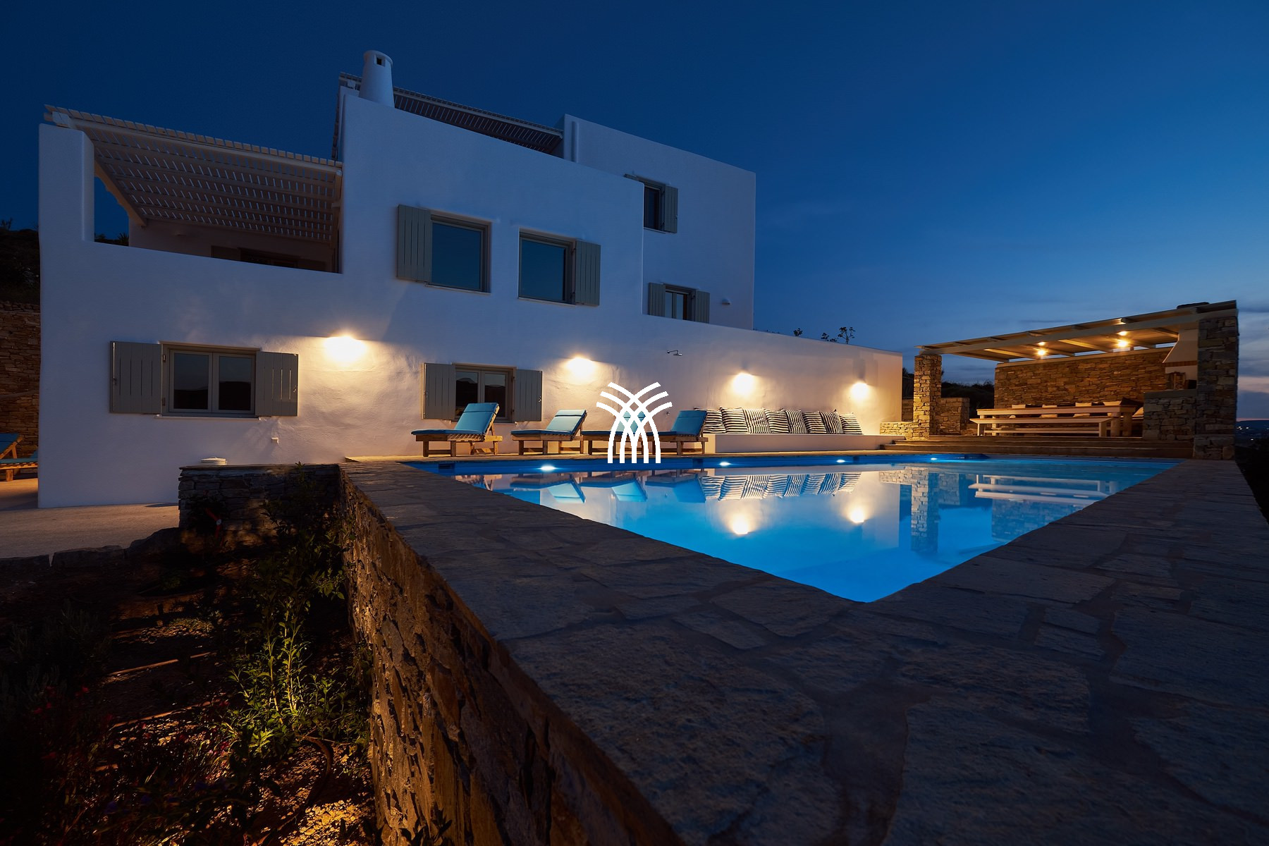 Nestled in the serene landscape of Kamares, just a short drive from the vibrant charm of Naoussa, Villa Okyalos emerges as a refined contemporary retreat where minimalist architecture meets the timeless beauty of the Cyclades, offering an exceptional experience of luxury villa rental Greece and luxury villa rental Paros. Designed with clean lines and elegant simplicity, the villa opens onto breathtaking panoramic views that embrace the surrounding hills and the Aegean horizon, creating an atmosphere of calm sophistication and effortless comfort.