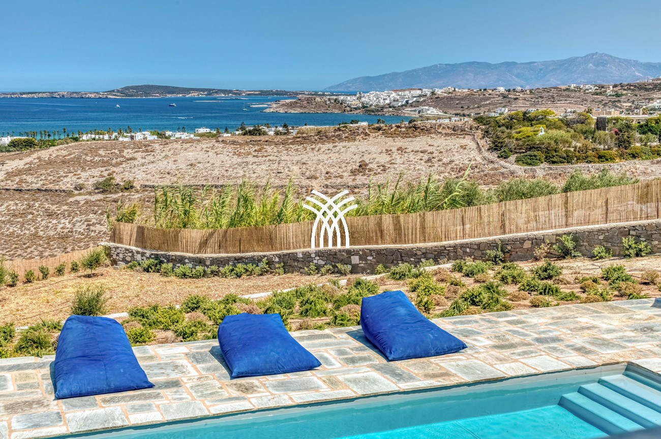 Nestled in the serene landscape of Kamares, just a short drive from the vibrant charm of Naoussa, Villa Okyalos emerges as a refined contemporary retreat where minimalist architecture meets the timeless beauty of the Cyclades, offering an exceptional experience of luxury villa rental Greece and luxury villa rental Paros. Designed with clean lines and elegant simplicity, the villa opens onto breathtaking panoramic views that embrace the surrounding hills and the Aegean horizon, creating an atmosphere of calm sophistication and effortless comfort.
