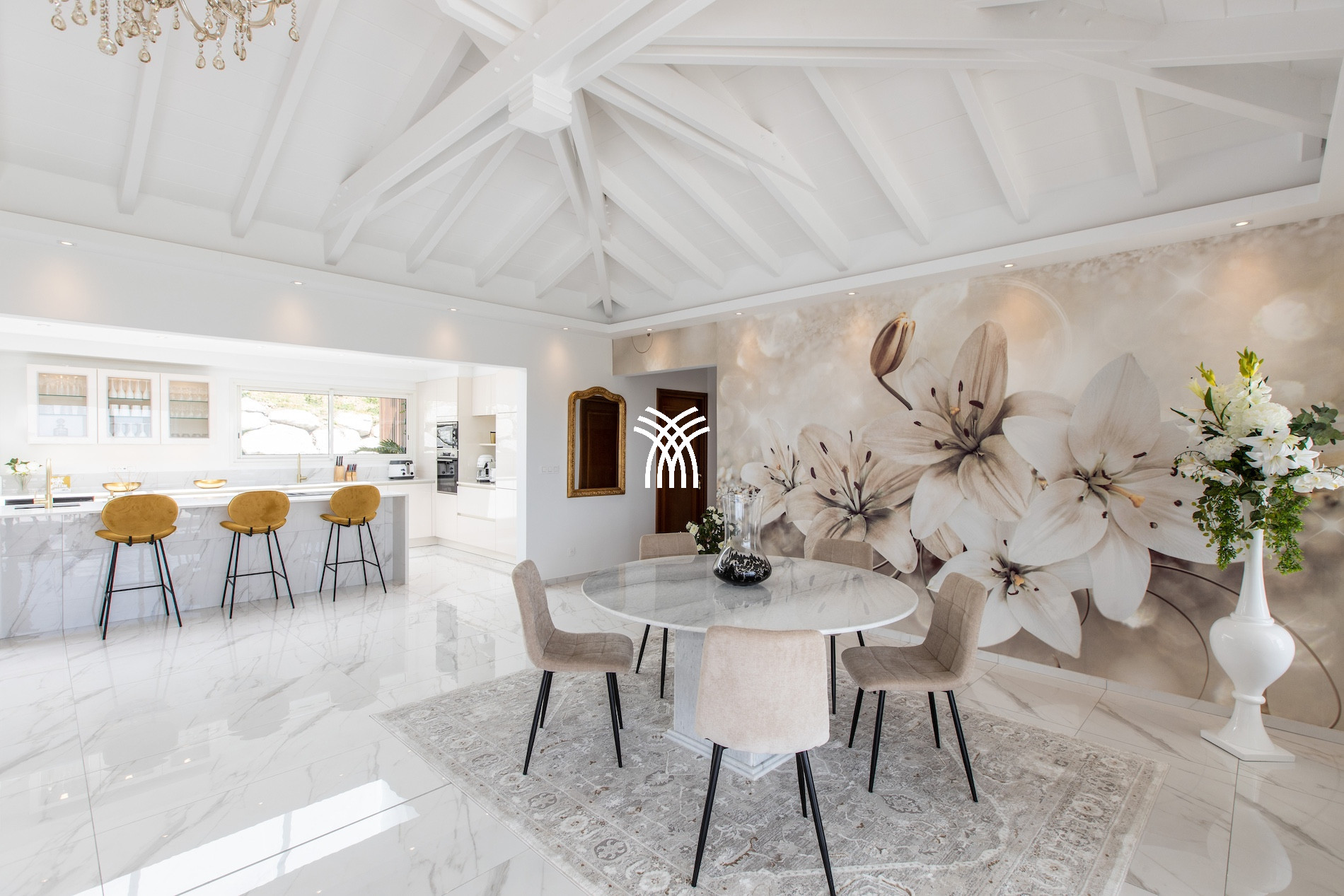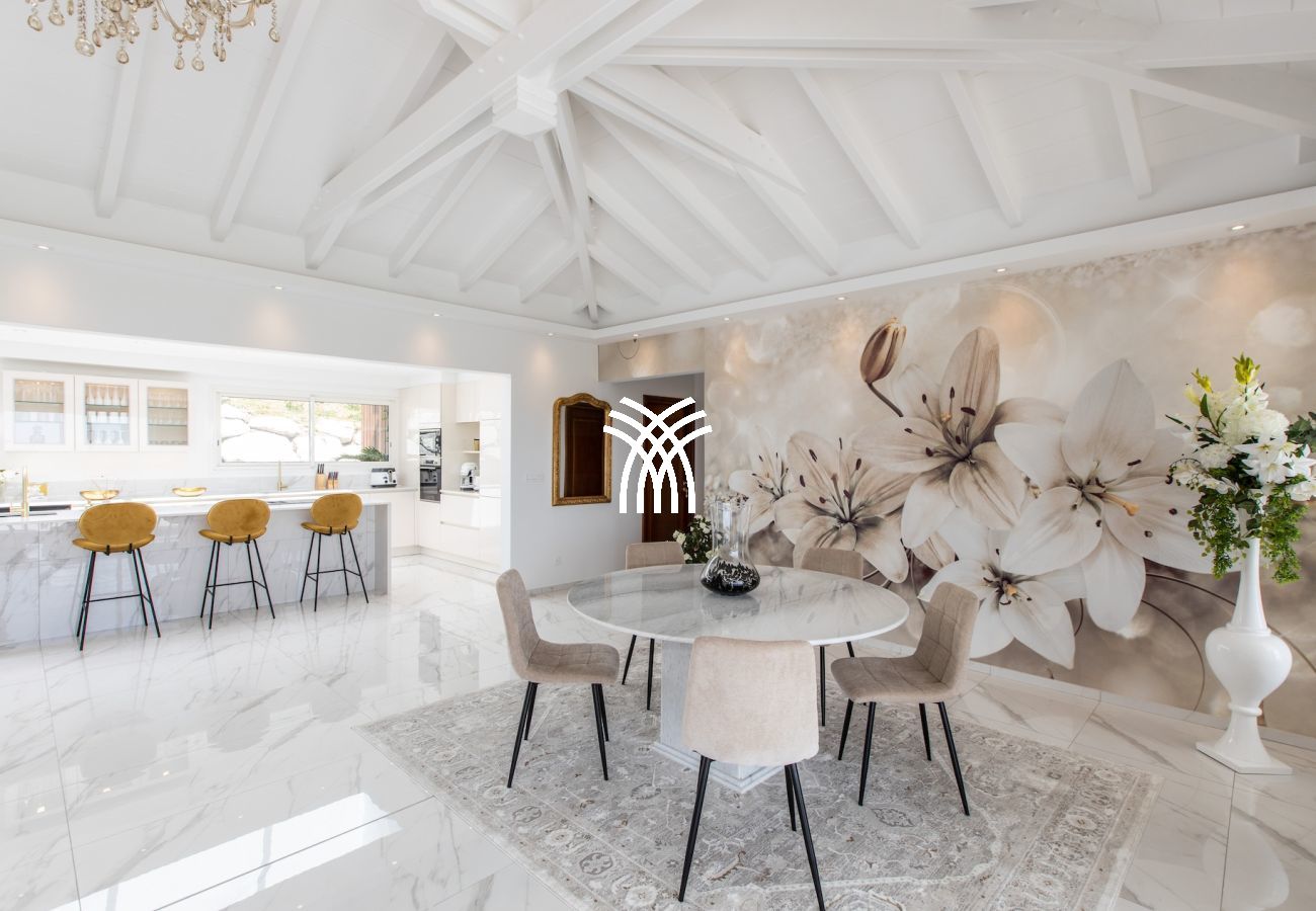 Harmoniously blending classic French style and modernity, the Villa Fleurs de Lys captivates with its sophisticated atmosphere and tastefully decorated spaces. Contemporary art pieces and high-end finishes give this prestigious villa a unique and warm ambiance.