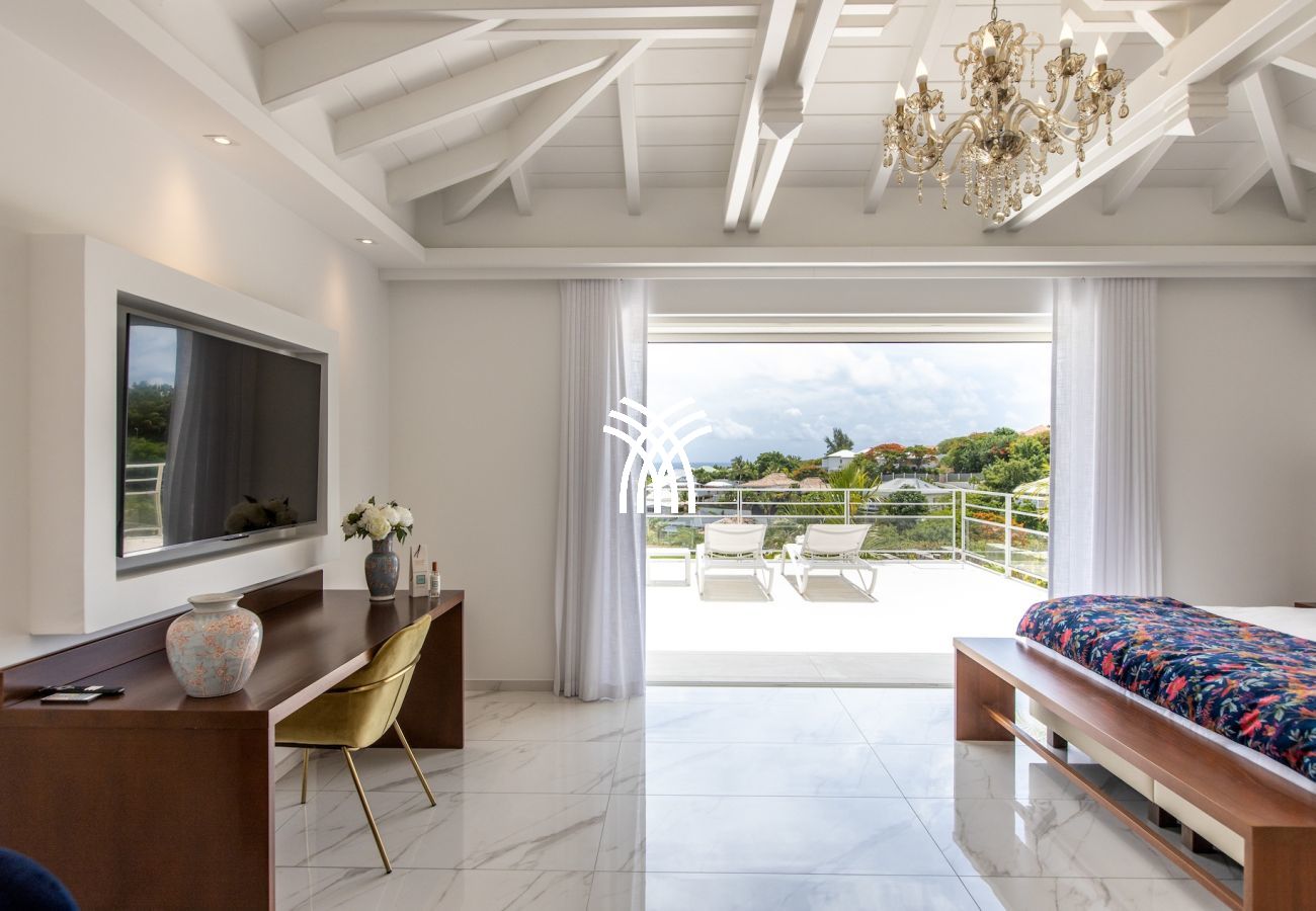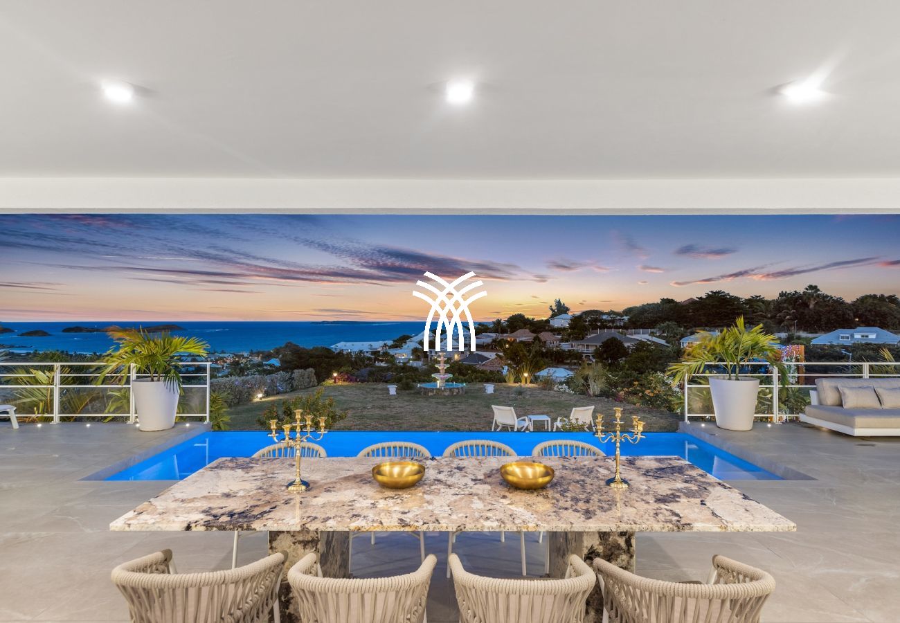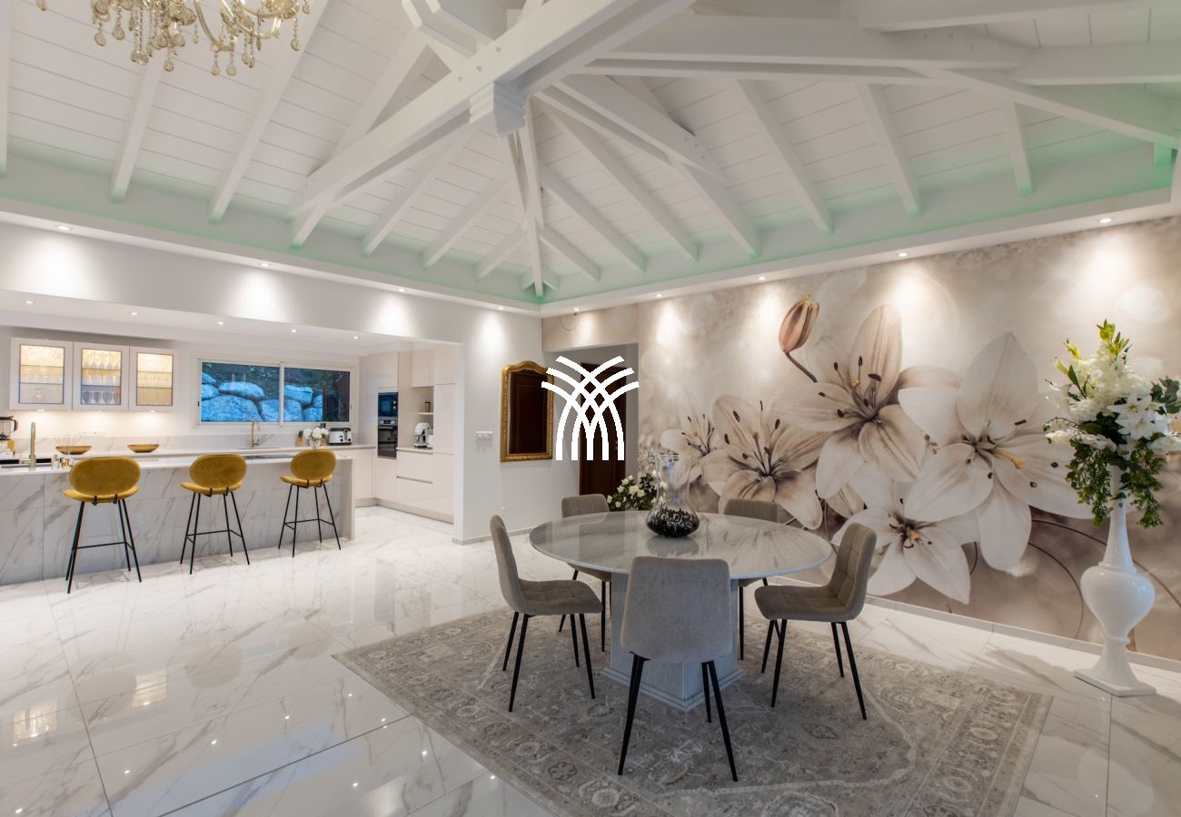 The Villa Fleurs de Lys is a magnificent luxury villa for rent in Saint Martin, ideally located in the peaceful and secure neighborhood of Hope Hill, just minutes away from the famous Orient Bay beach. This luxury villa rental in Saint Martin offers a breathtaking ocean view and an elegant and refined setting for exceptional vacations.