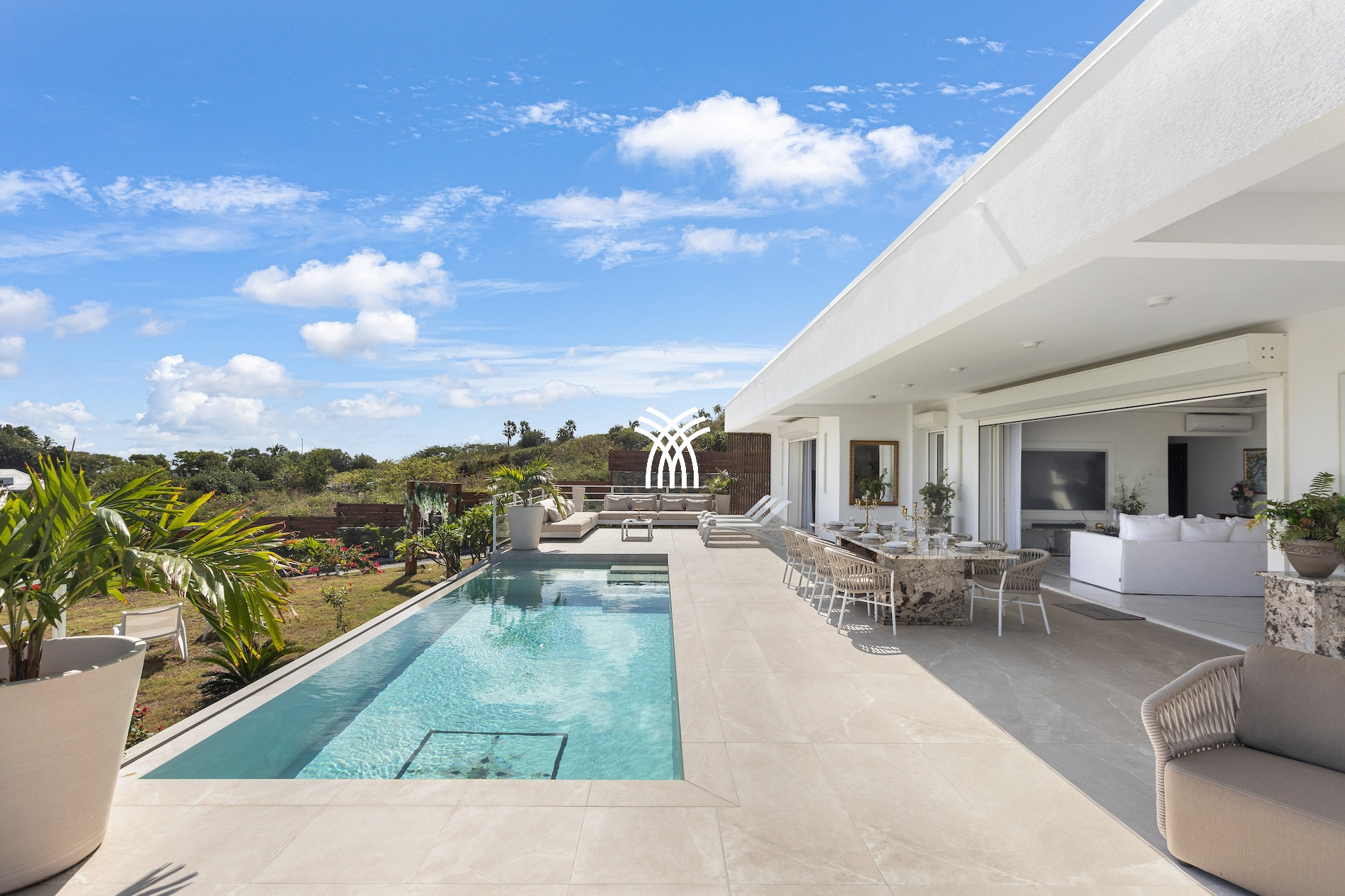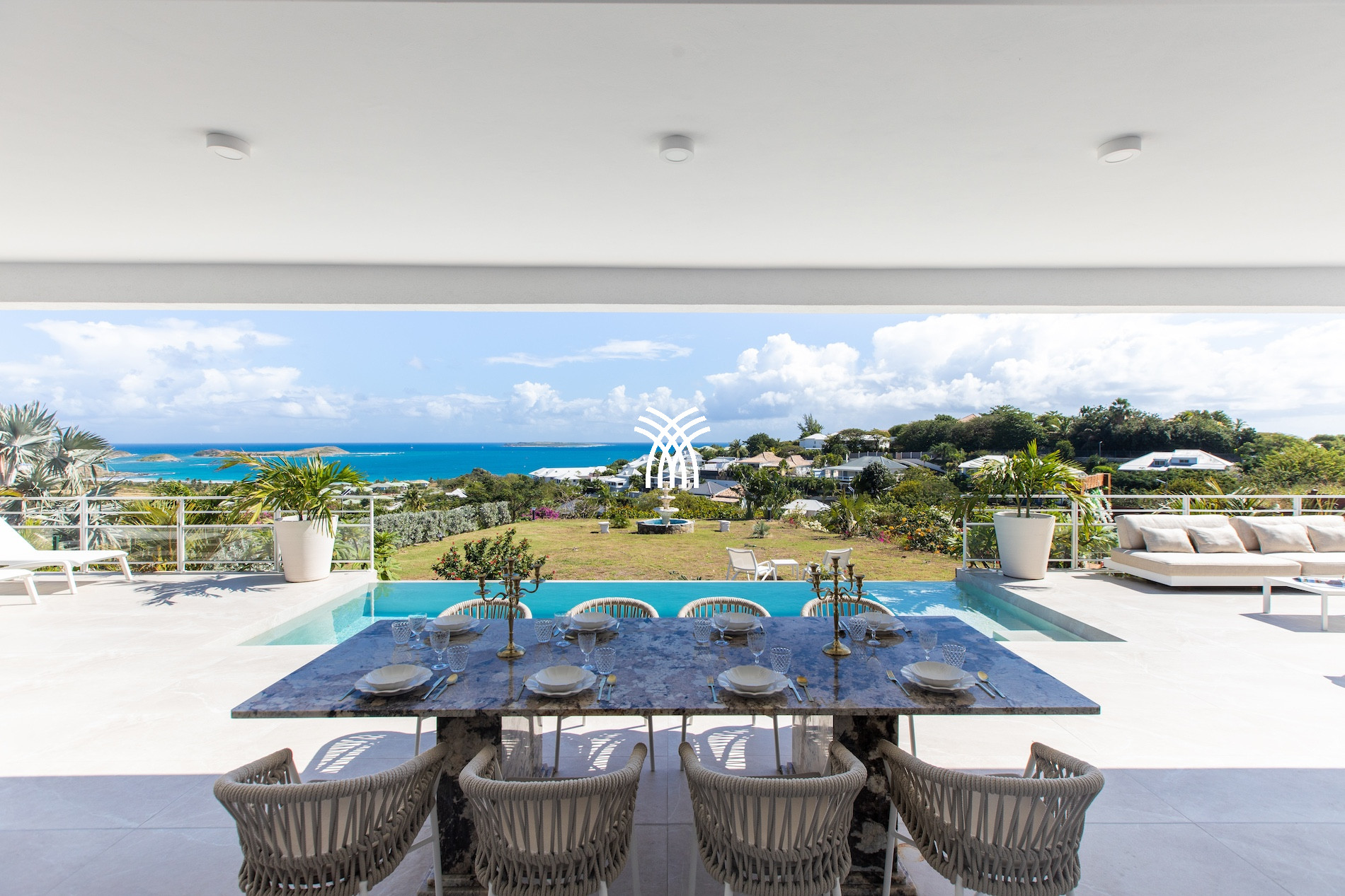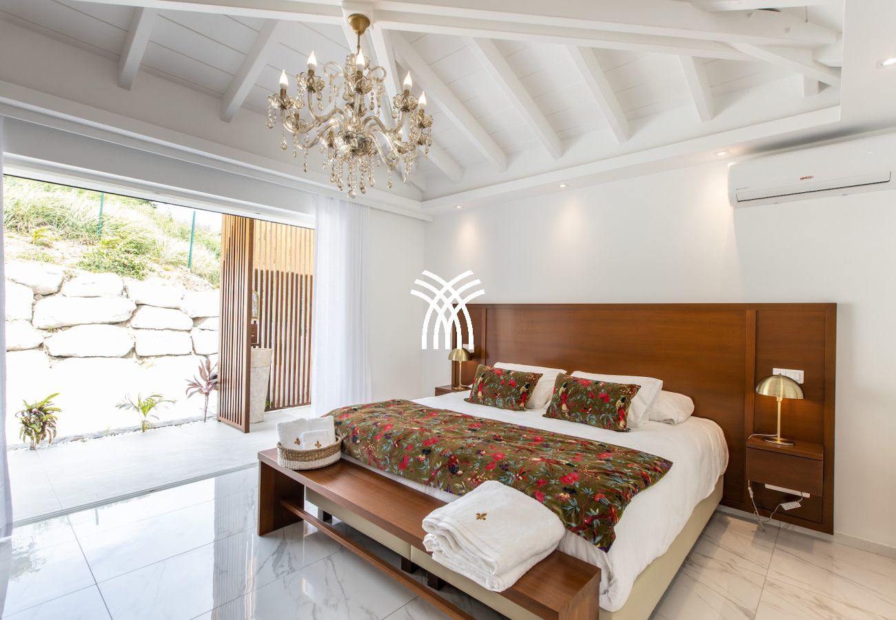 The Villa Fleurs de Lys is a magnificent luxury villa for rent in Saint Martin, ideally located in the peaceful and secure neighborhood of Hope Hill, just minutes away from the famous Orient Bay beach. This luxury villa rental in Saint Martin offers a breathtaking ocean view and an elegant and refined setting for exceptional vacations.