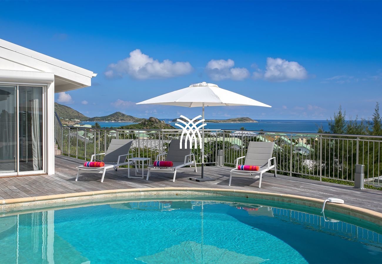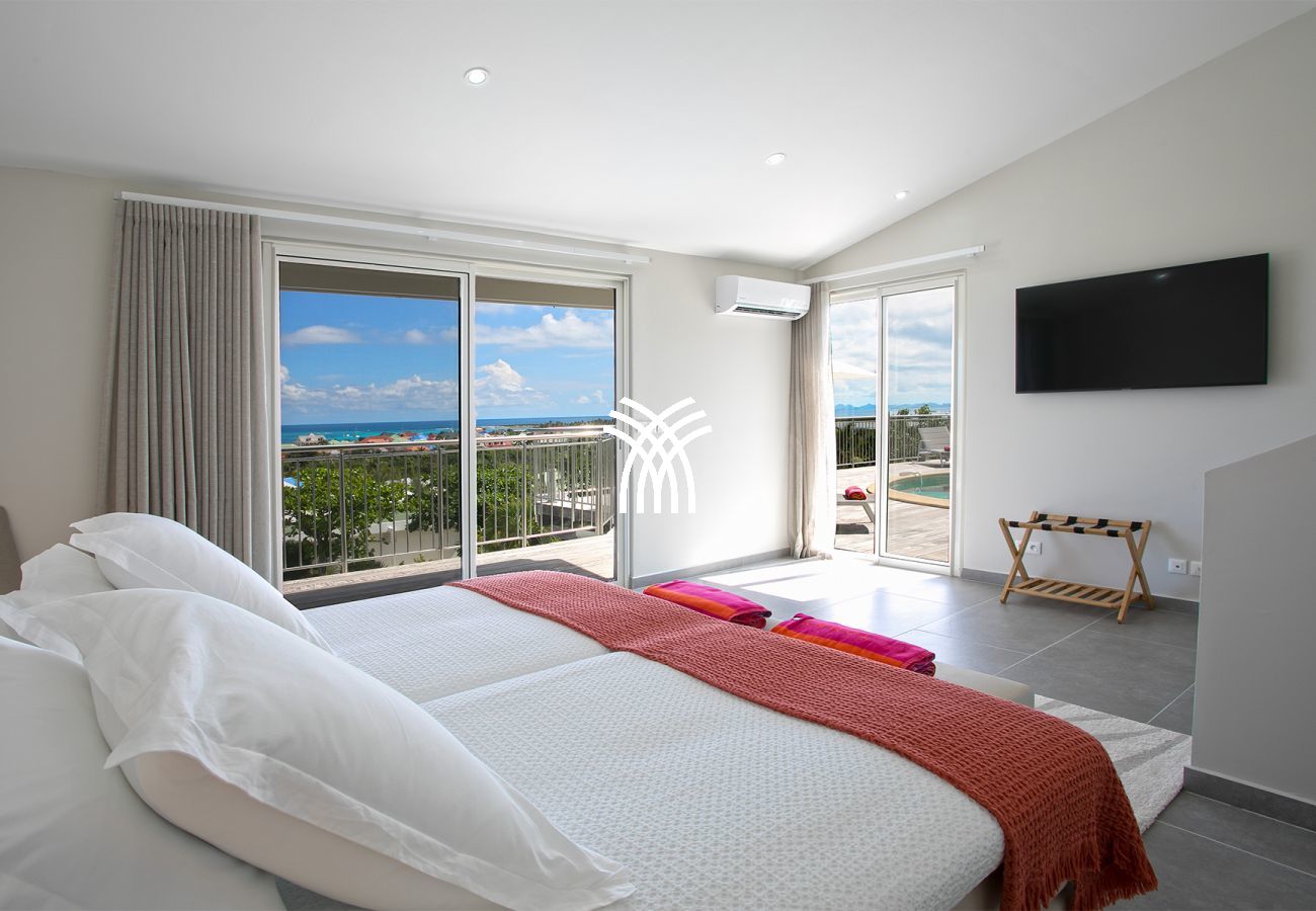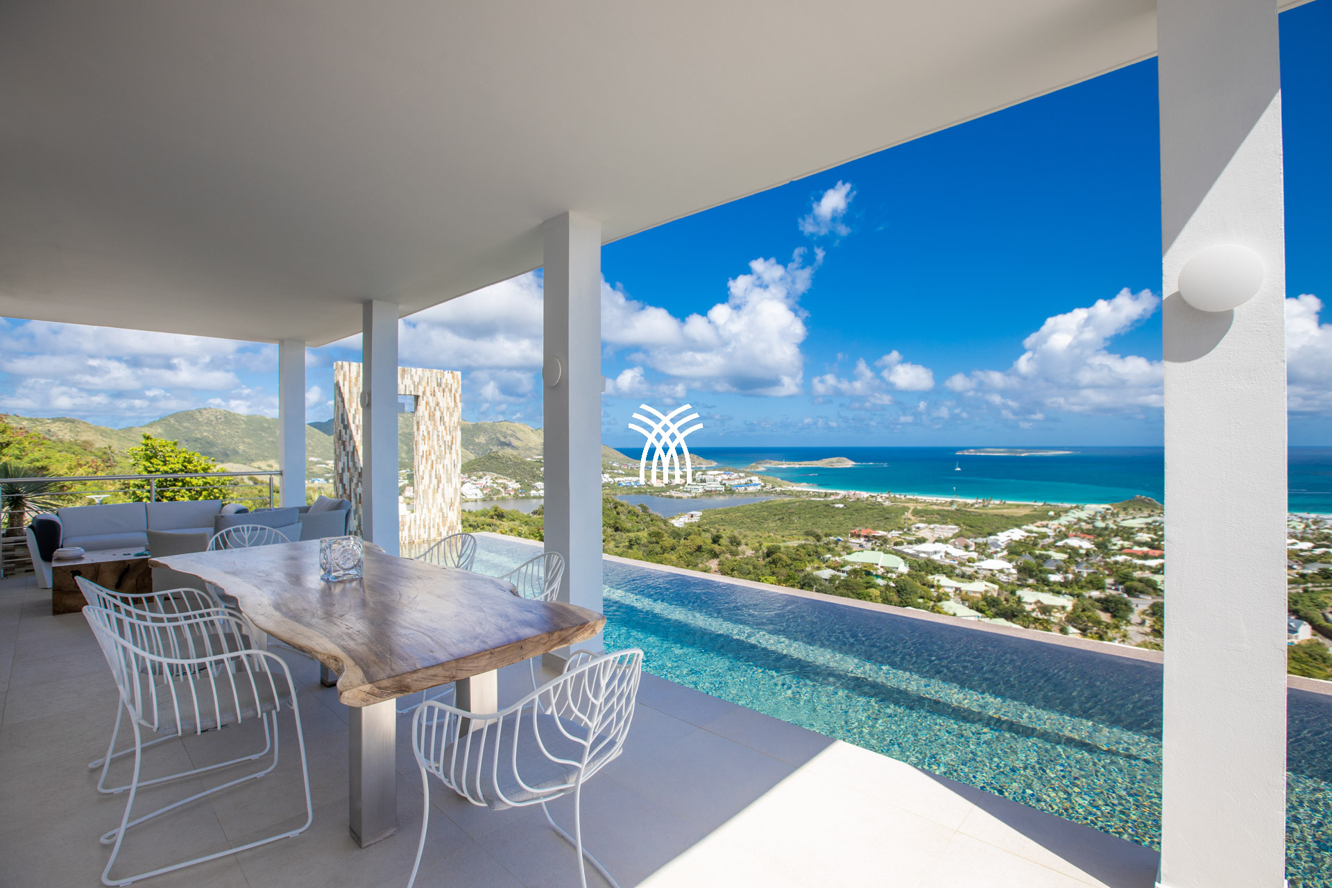 The Indigo Pearl Villa is a luxury villa for rent in Saint Martin, perched atop Hope Hill, offering a spectacular panoramic view of the Caribbean Sea. This luxury villa rental in Saint Martin is a true haven of tranquility and refinement, perfect for exclusive vacations with family or friends.