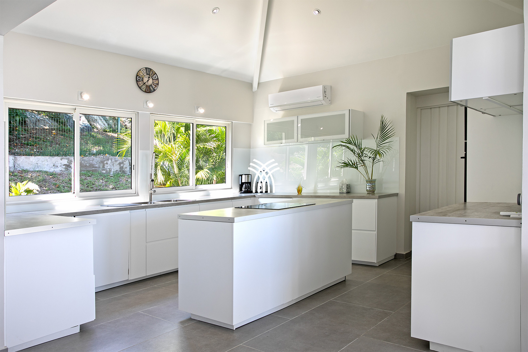 Surrounded by beautiful tropical landscaping the villa is only a 5 minute drive to Orient beach, bars, restaurants and water sports.